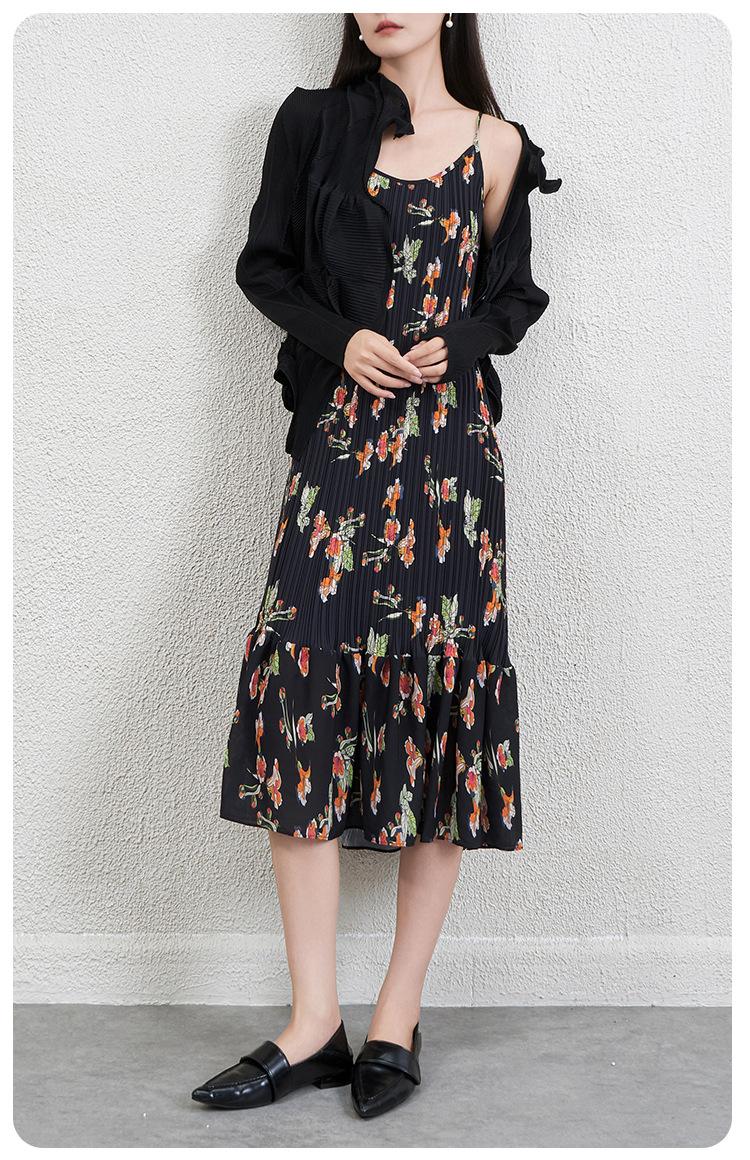 Floral suspender skirt, Bud coat, Slip dress + bud coat