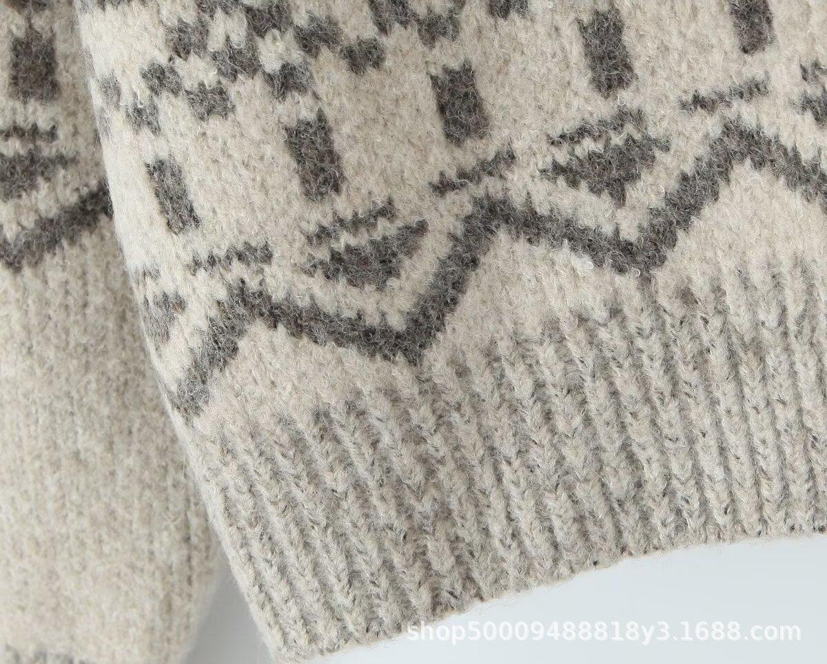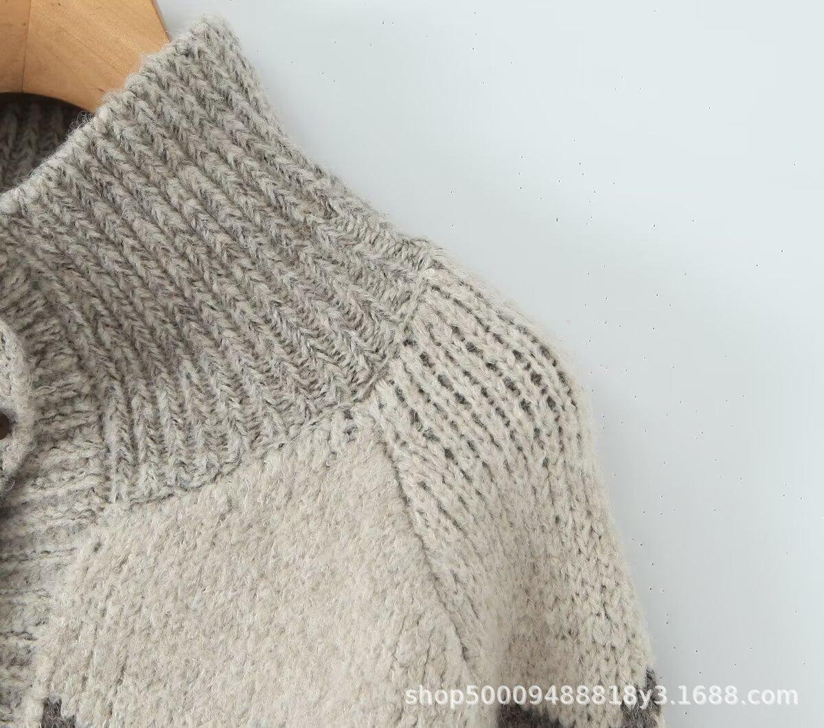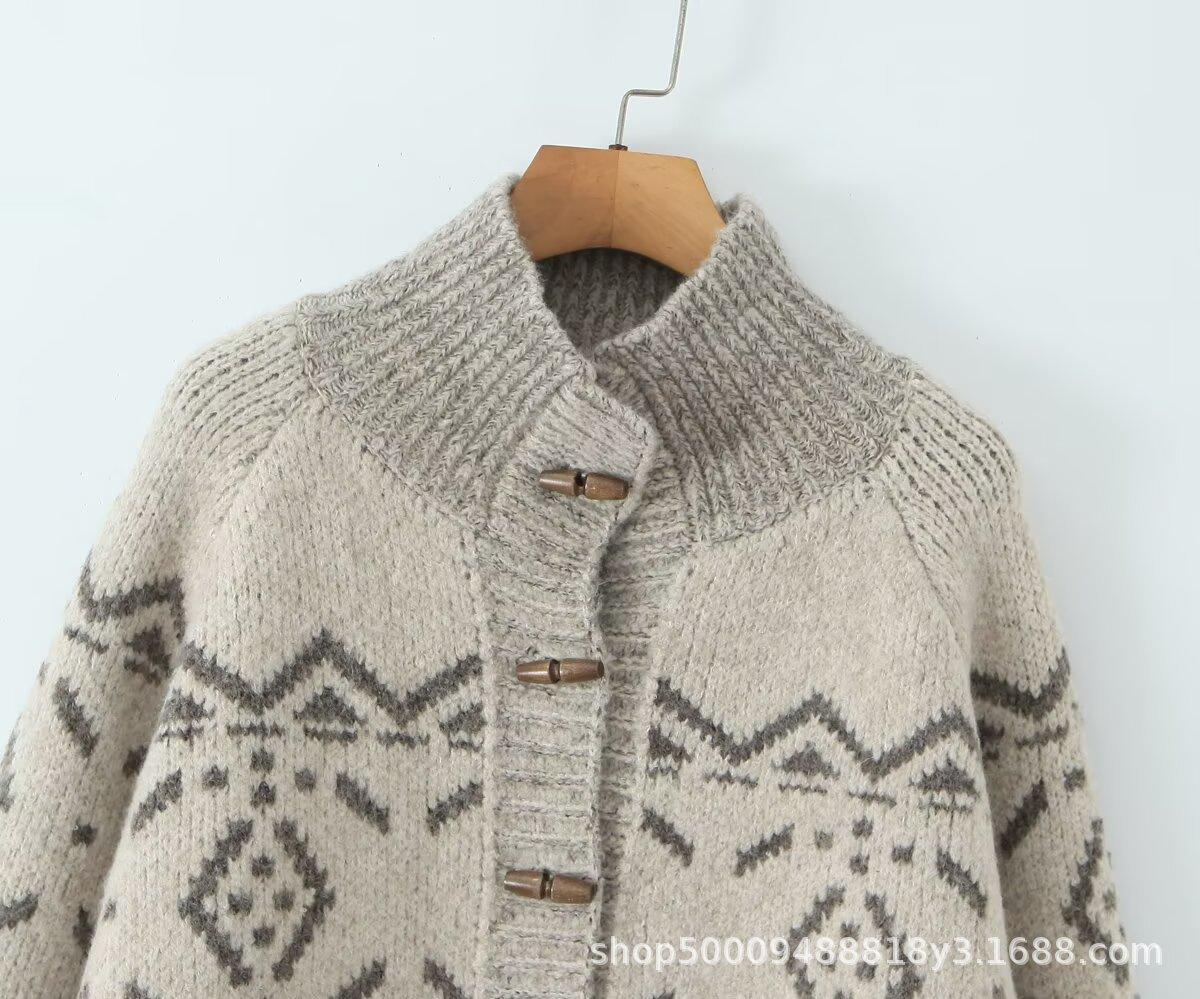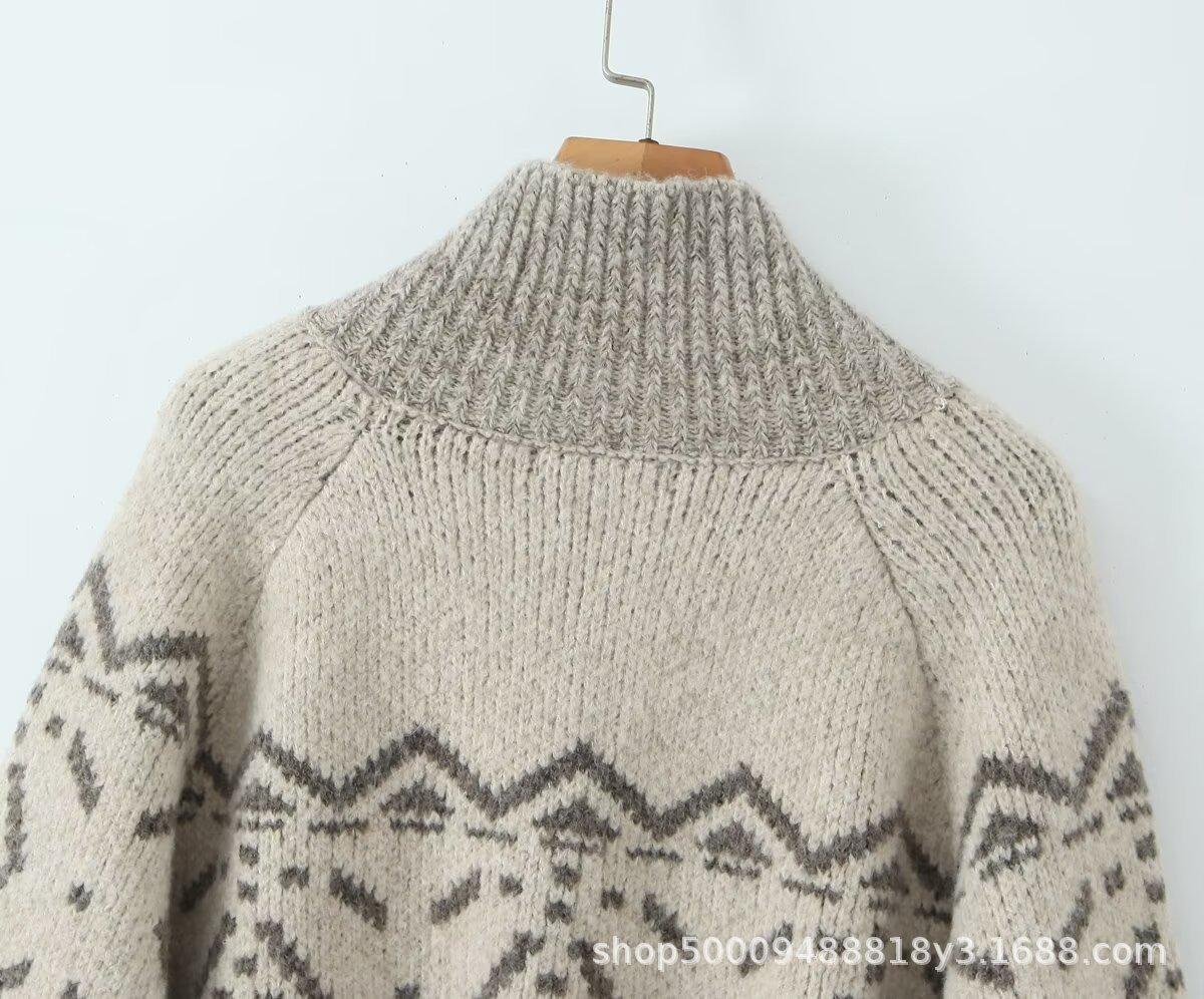 Cárdigan de punto jacquard de alta gama retro perezoso de estilo europeo y americano transfronterizo nuevo otoño e invierno 2025 con cuello alto