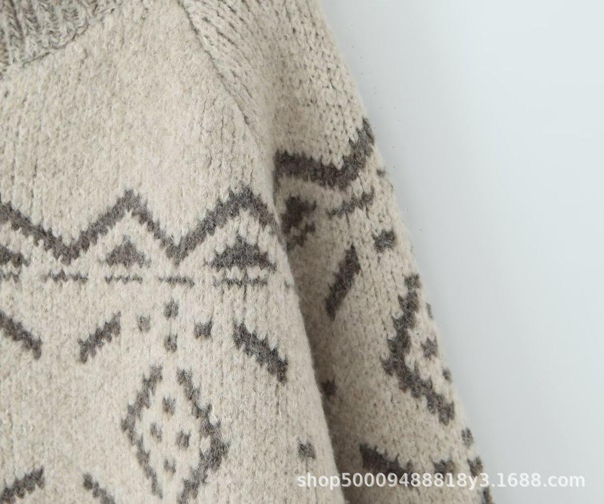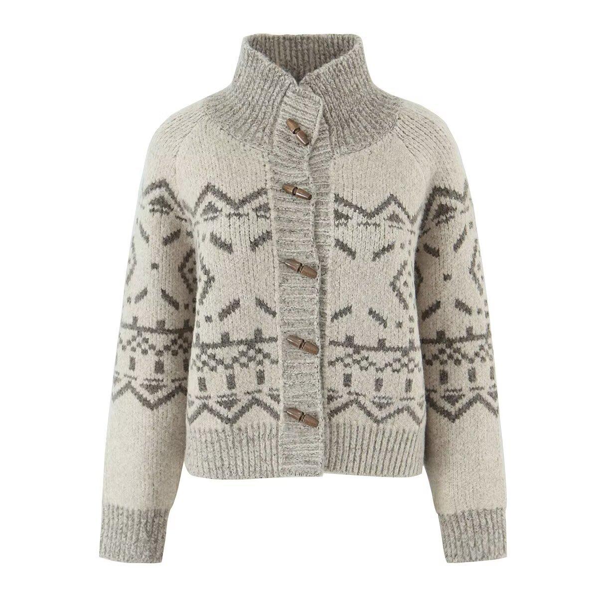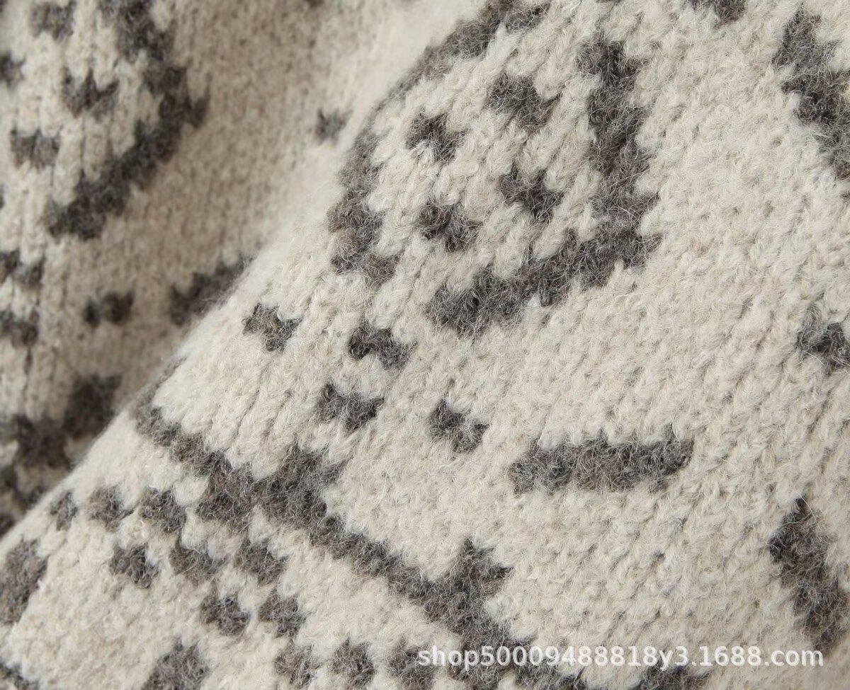 Cárdigan de punto jacquard de alta gama retro perezoso de estilo europeo y americano transfronterizo nuevo otoño e invierno 2025 con cuello alto