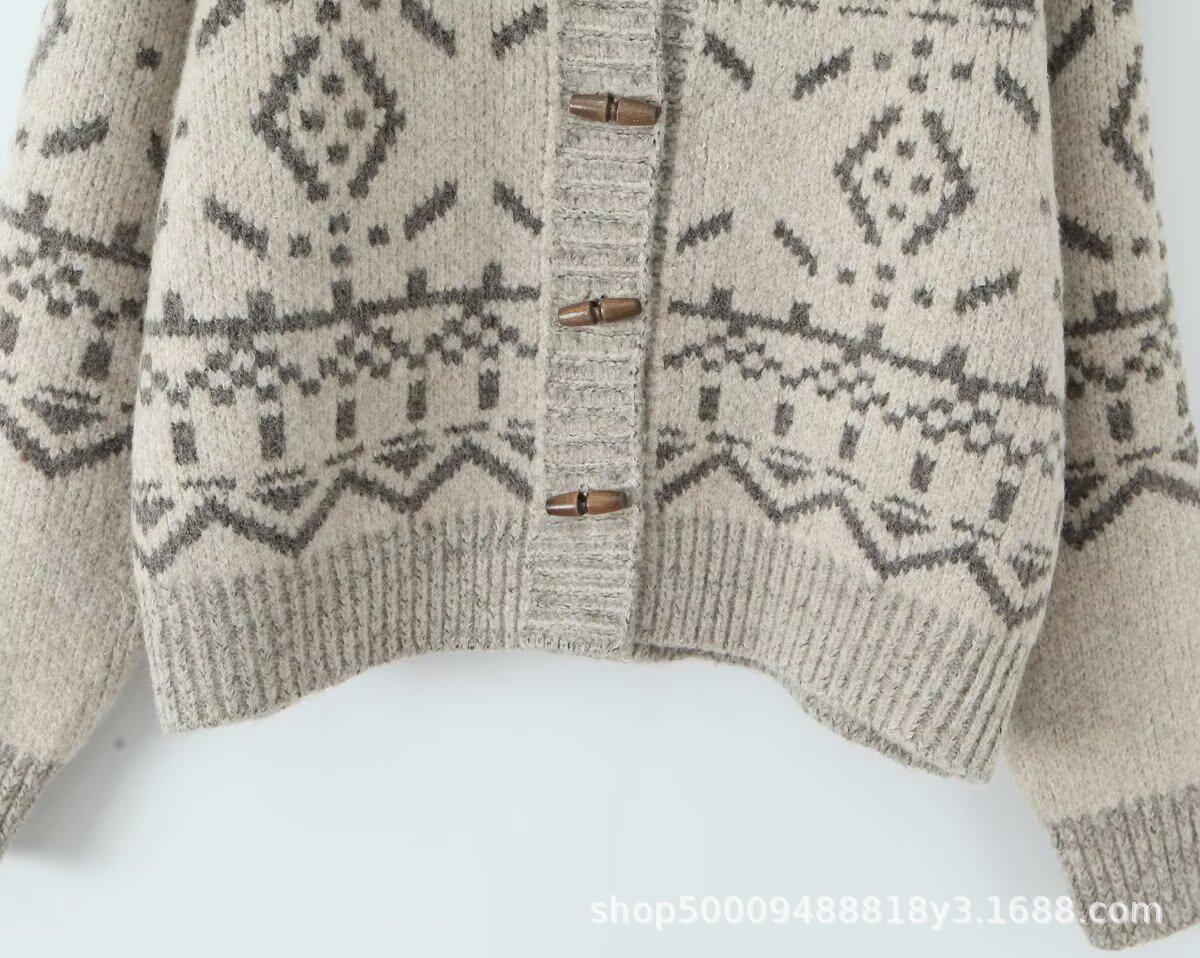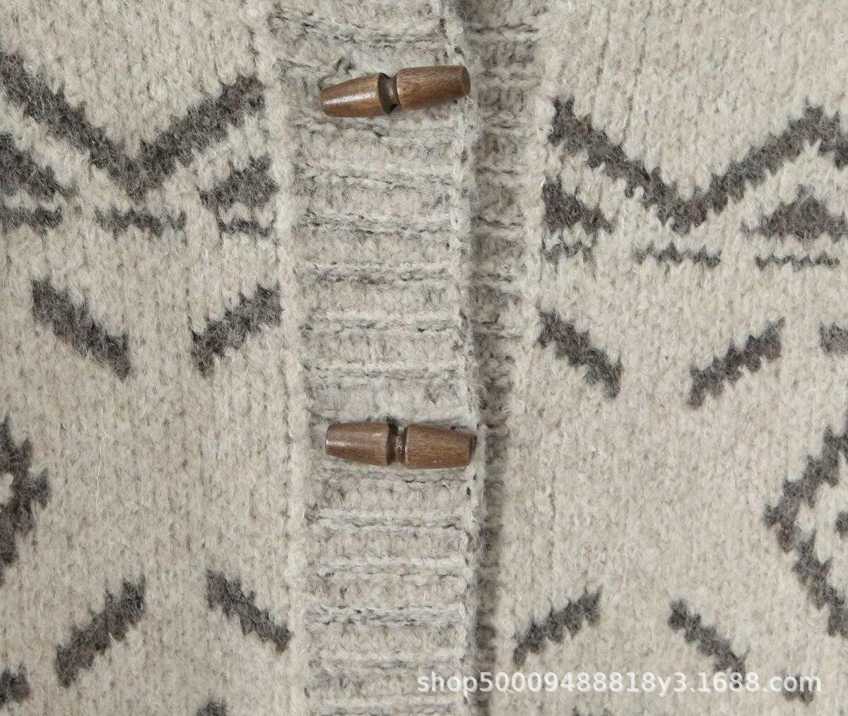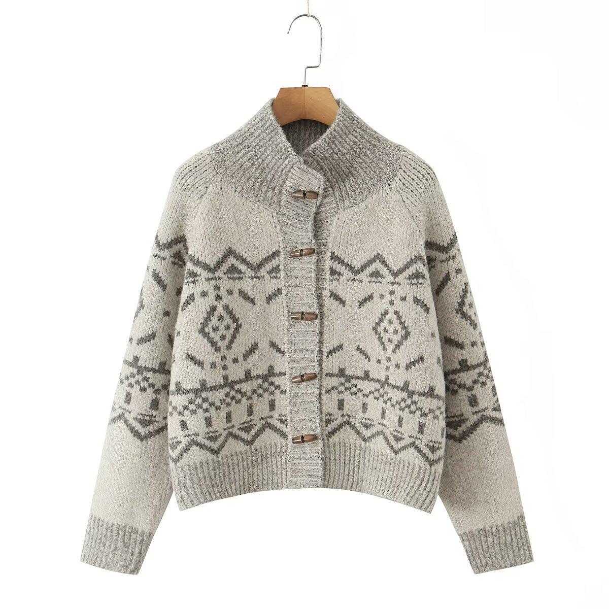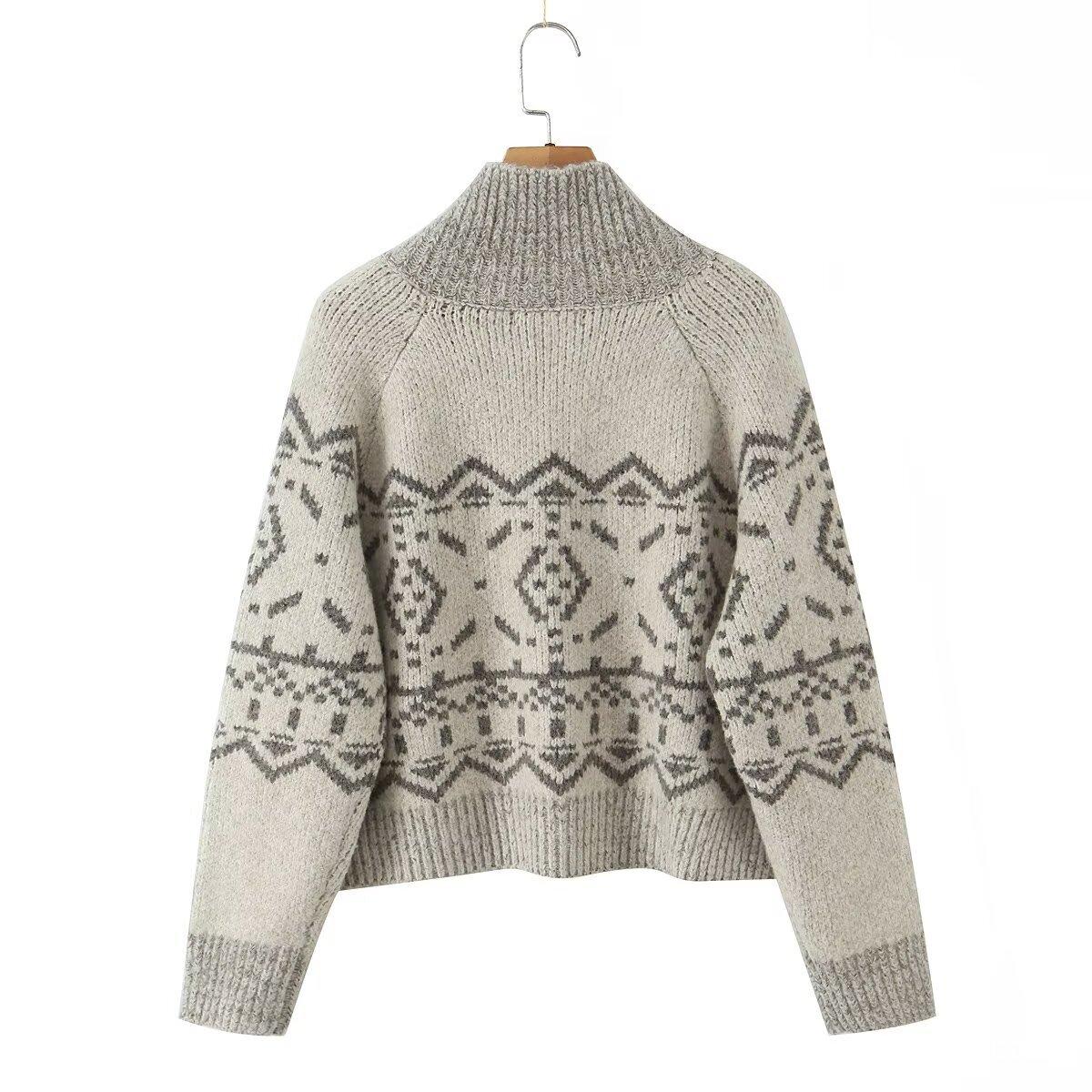 Cárdigan de punto jacquard de alta gama retro perezoso de estilo europeo y americano transfronterizo nuevo otoño e invierno 2025 con cuello alto