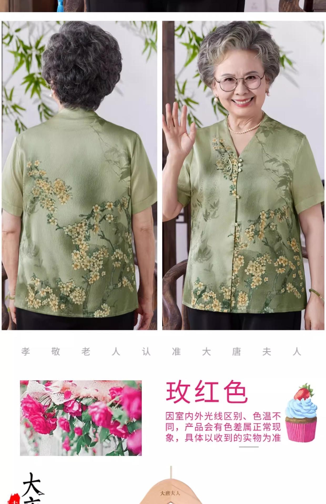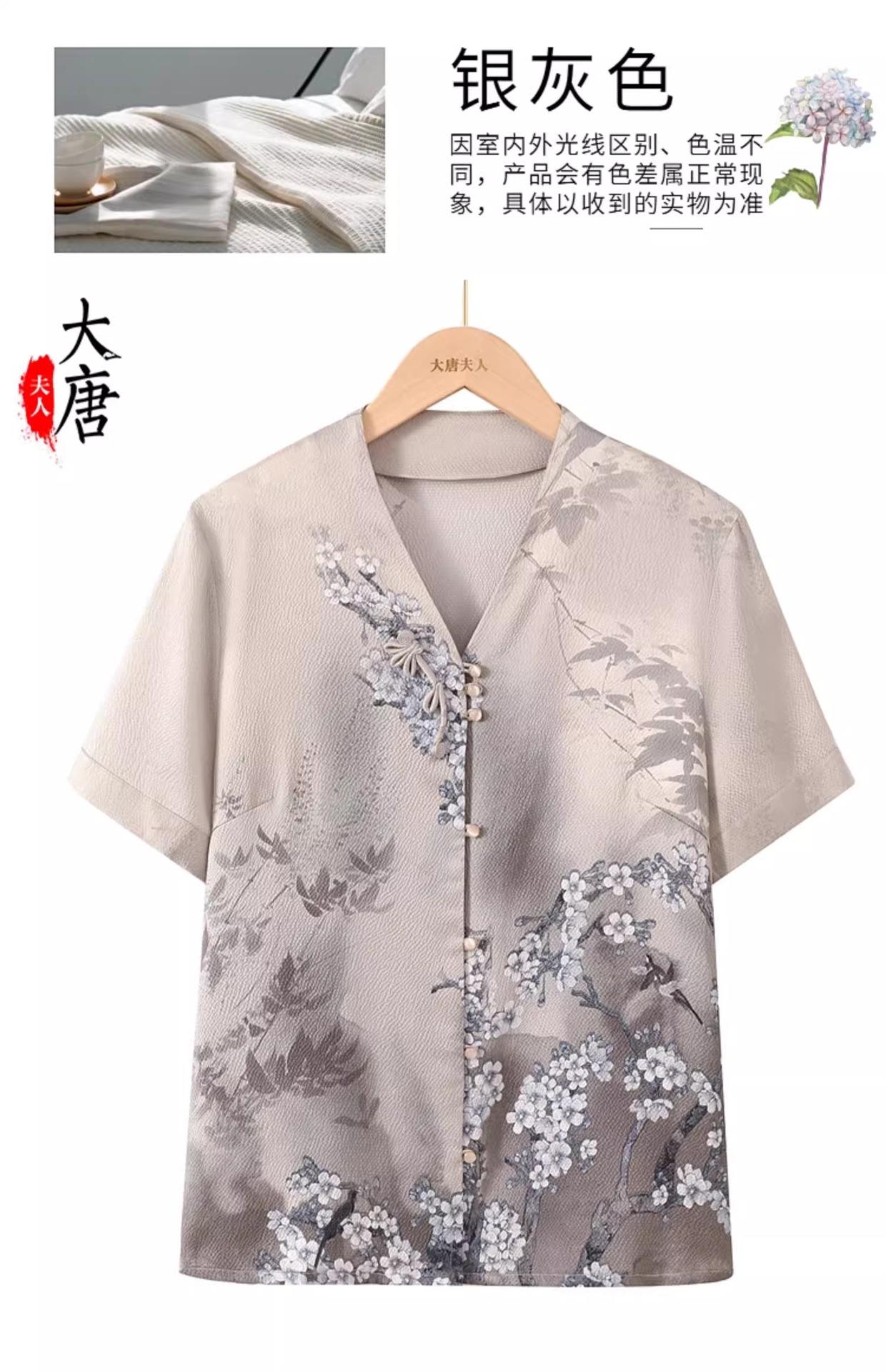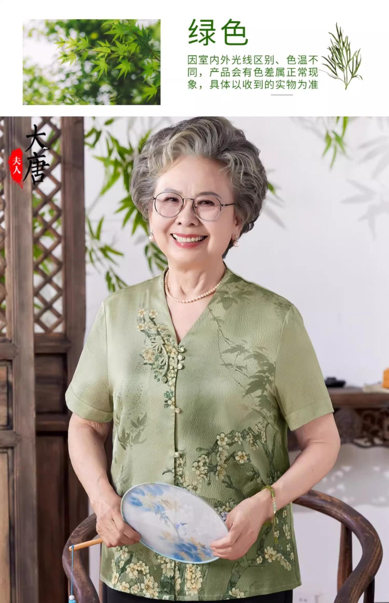 Ropa de Seda de Morera Camisa de Seda de Abuela para Edad Media y Adulta Verano Manga Corta para Mujer Madre Seda de Hangzhou Tops de Alta Gama