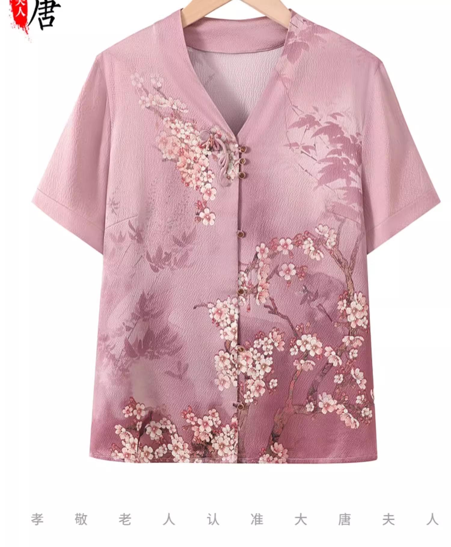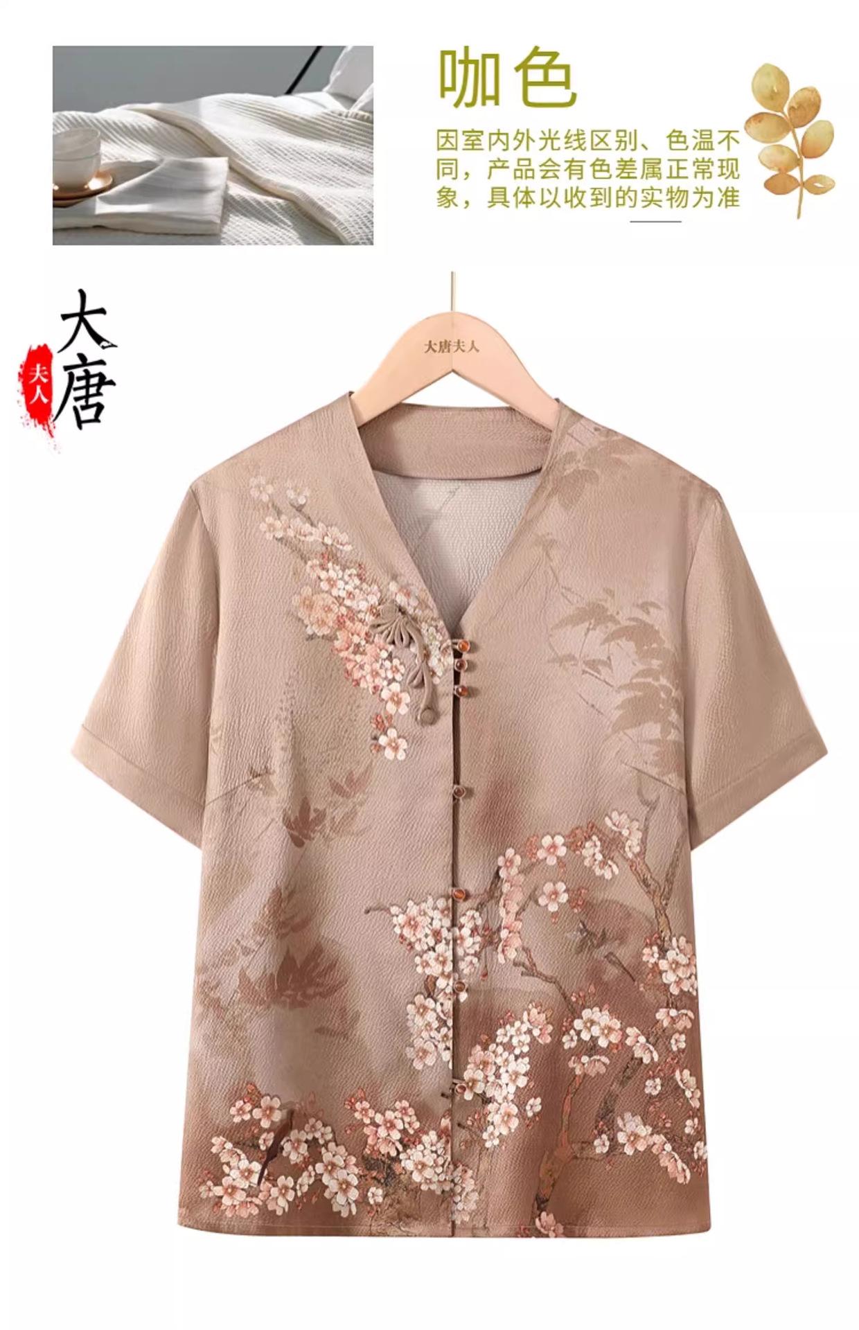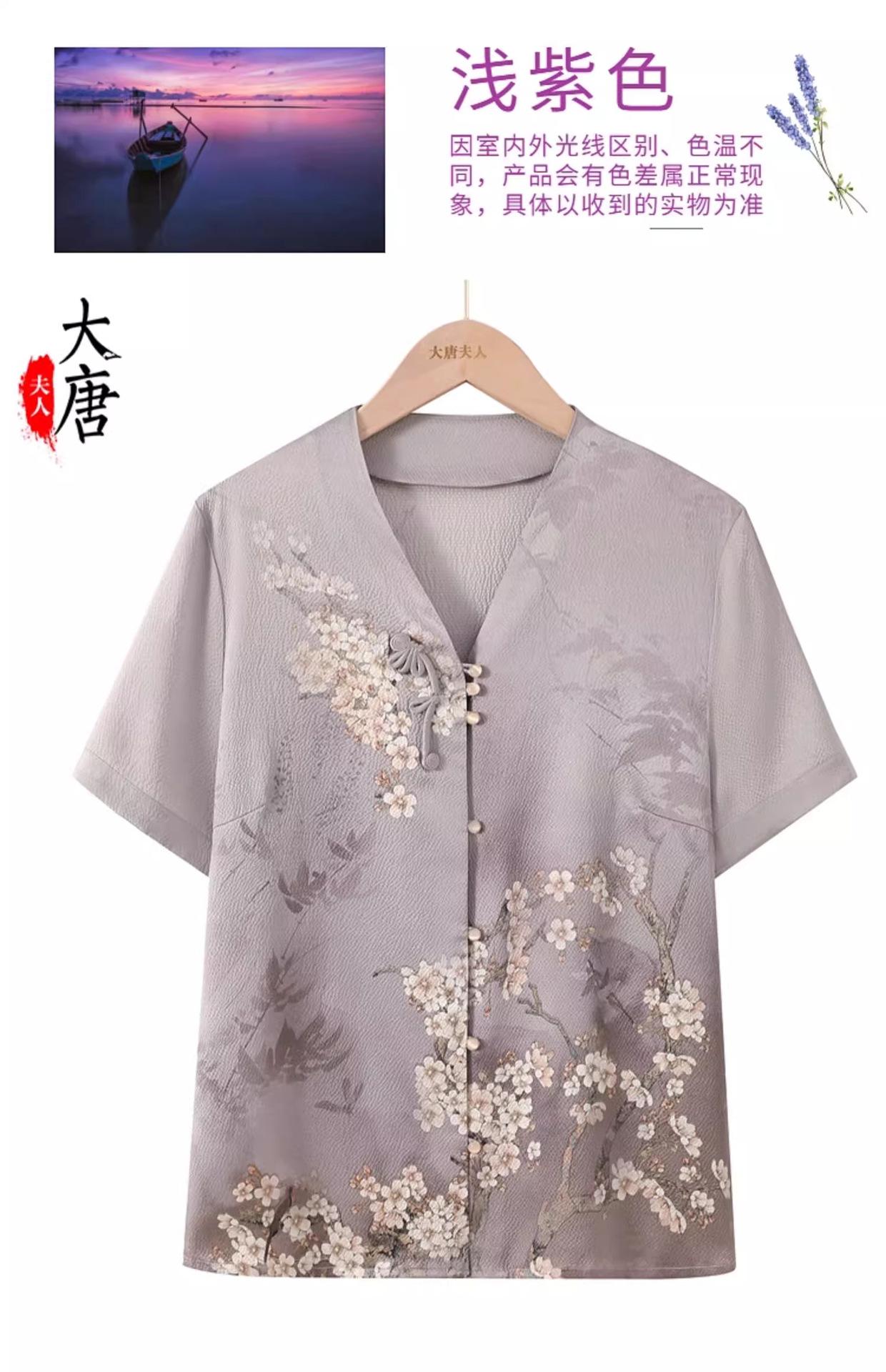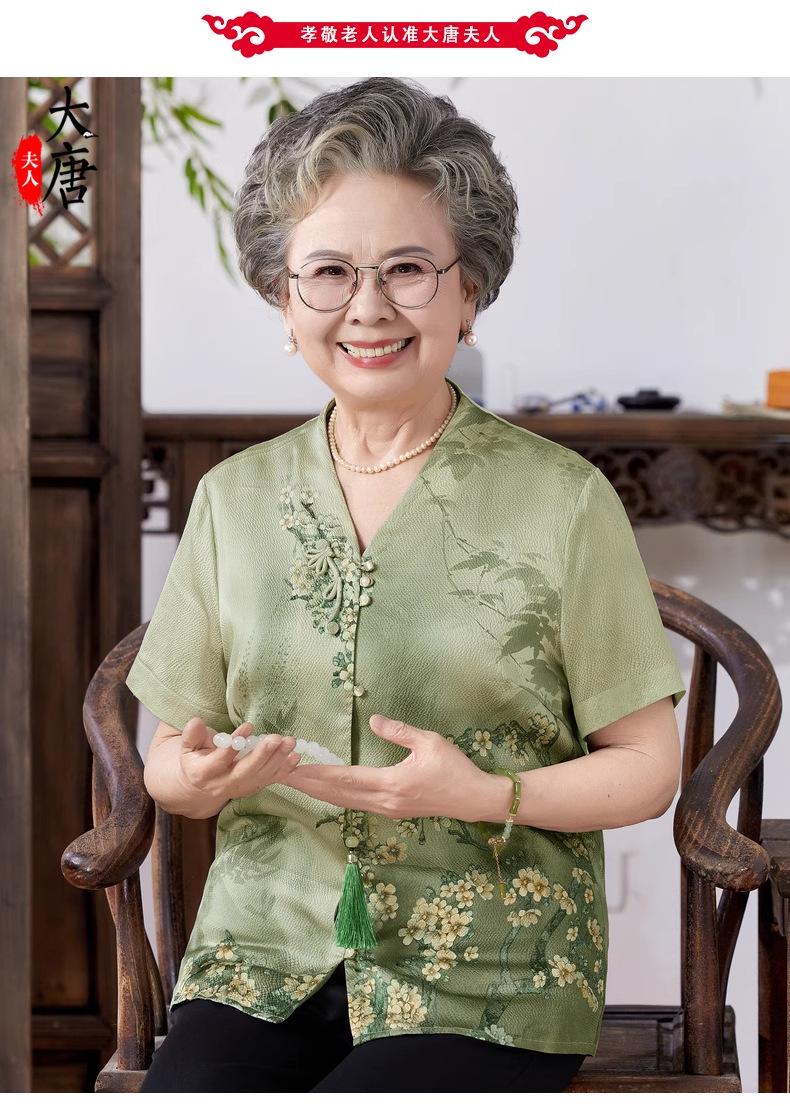 Ropa de Seda de Morera Camisa de Seda de Abuela para Edad Media y Adulta Verano Manga Corta para Mujer Madre Seda de Hangzhou Tops de Alta Gama