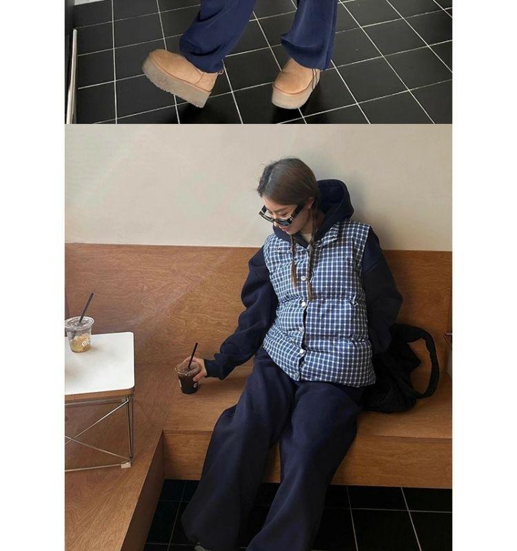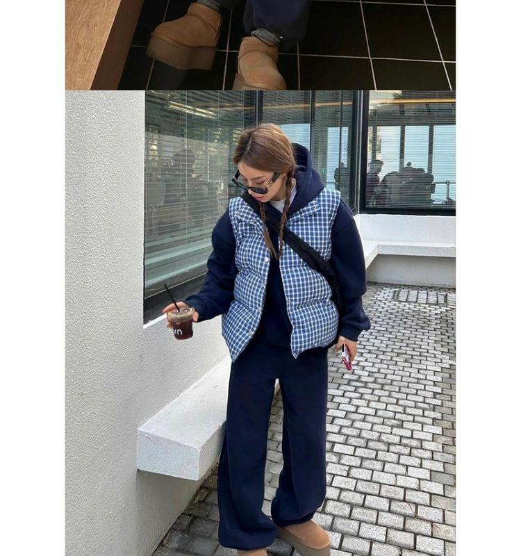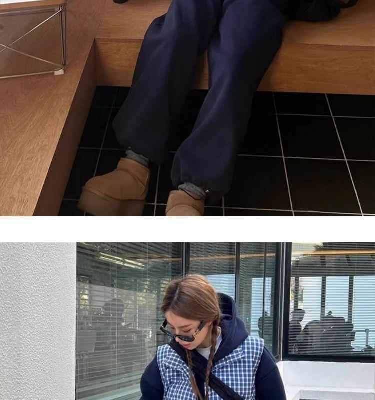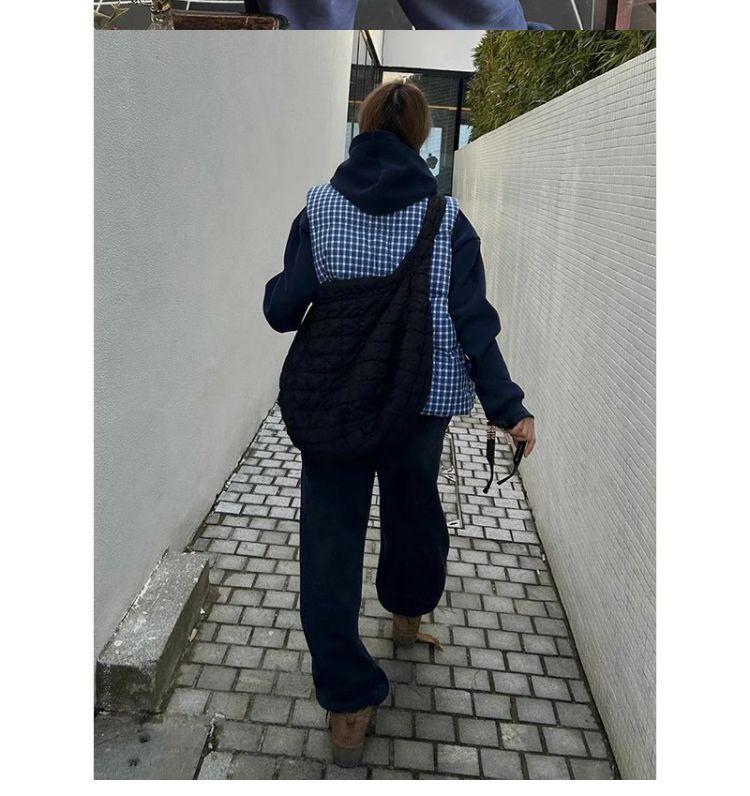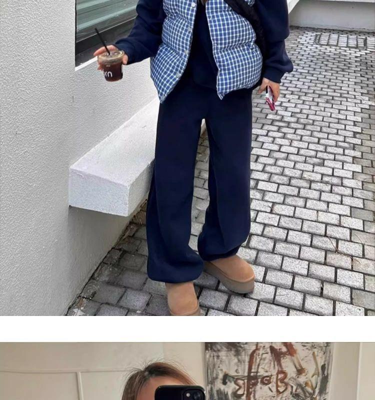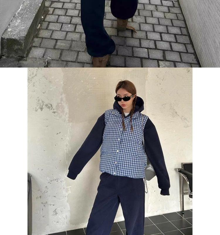 Chaleco de Mujer 2025 Otoño/Invierno Estilo Coreano Cuadros Azules Cuello Alto Casual Versátil Sin Mangas Algodón Acolchado Conjunto de Chaleco