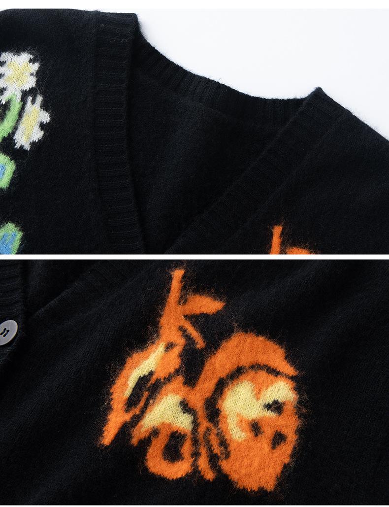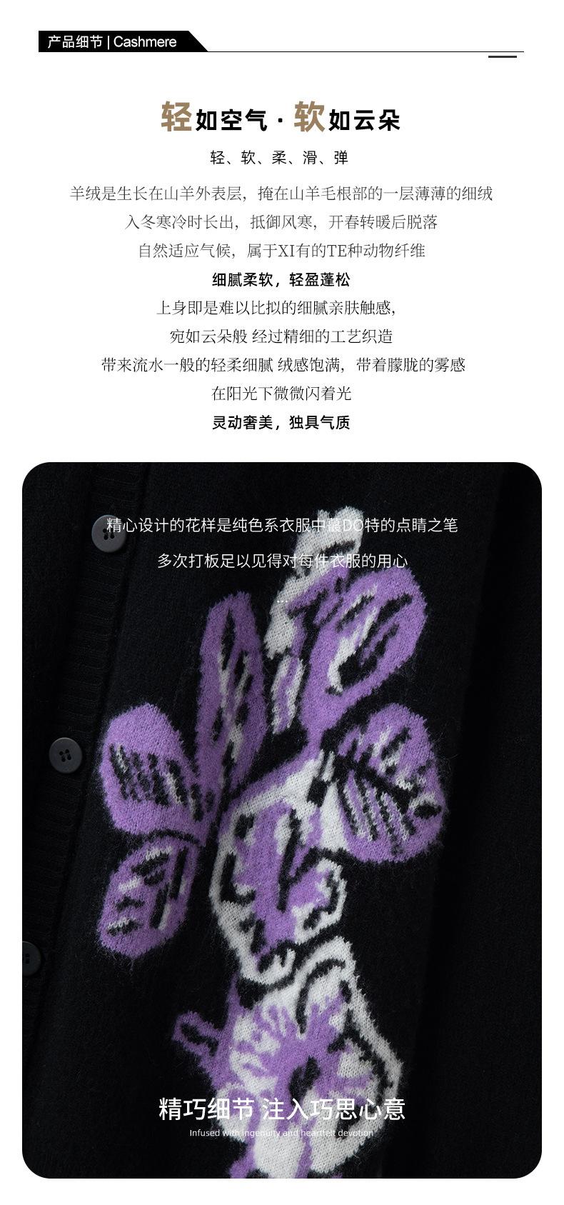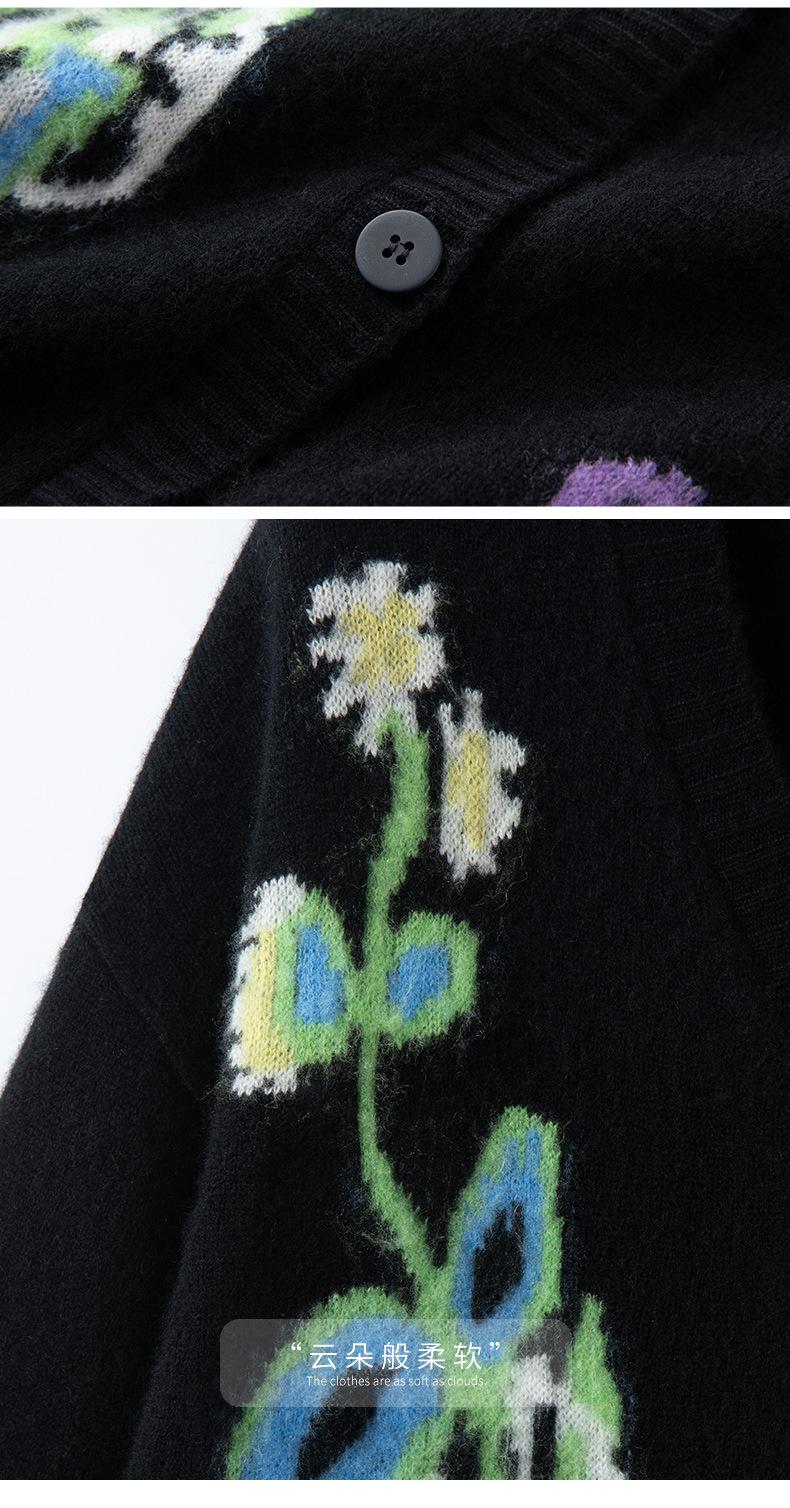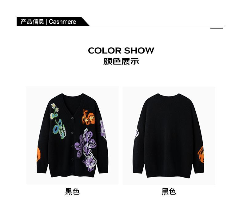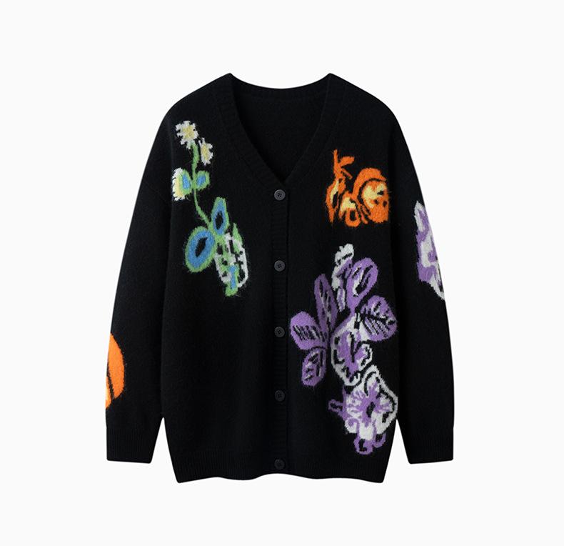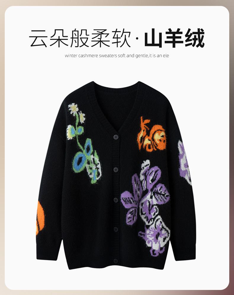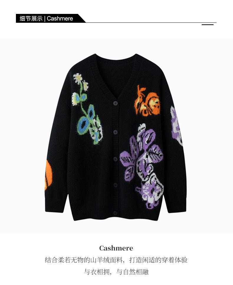 Suéter de Cachemira para Mujer de Otoño e Invierno, Cárdigan de Cuello en V, Manga Larga, Cárdigan Gloria de la Mañana, Suéter Bordado, Top Bordado Floral