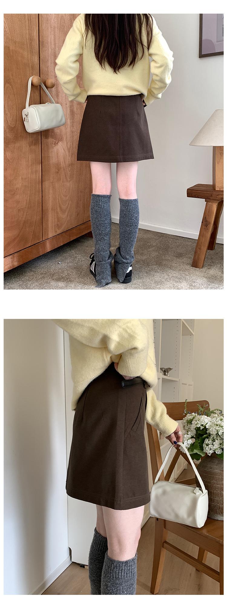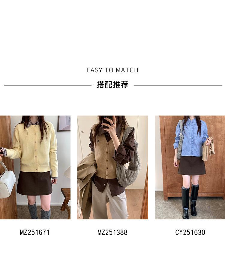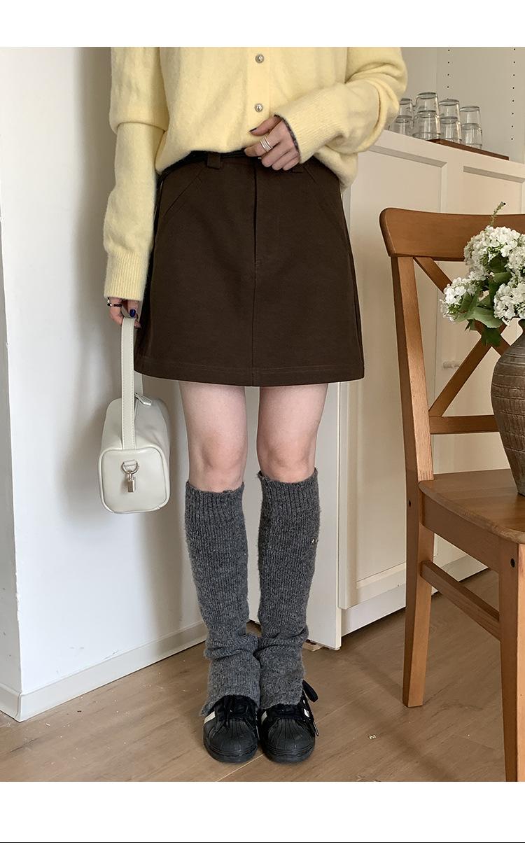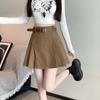 Falda midi retro color café estilo coreano para mujer otoño 2025 nueva cintura alta versátil muestra longitud de pierna ceñida a las caderas línea A falda corta
