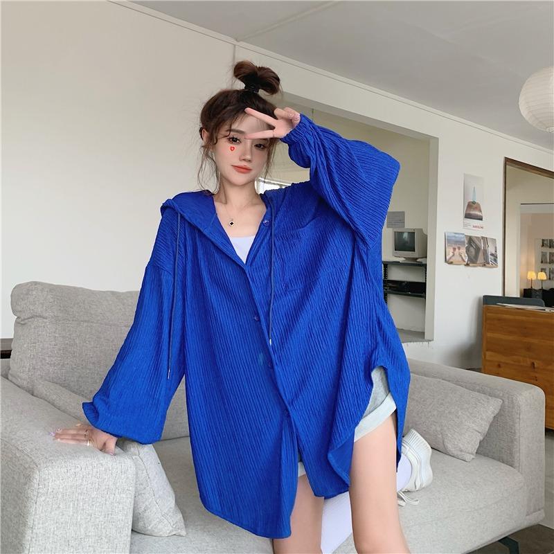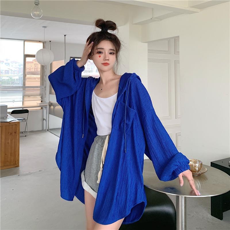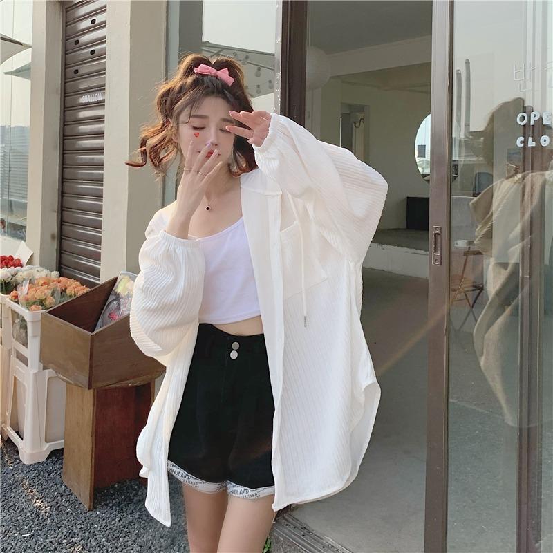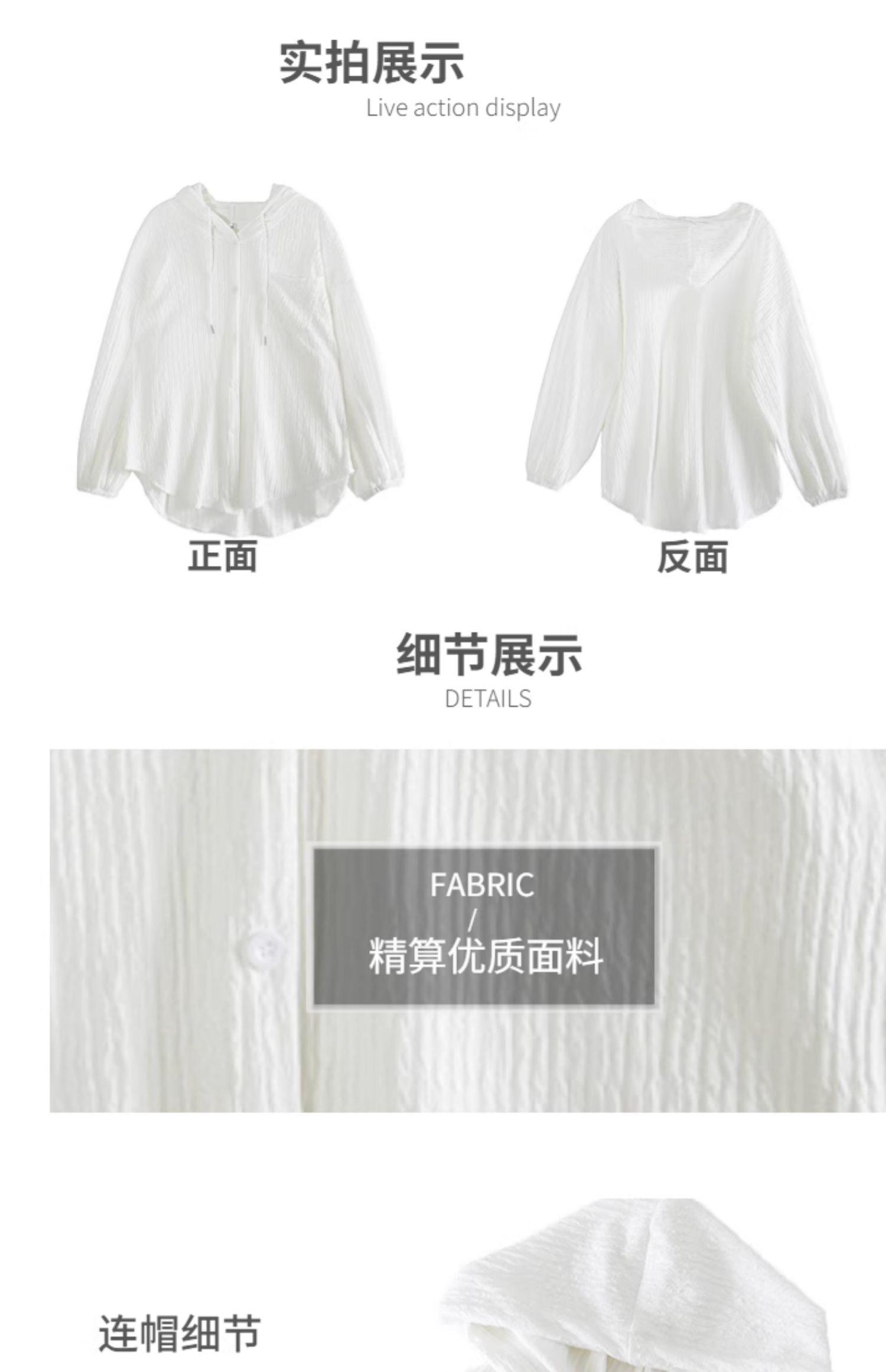 Ropa Blanca de Protección Solar Tul Ropa Exterior Primavera y Verano Suelta Manga Larga Camisa de Seda Helada Chaqueta Top con Capucha para Mujer Aire Acondicionado