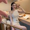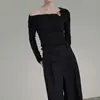 Top popular blanco de un hombro para mujer 2025 verano reductor de edad moderno estilo extranjero de alta gama ajustado y adelgazante camiseta
