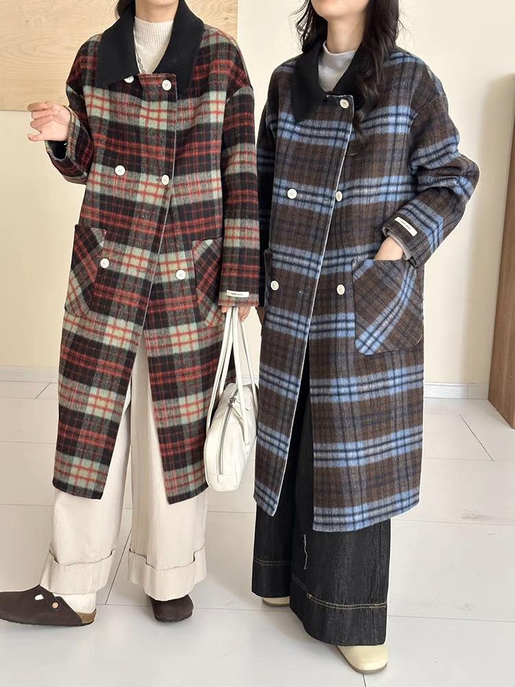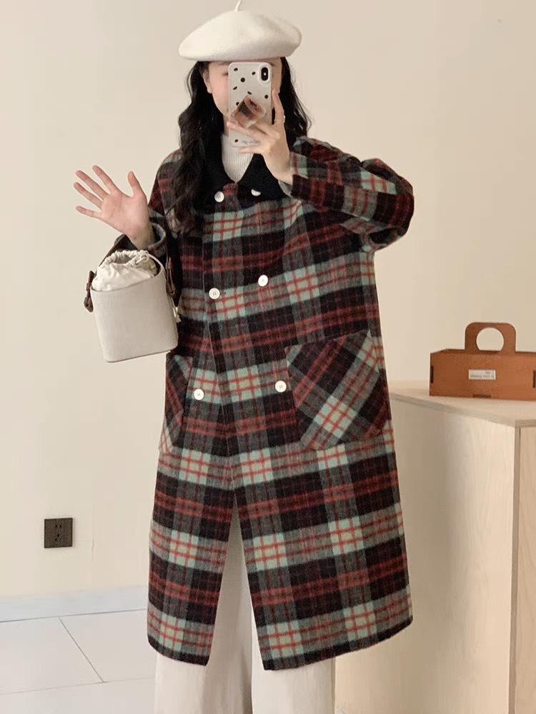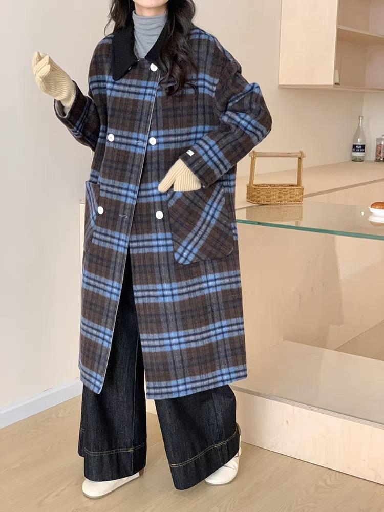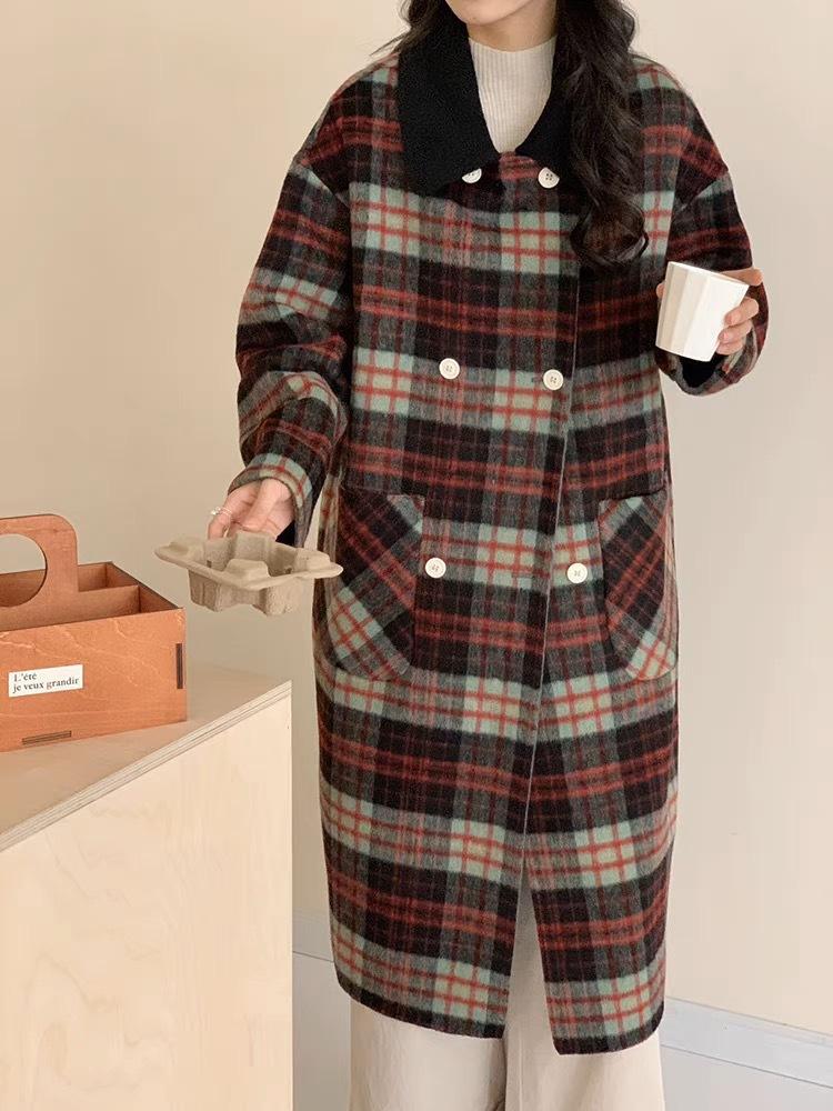 Abrigo de Cachemira de Doble Cara a Cuadros Retro Suelto Nuevo de Otoño e Invierno 2024 para Mujer Abrigo Coreano de Lana de Longitud Media