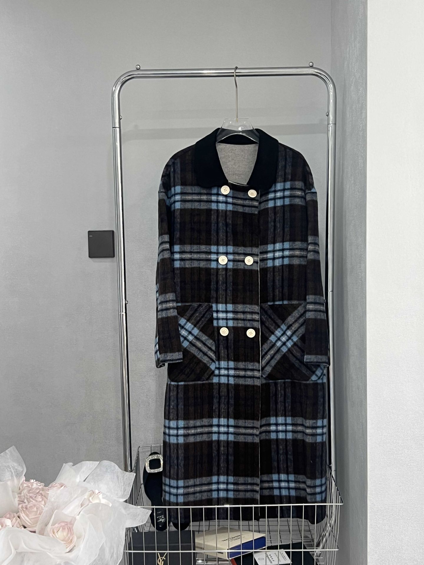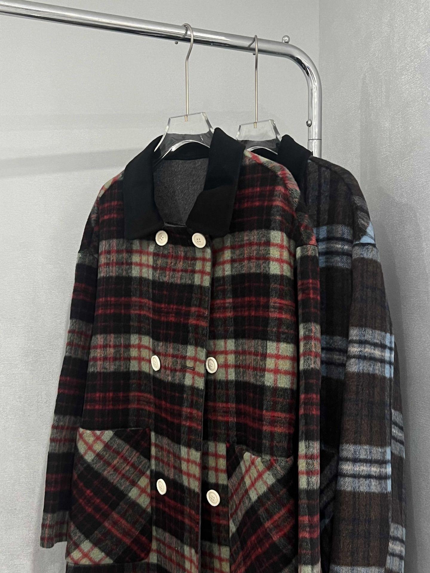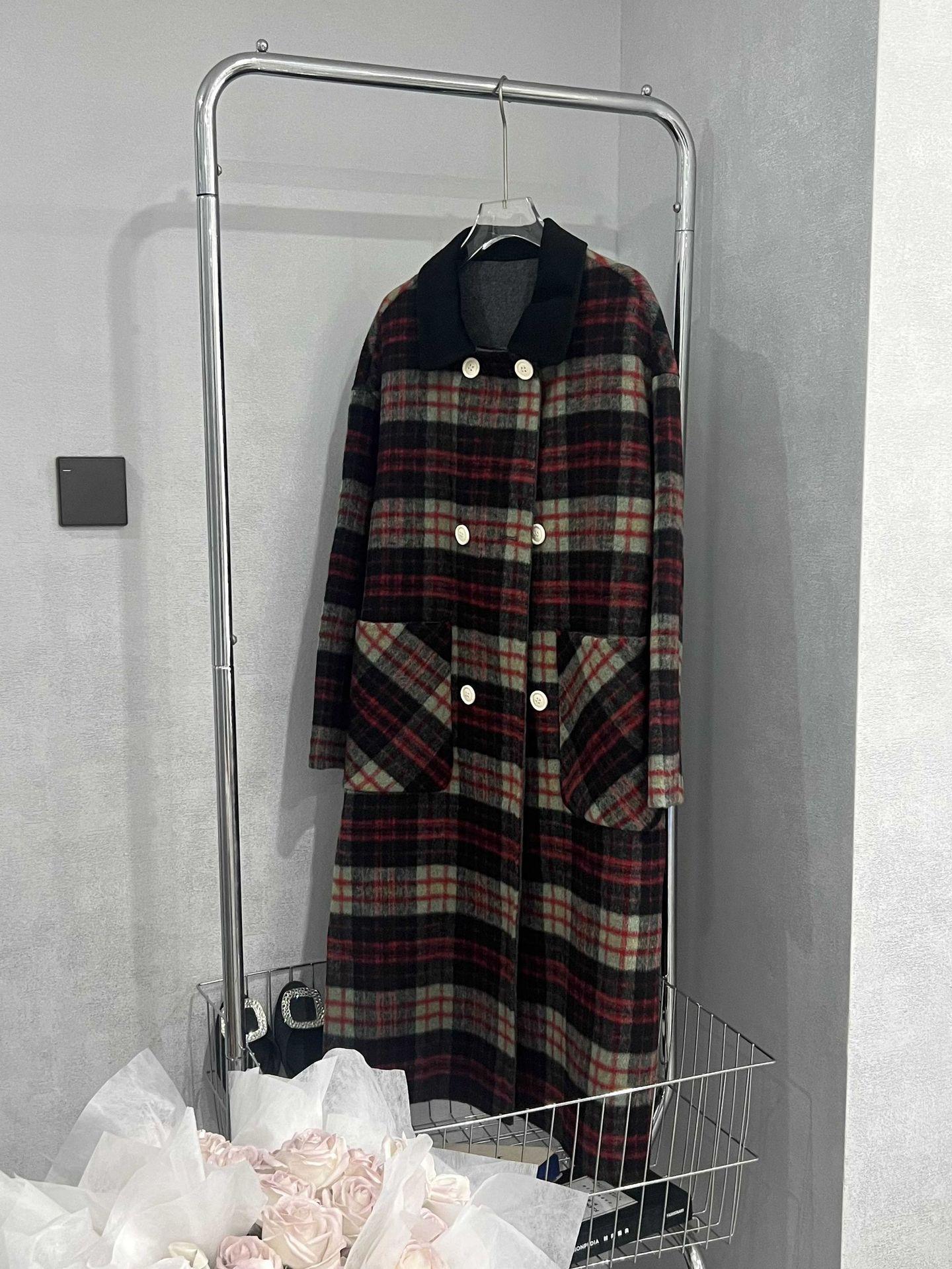 Abrigo de Cachemira de Doble Cara a Cuadros Retro Suelto Nuevo de Otoño e Invierno 2024 para Mujer Abrigo Coreano de Lana de Longitud Media