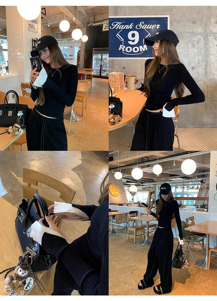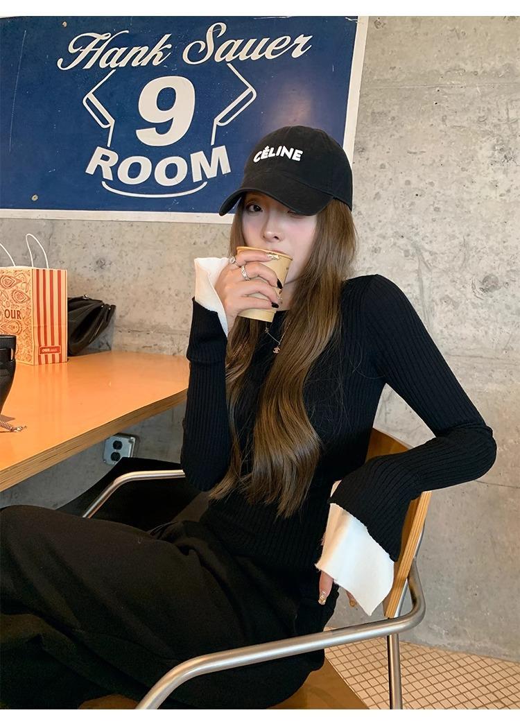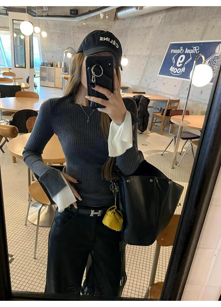 Elegante Top de Manga Campana para Mujer Primavera 2025 Capa Base de Ajuste Slim de Alta Gama Suéter de Punto a la Moda