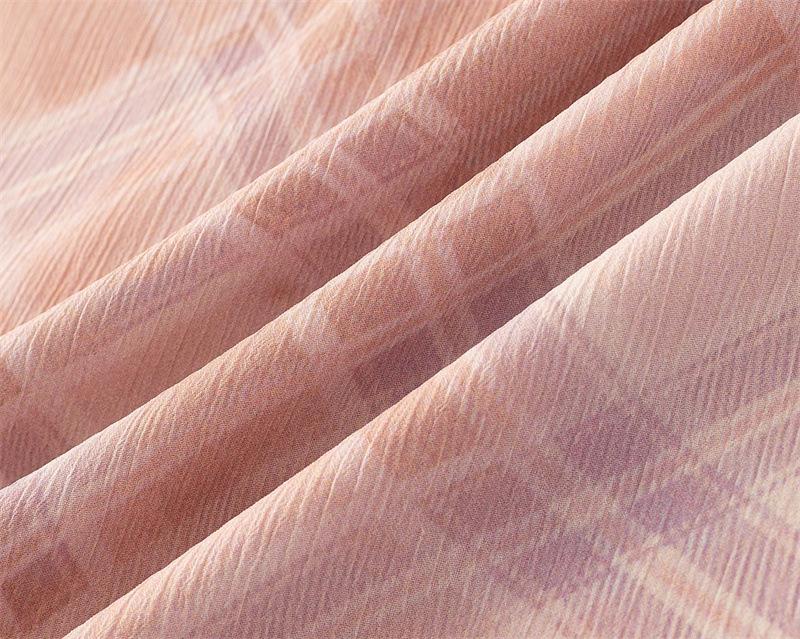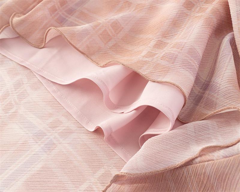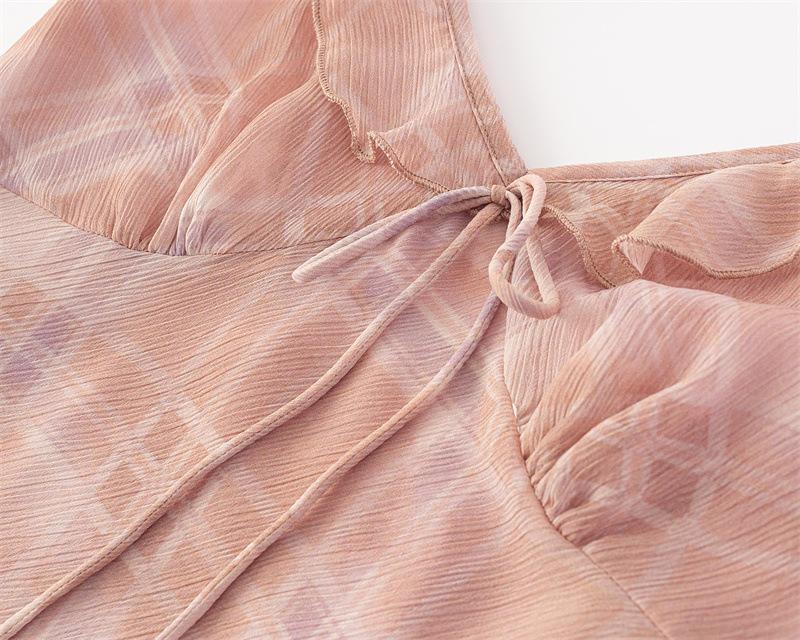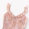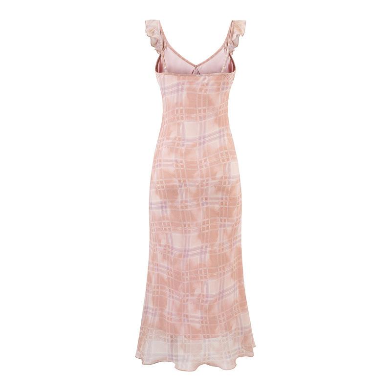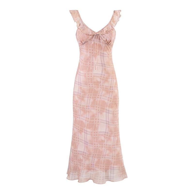 Vestido Francés Retro de Cuadros con Volantes de Cuello U Falda de Cola de Pez Verano Aspecto Adelgazante de Cintura Falda con Tirantes Falda Larga