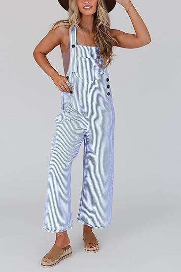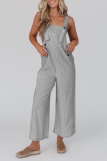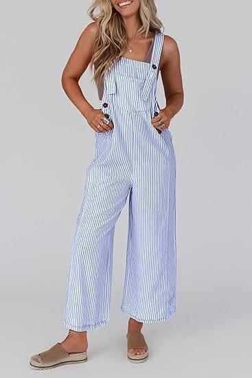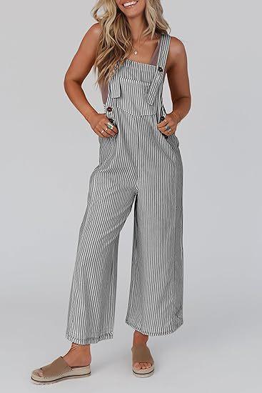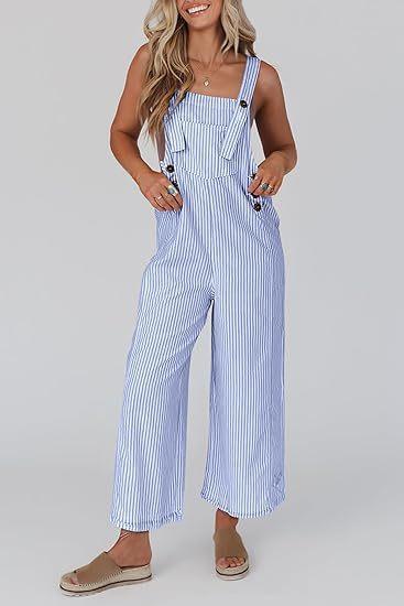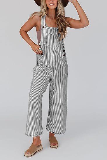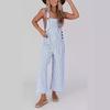 Mono de Mujer 2025 Verano Casual Pierna Ancha Sin Mangas Botones Rayas Mono Ropa de Moda