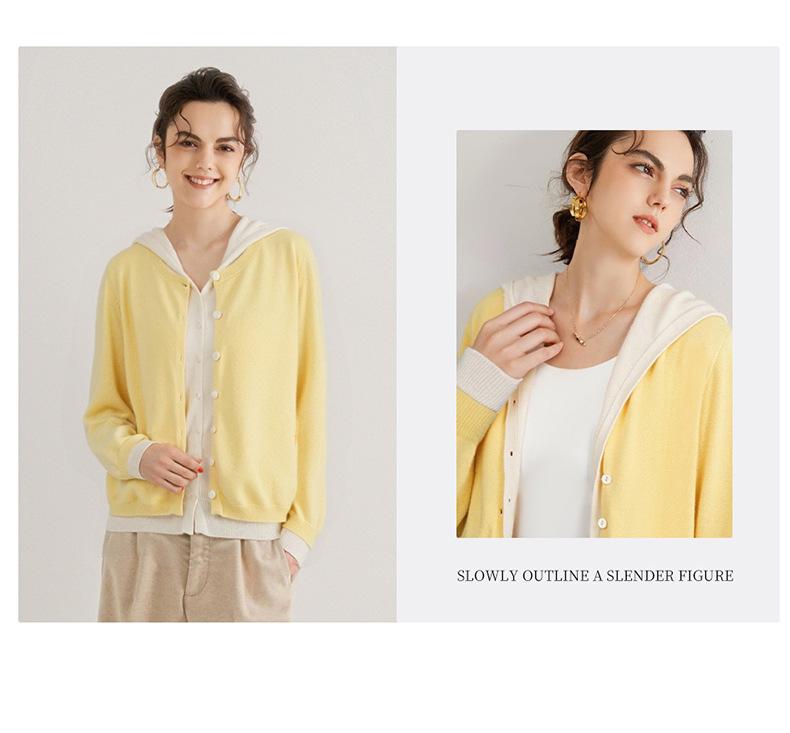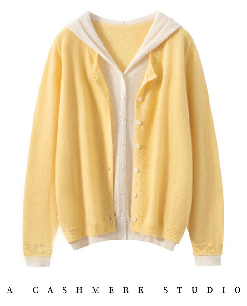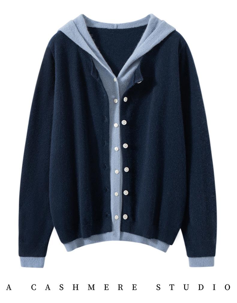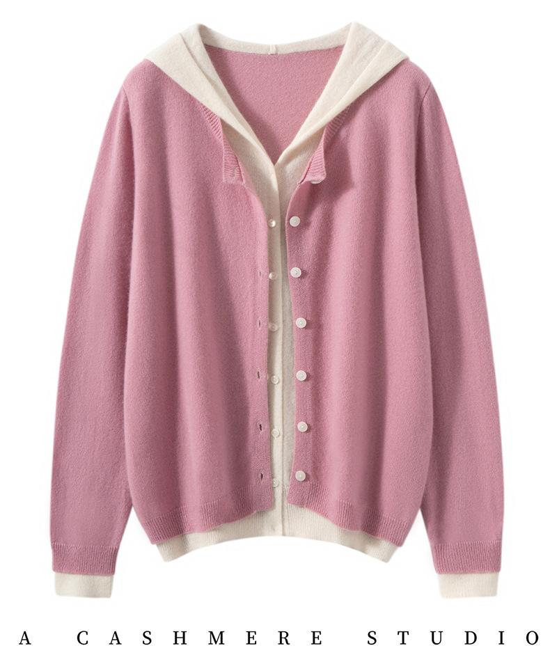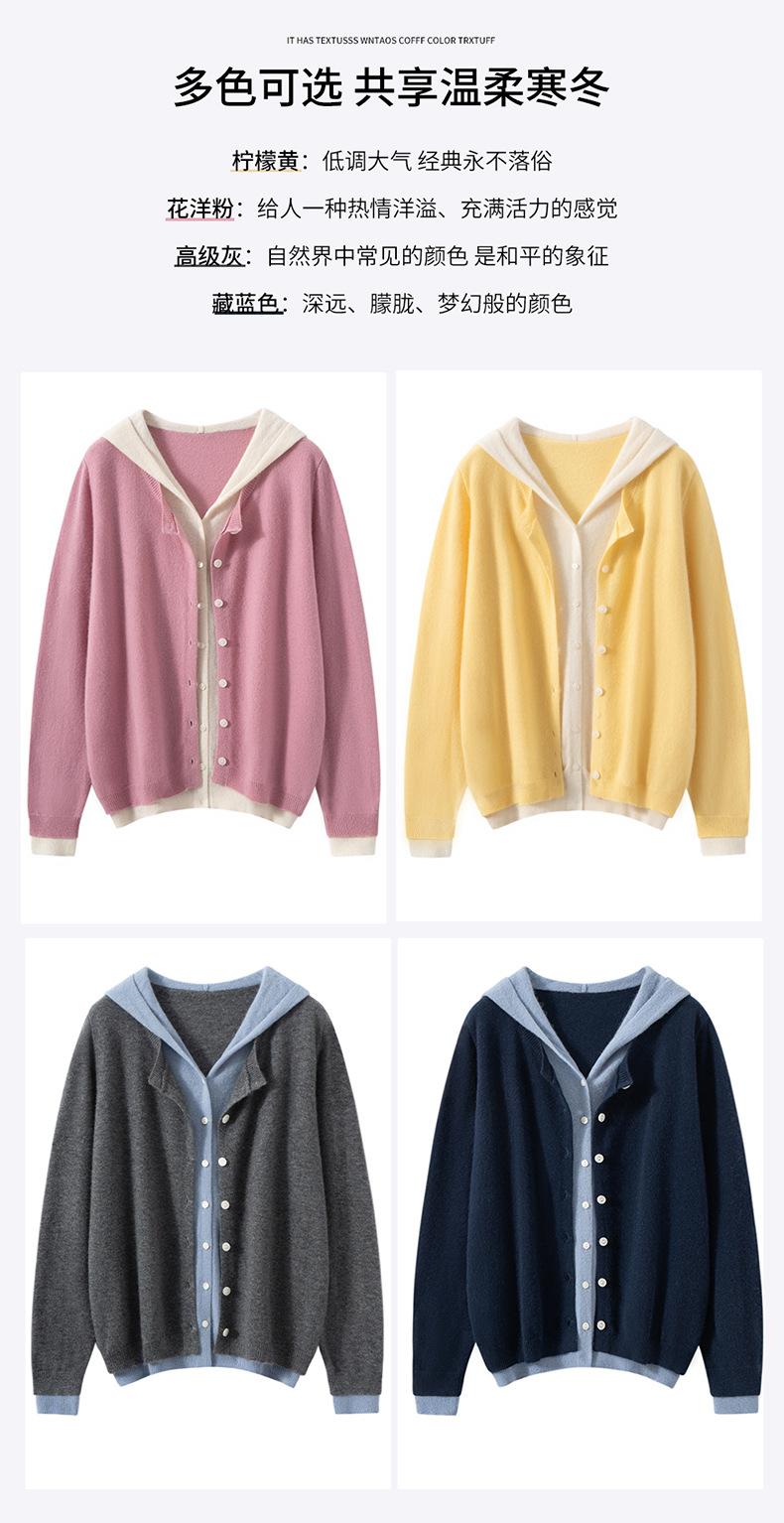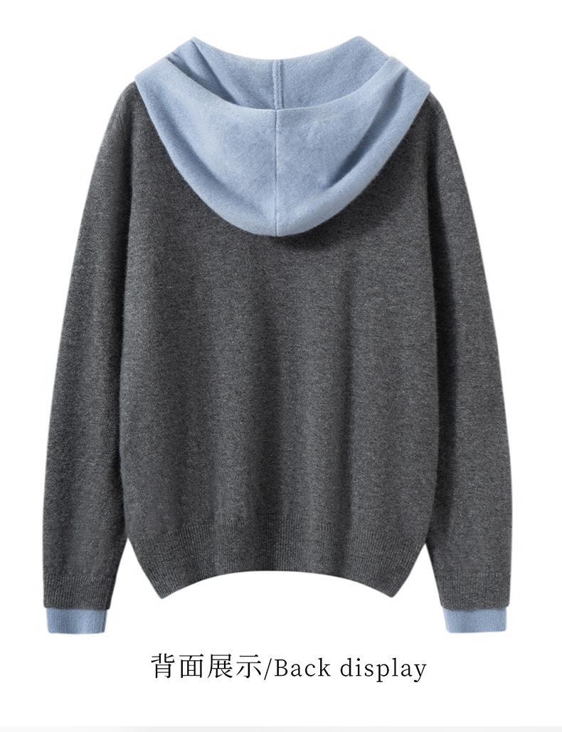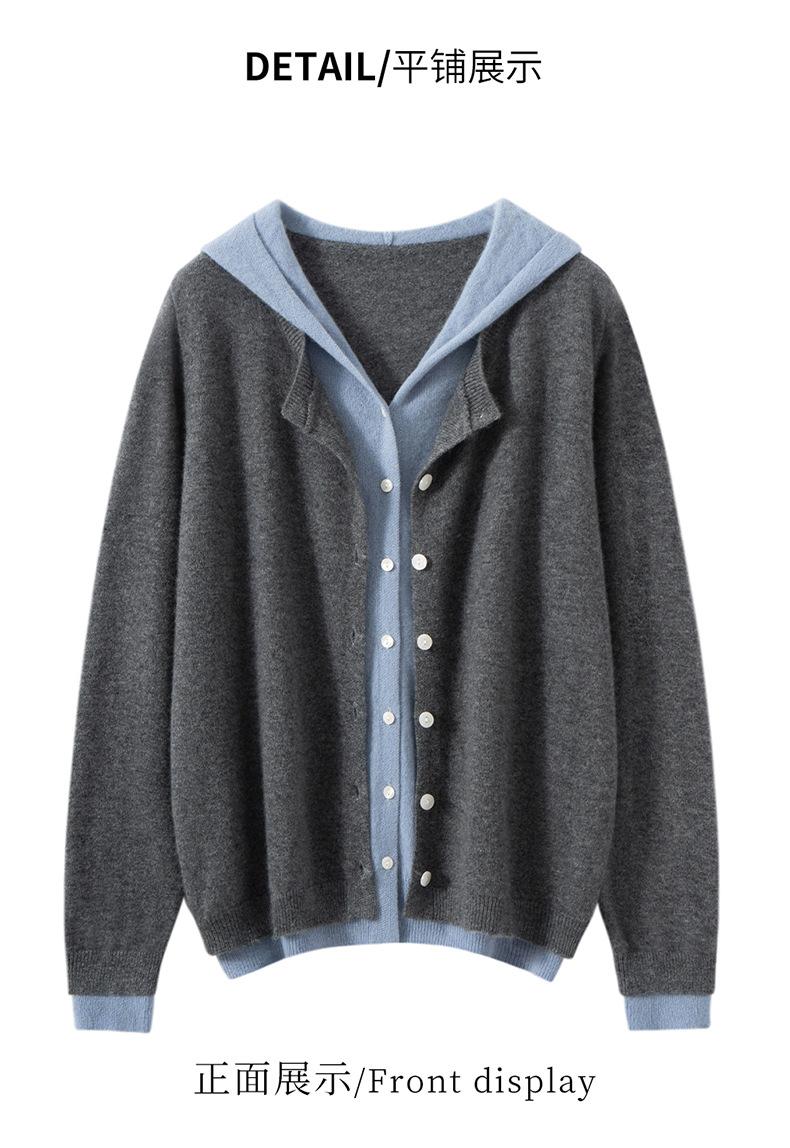 Otoño e invierno nuevo cárdigan suéter de punto casual de dos piezas falsas con capucha y manga larga suéter de cachemira mujer 100 cachemira pura