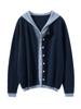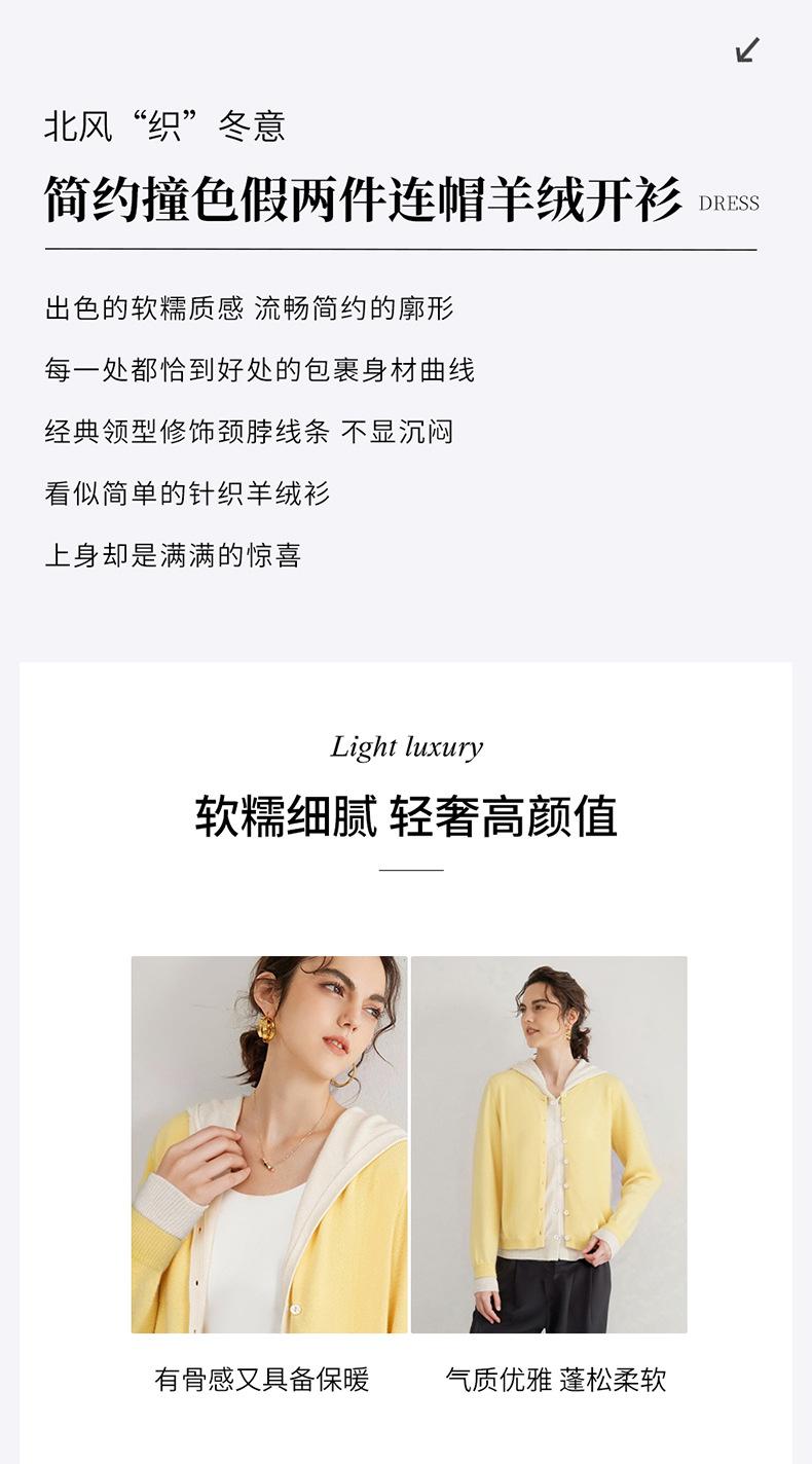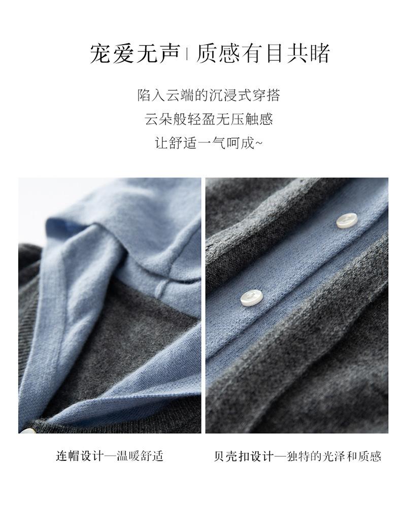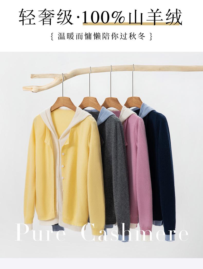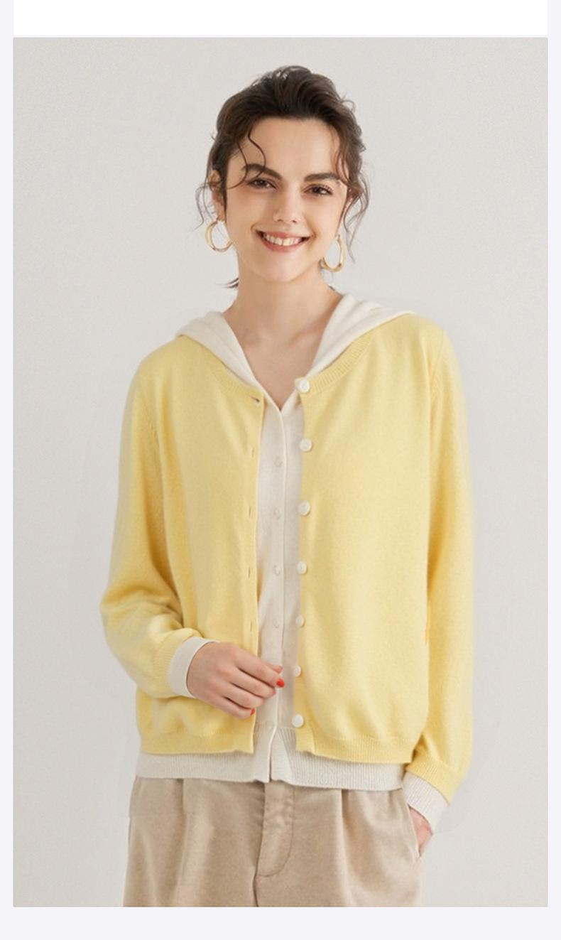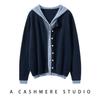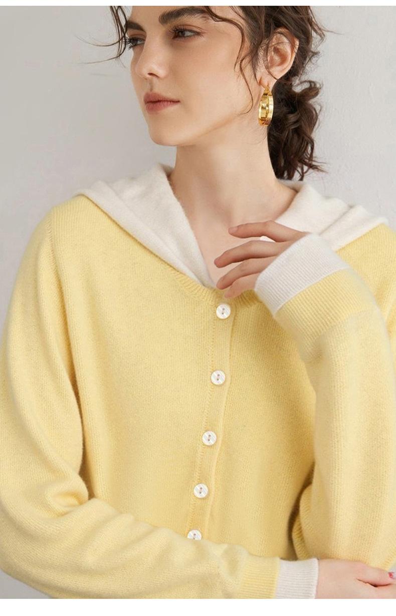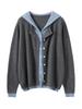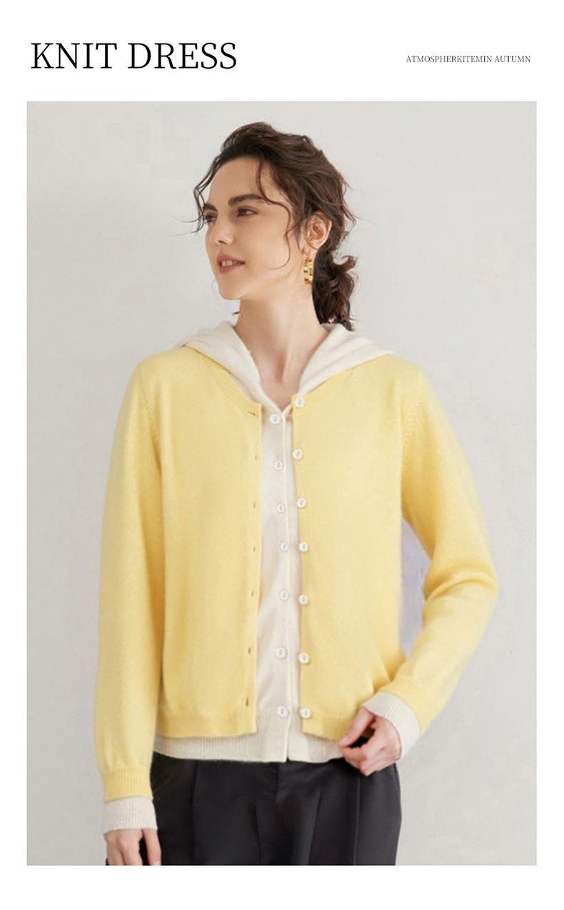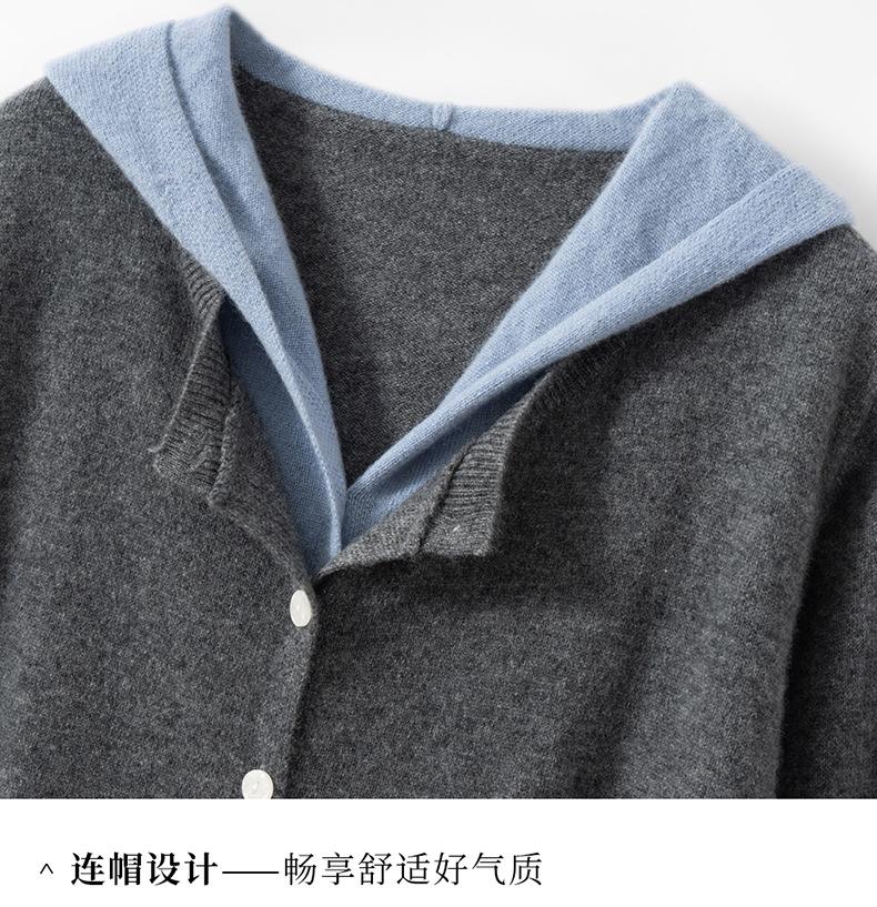 Otoño e invierno nuevo cárdigan suéter de punto casual de dos piezas falsas con capucha y manga larga suéter de cachemira mujer 100 cachemira pura