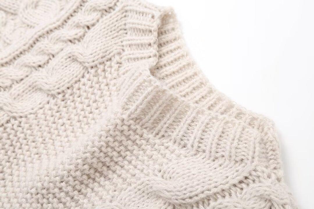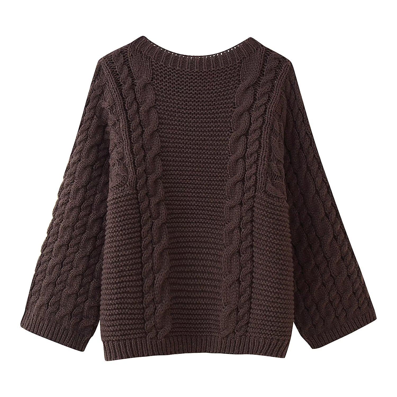 Z Estilo Europeo y Americano Transfronterizo 2025 Nueva Moda Temperamento Ropa de Mujer Venta al por Mayor Jersey de Punto Trenzado Suelto Manga Larga Top de Punto