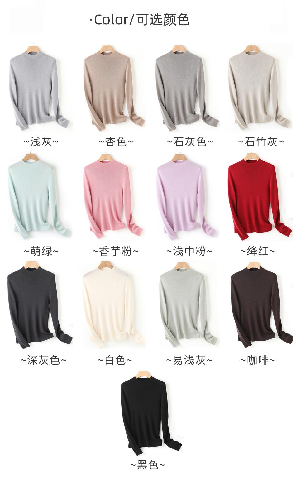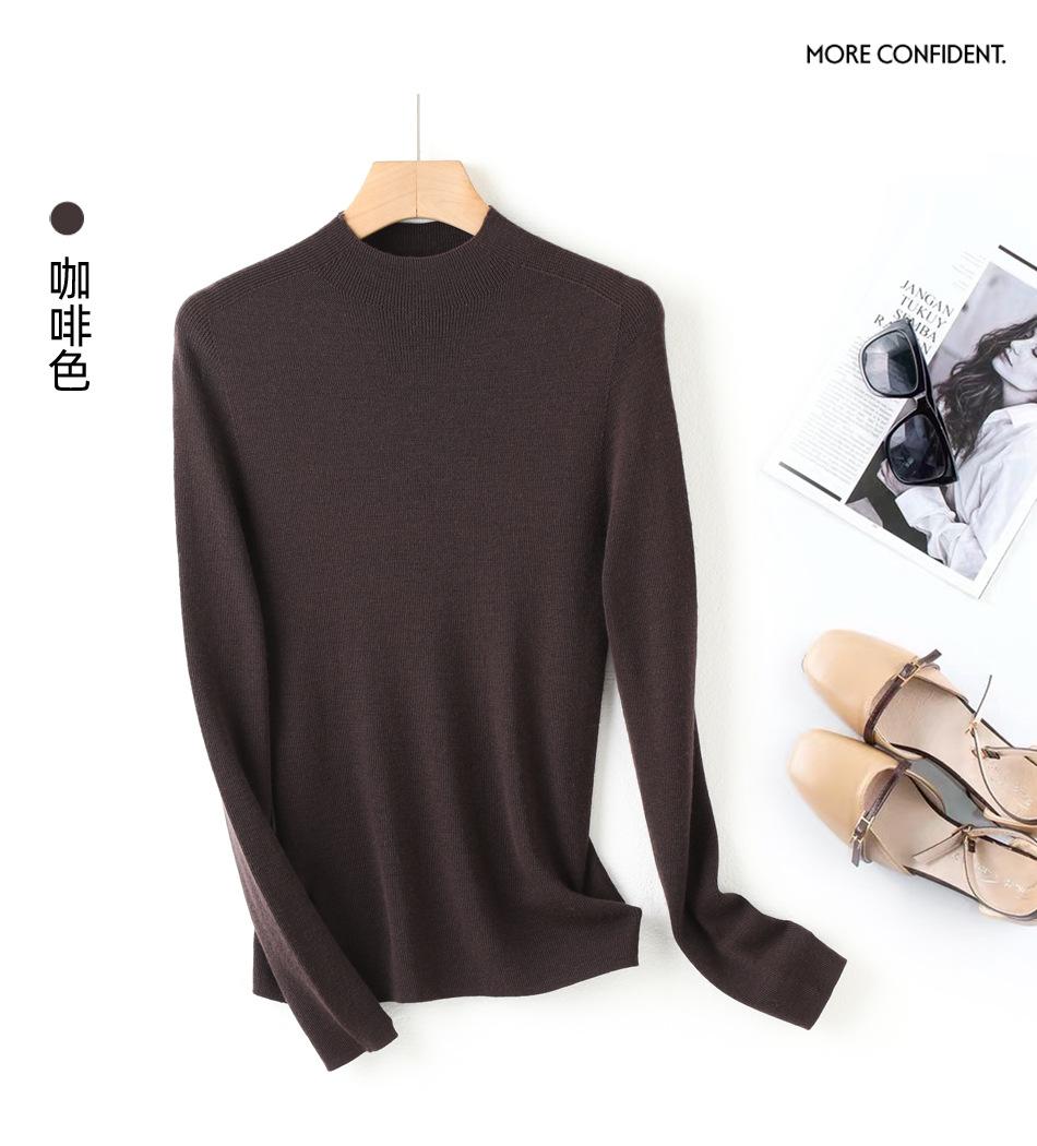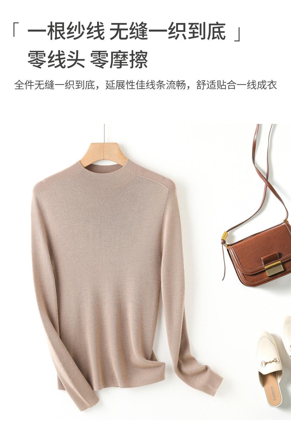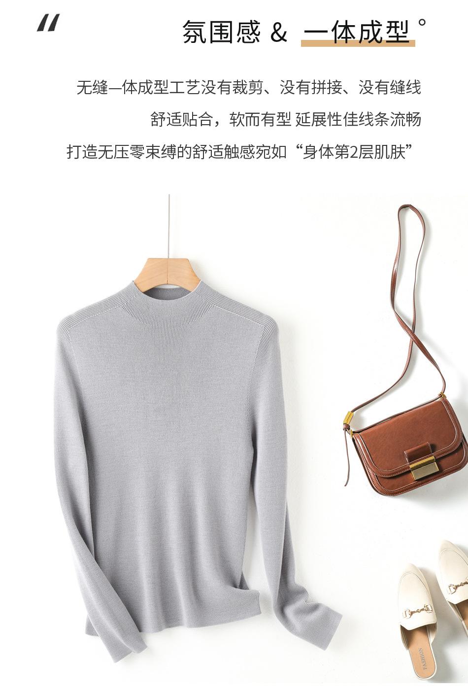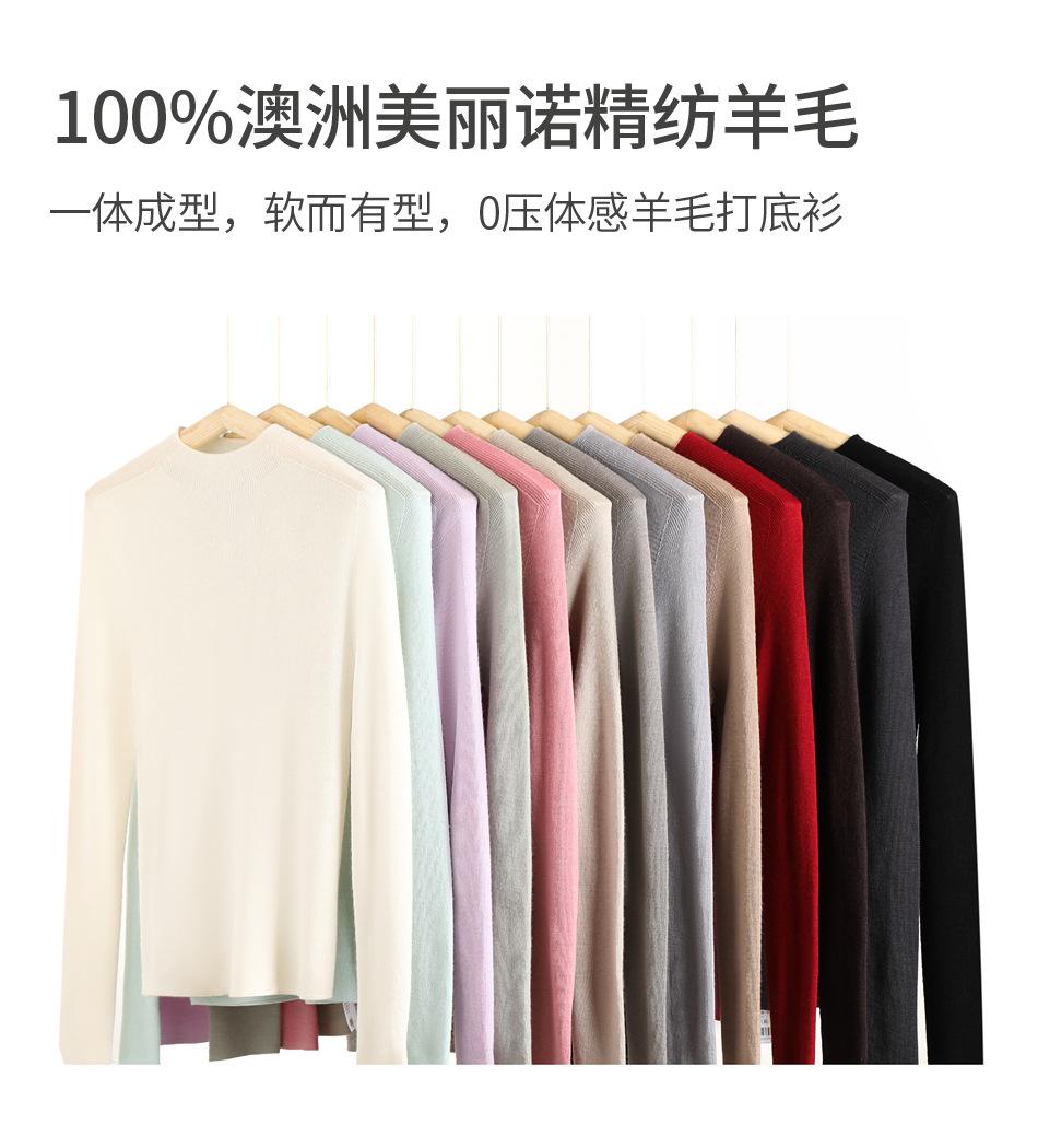 Lana Merino Yangtze Suéter de Lana Superfina para Mujer sin Costuras Cuello Medio Alto Capa Interior Suéter Otoño Invierno Punto Base Mujer