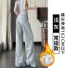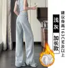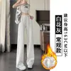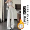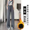 Pantalón de sudadera gris para mujer otoño e invierno 2025 nuevo americano holgado de pierna recta y ancha pantalón de cintura alta adelgazante casual