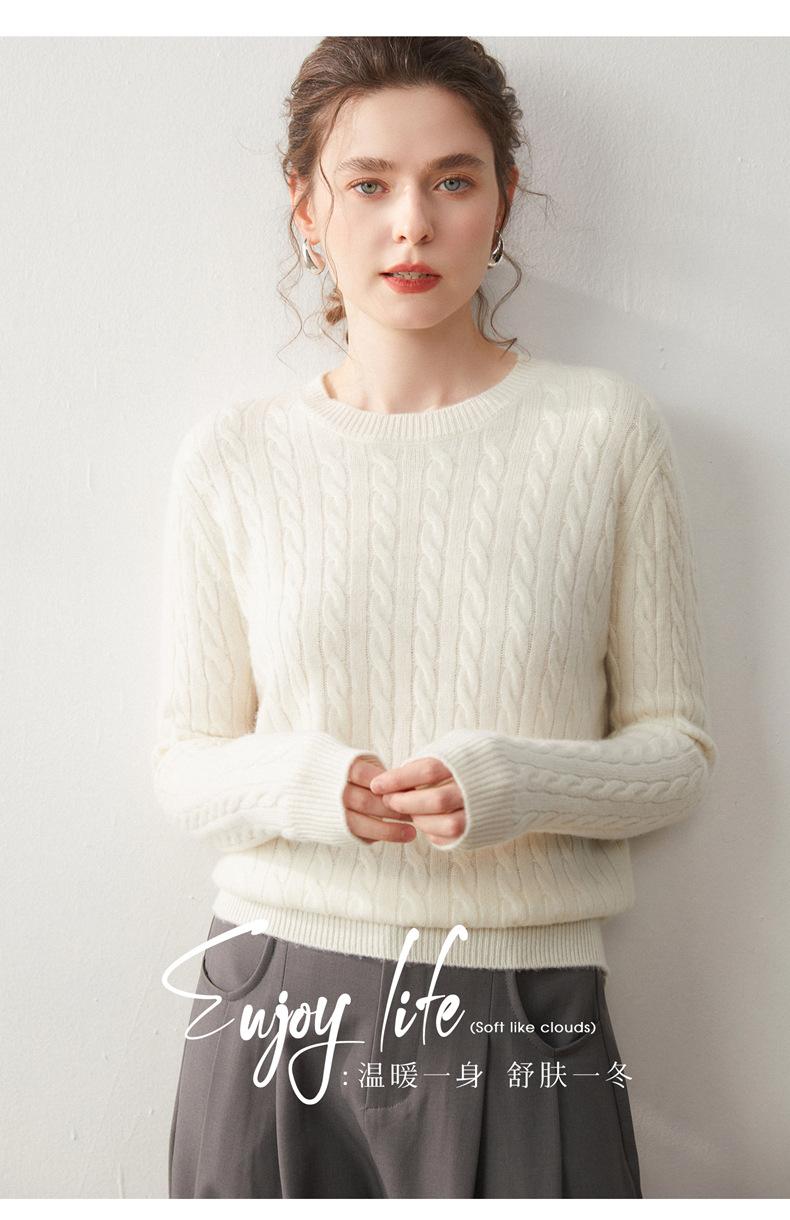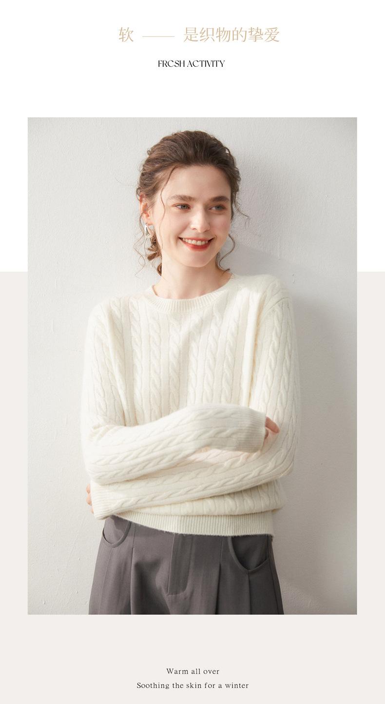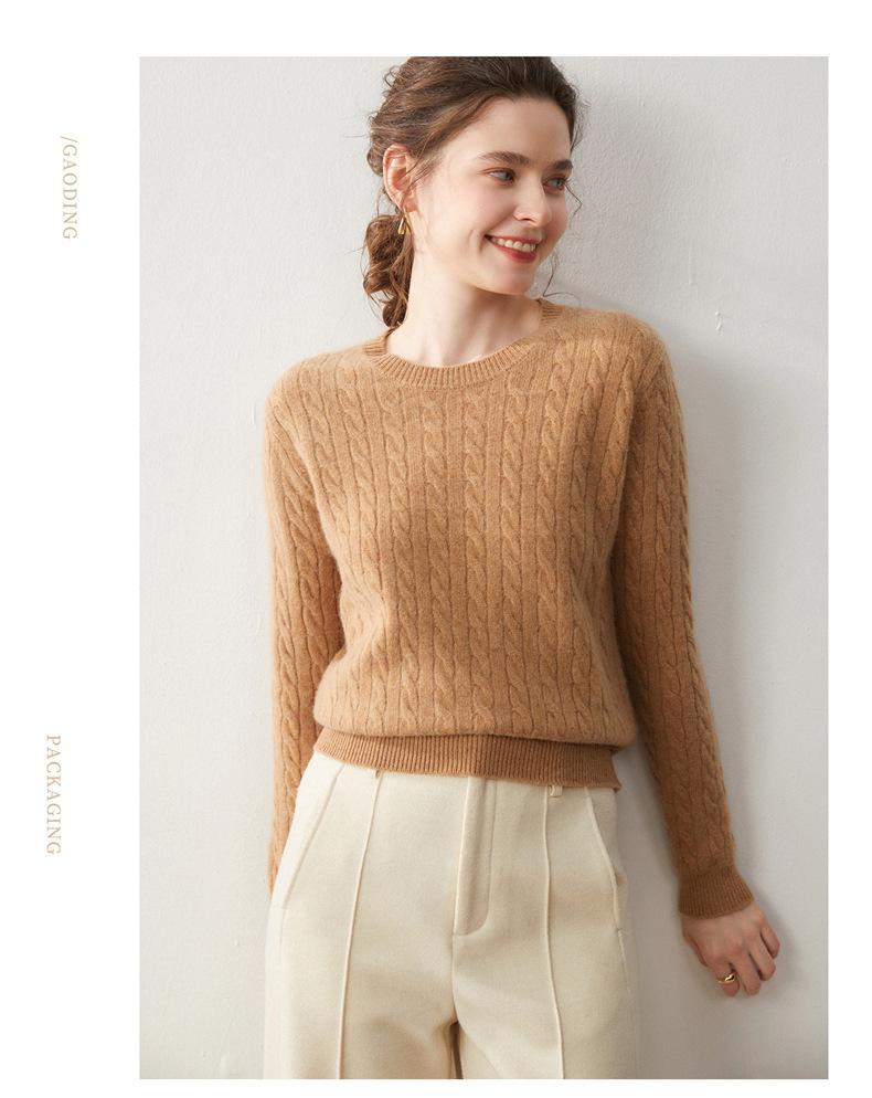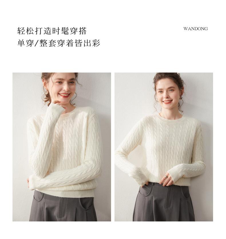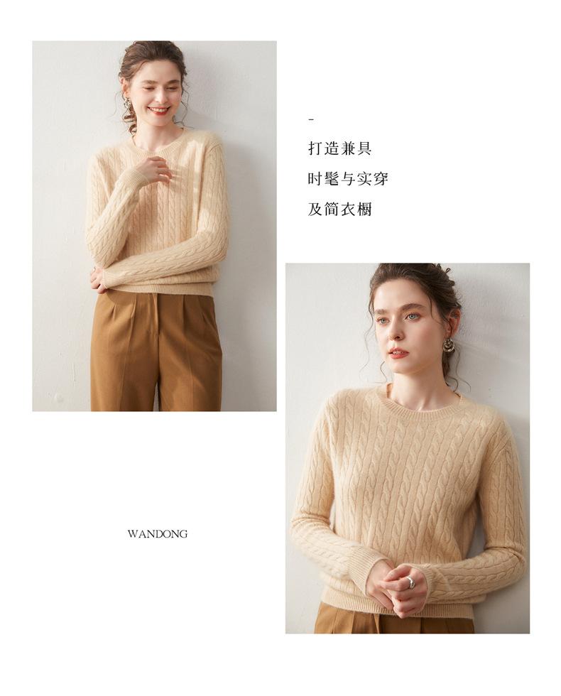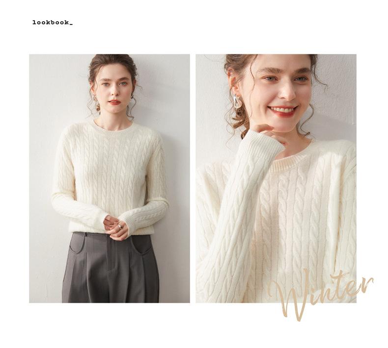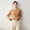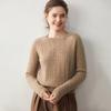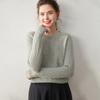 Nueva Camiseta Base de Punto de Cachemira de Otoño e Invierno Color Sólido Suave y Cómoda Holgada Adelgazante Cuello Redondo Manga Larga Moda para Mujer