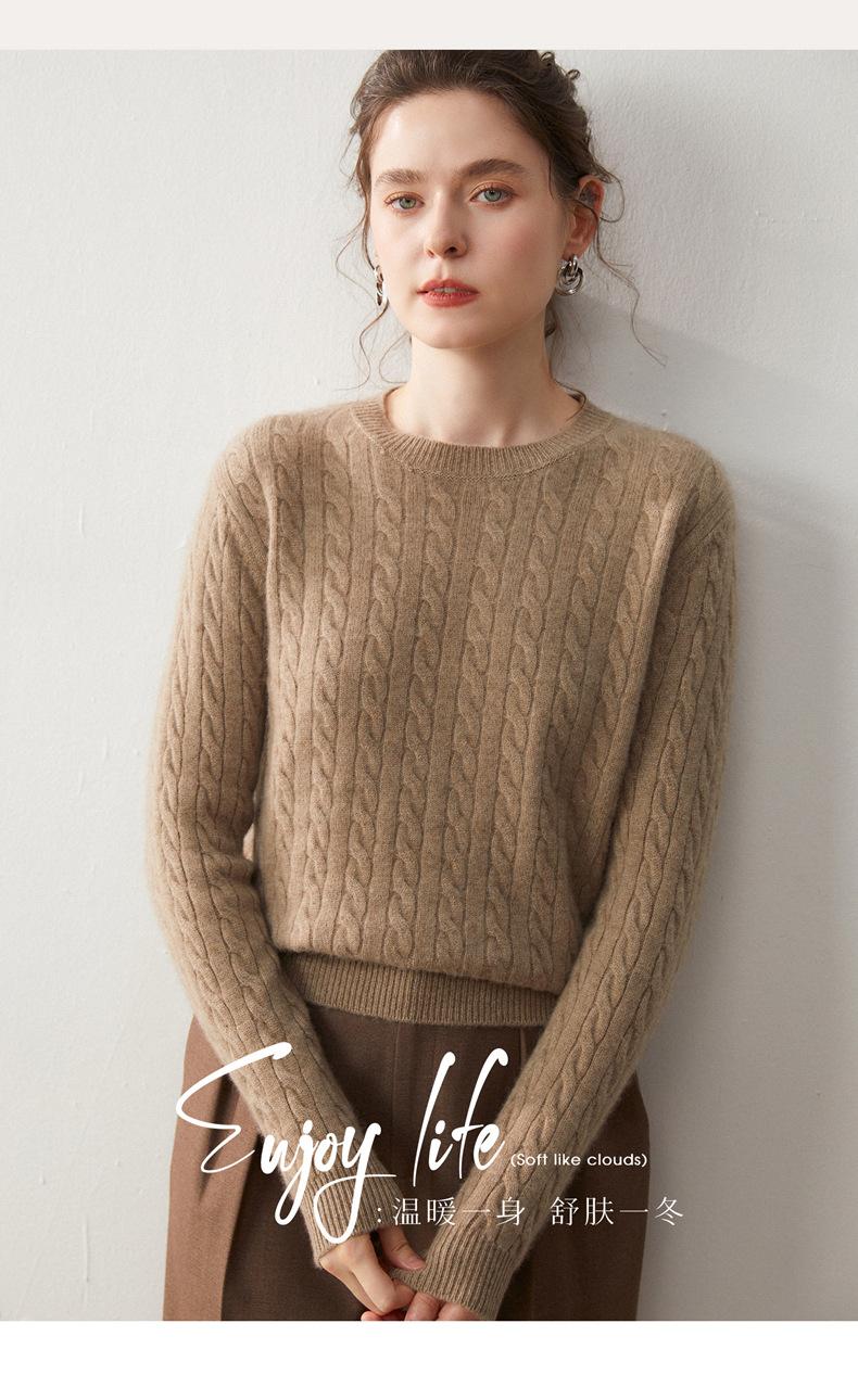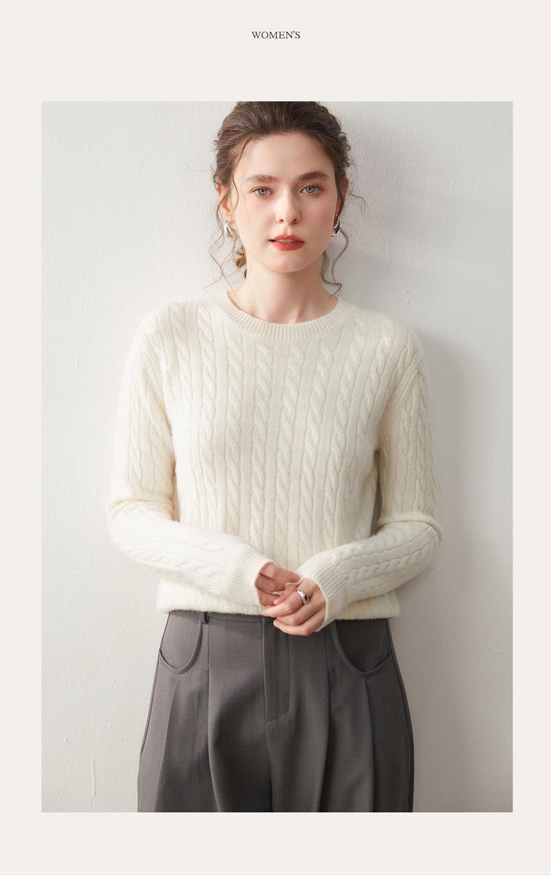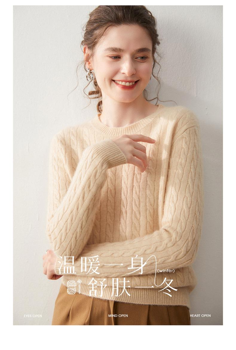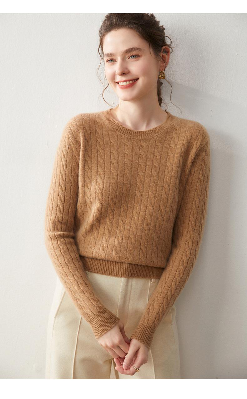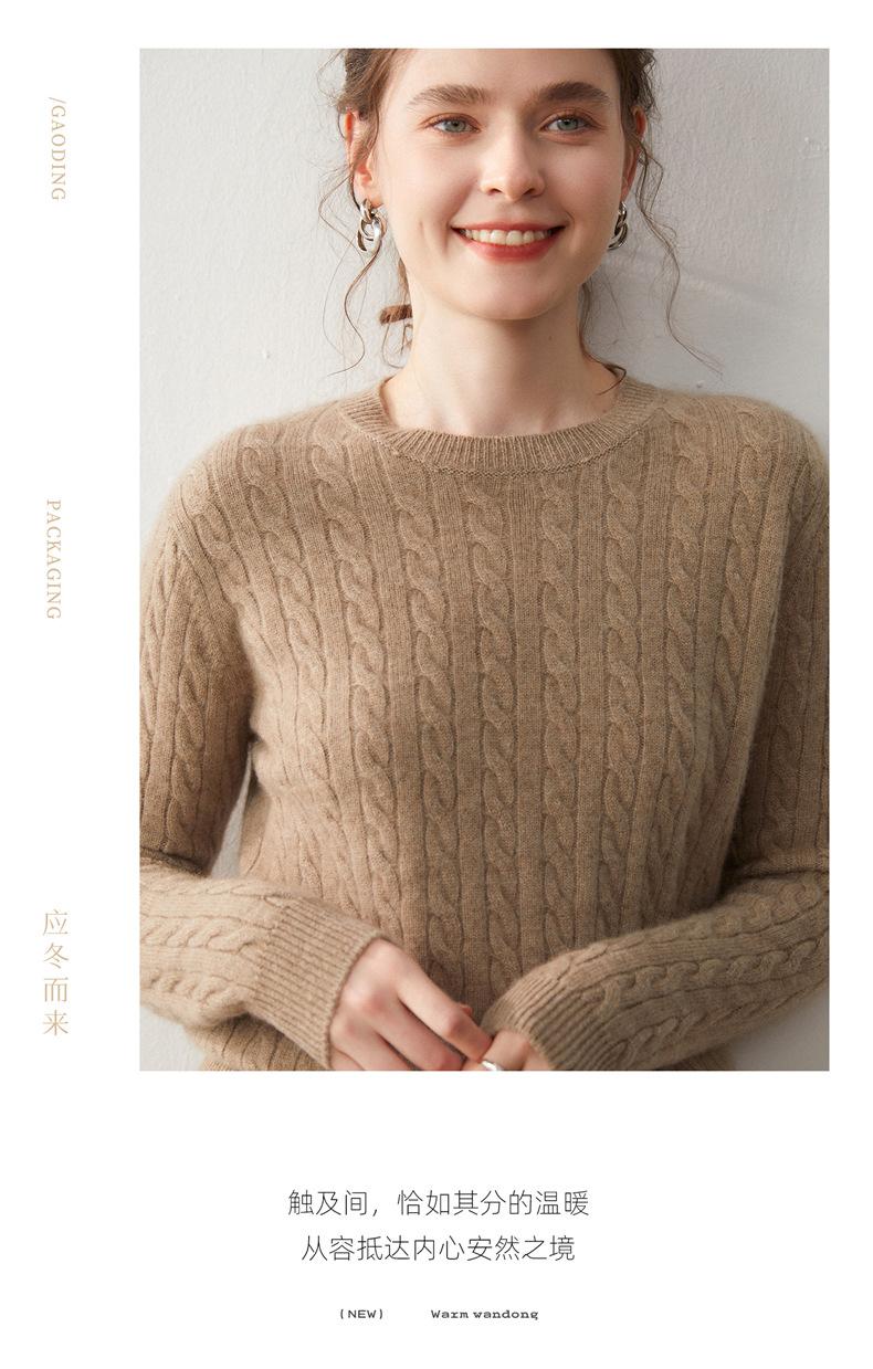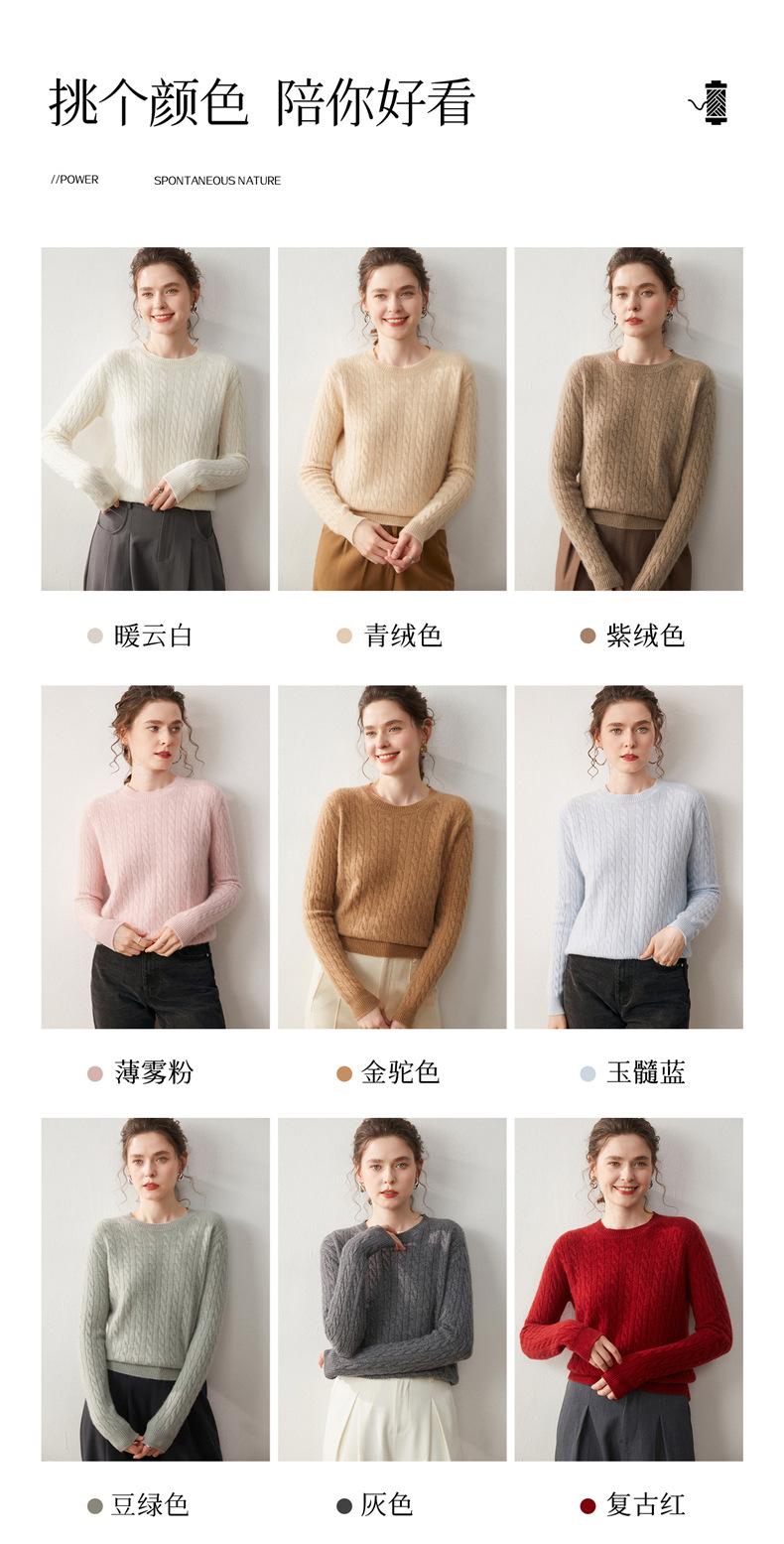 Nueva Camiseta Base de Punto de Cachemira de Otoño e Invierno Color Sólido Suave y Cómoda Holgada Adelgazante Cuello Redondo Manga Larga Moda para Mujer