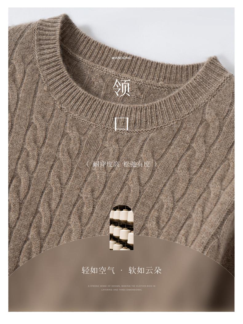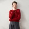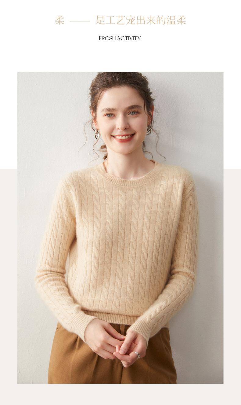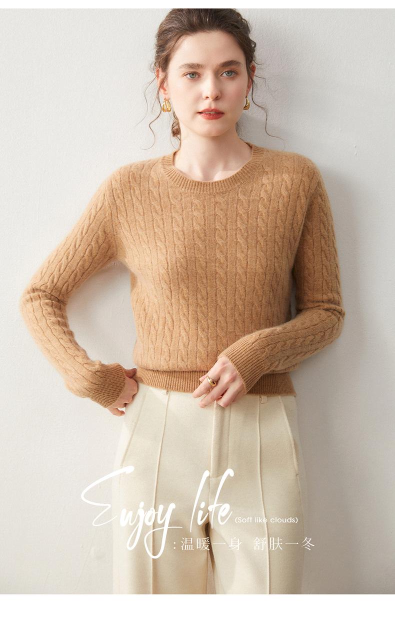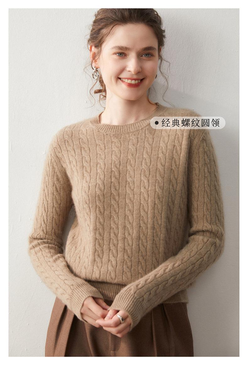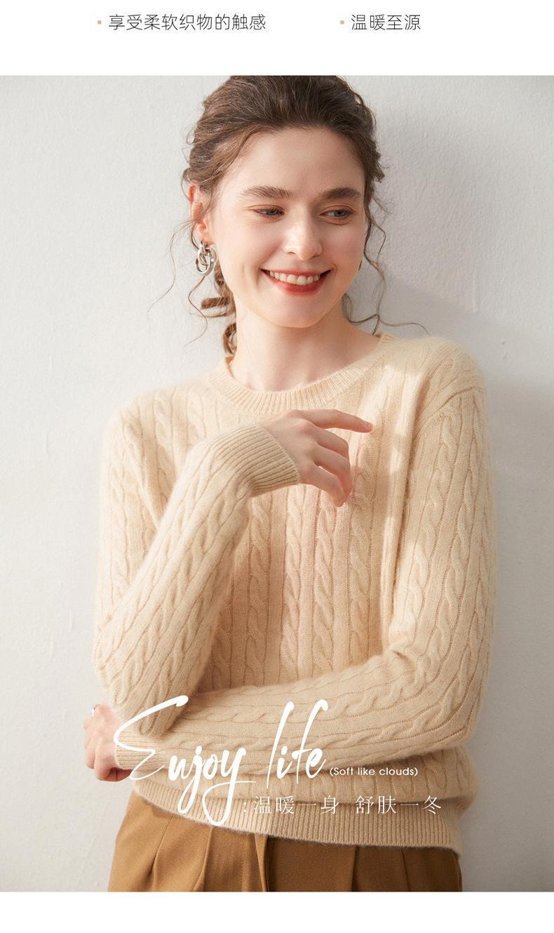 Nueva Camiseta Base de Punto de Cachemira de Otoño e Invierno Color Sólido Suave y Cómoda Holgada Adelgazante Cuello Redondo Manga Larga Moda para Mujer