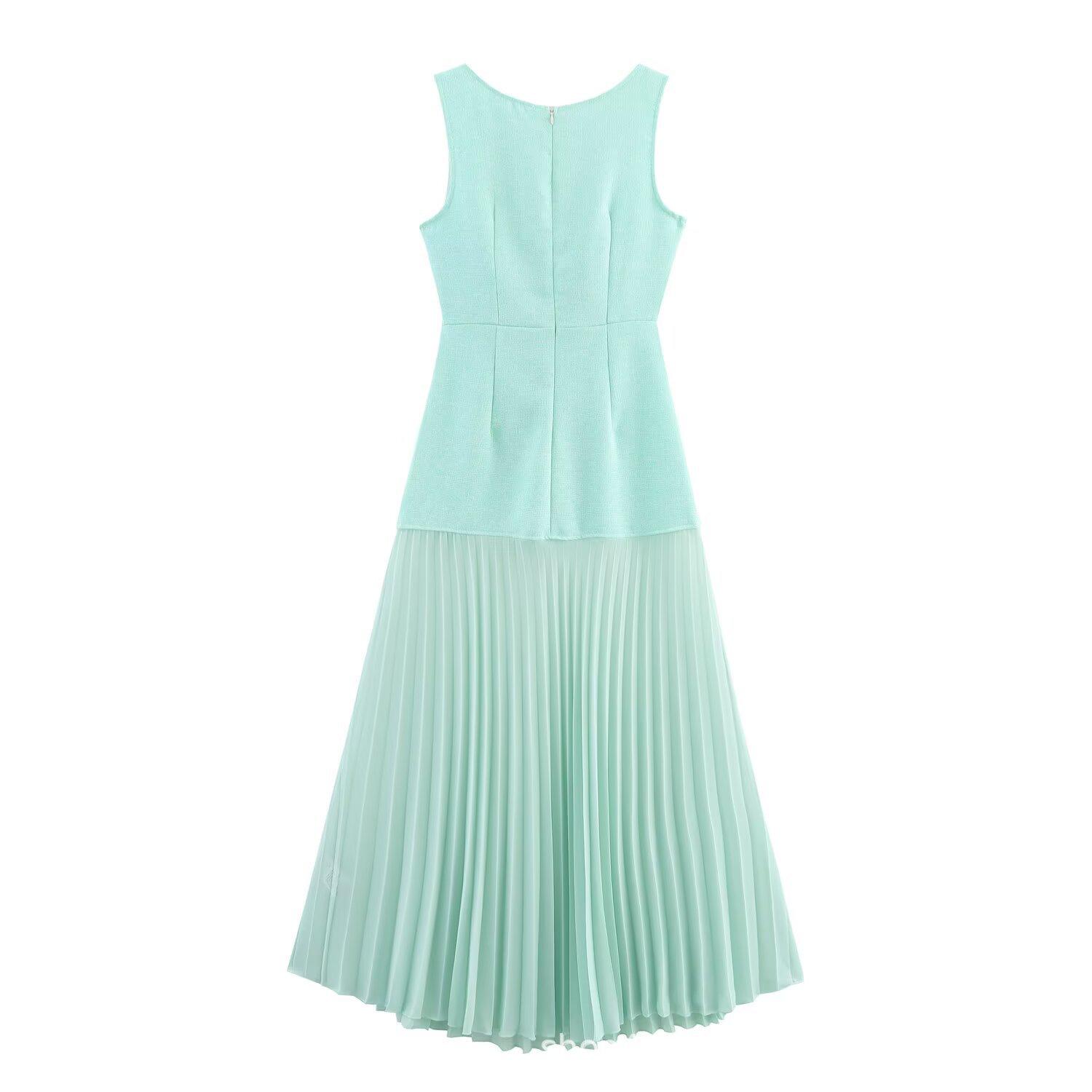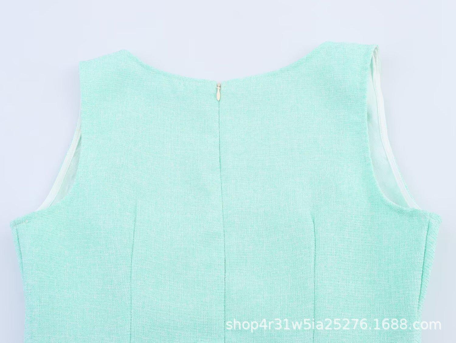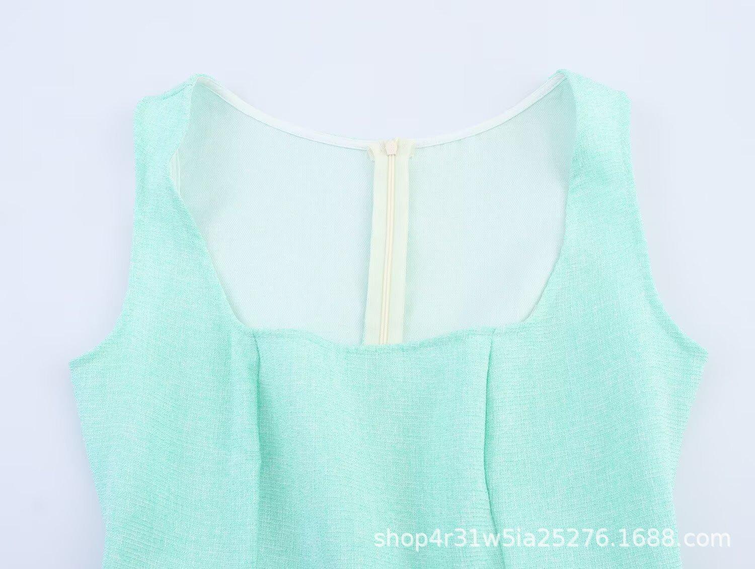 Ropa de Mujer al por Mayor Europea y Americana 2025 Verano Nueva Moda Vestido Ajustado sin Mangas con Cuello Cuadrado y Pliegues