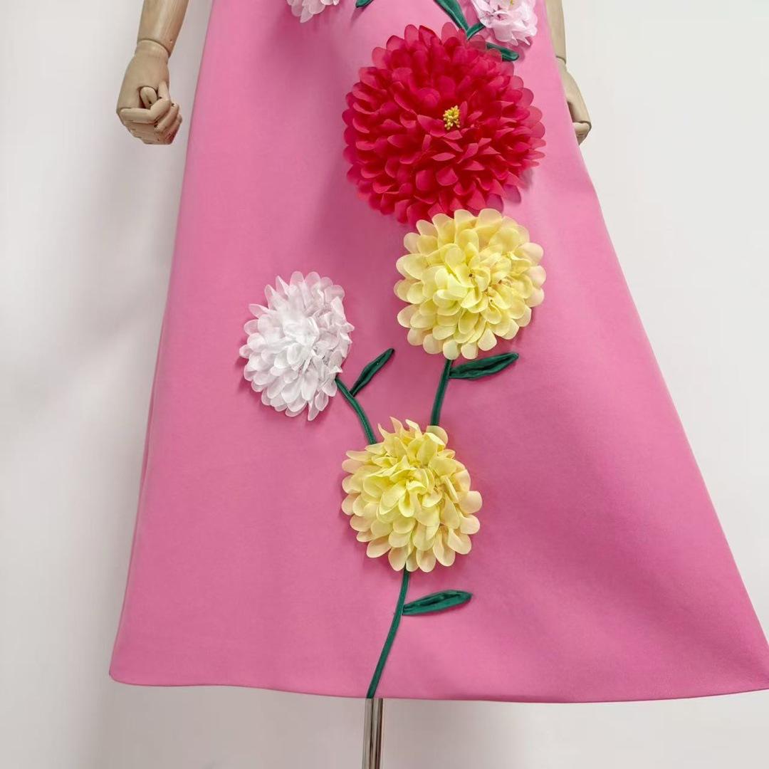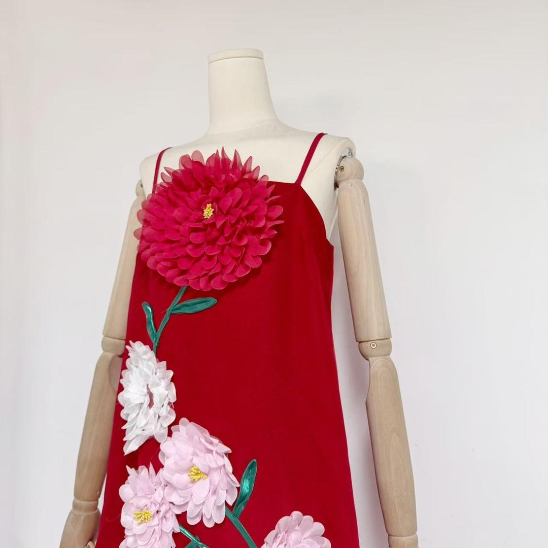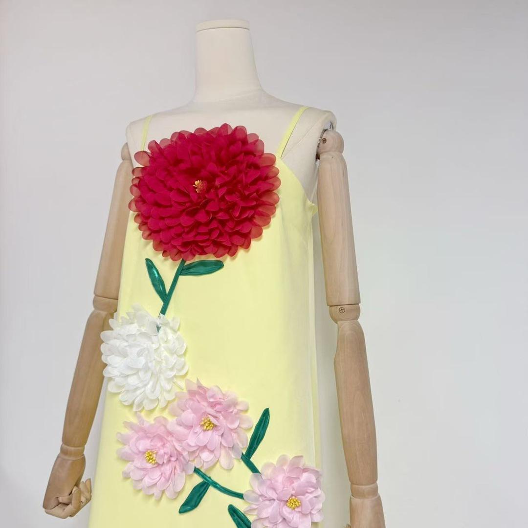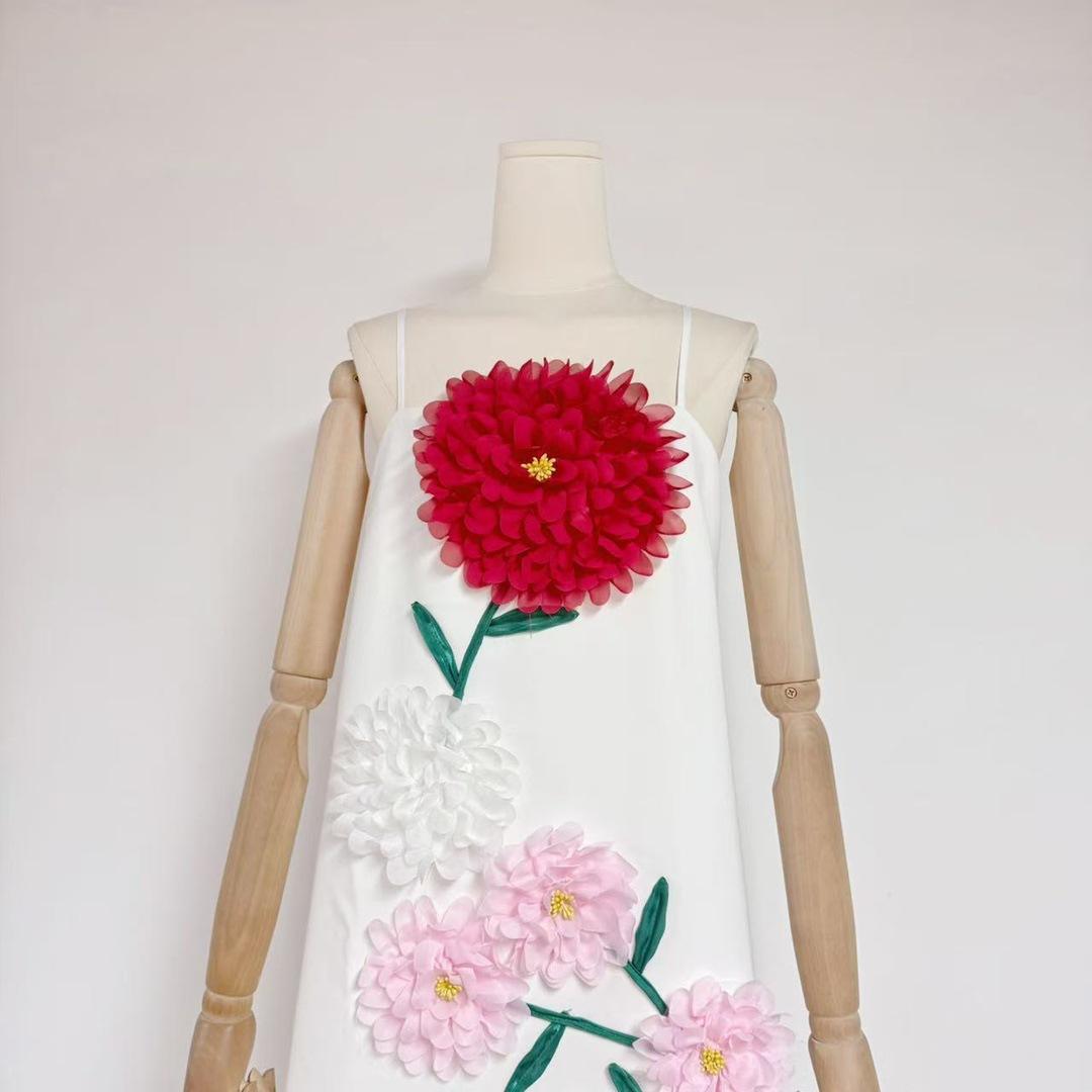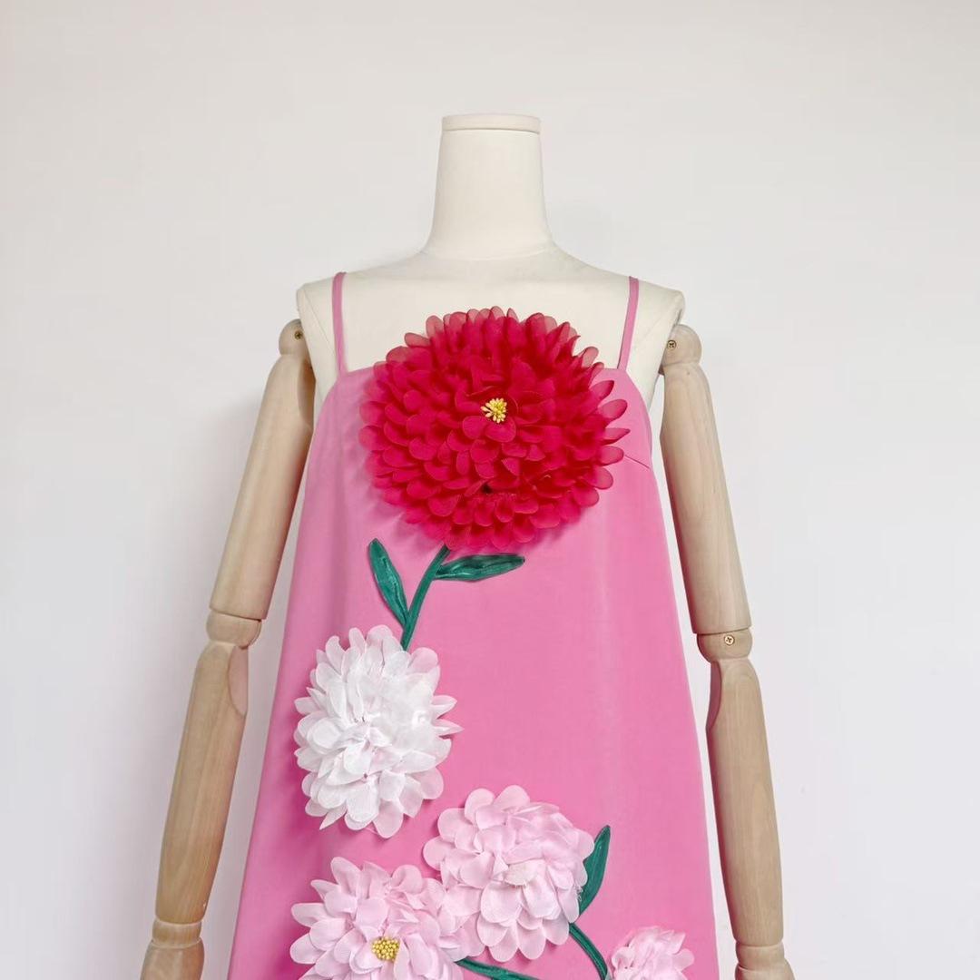 Vintage flor grande costuras decorativas tridimensionales 2025 nuevo color sólido falda de tirantes vestido suelto