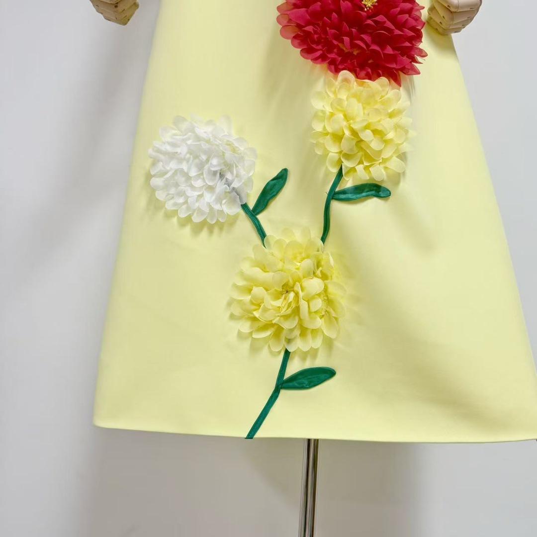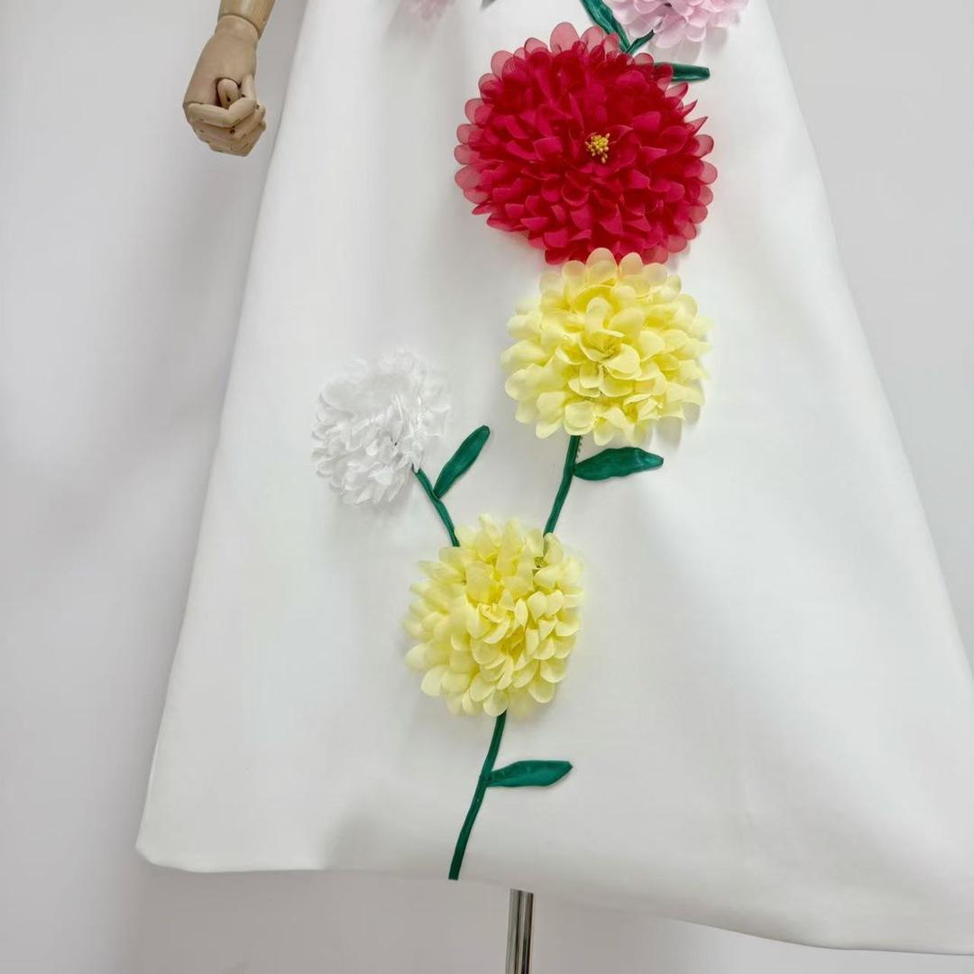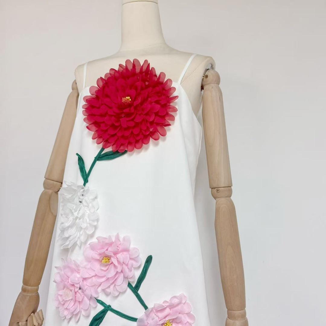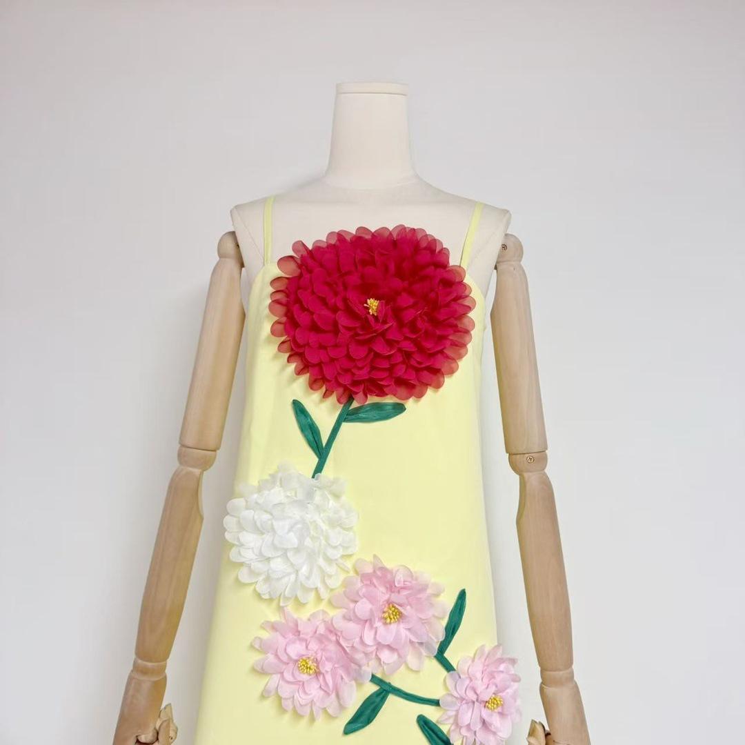 Vintage flor grande costuras decorativas tridimensionales 2025 nuevo color sólido falda de tirantes vestido suelto
