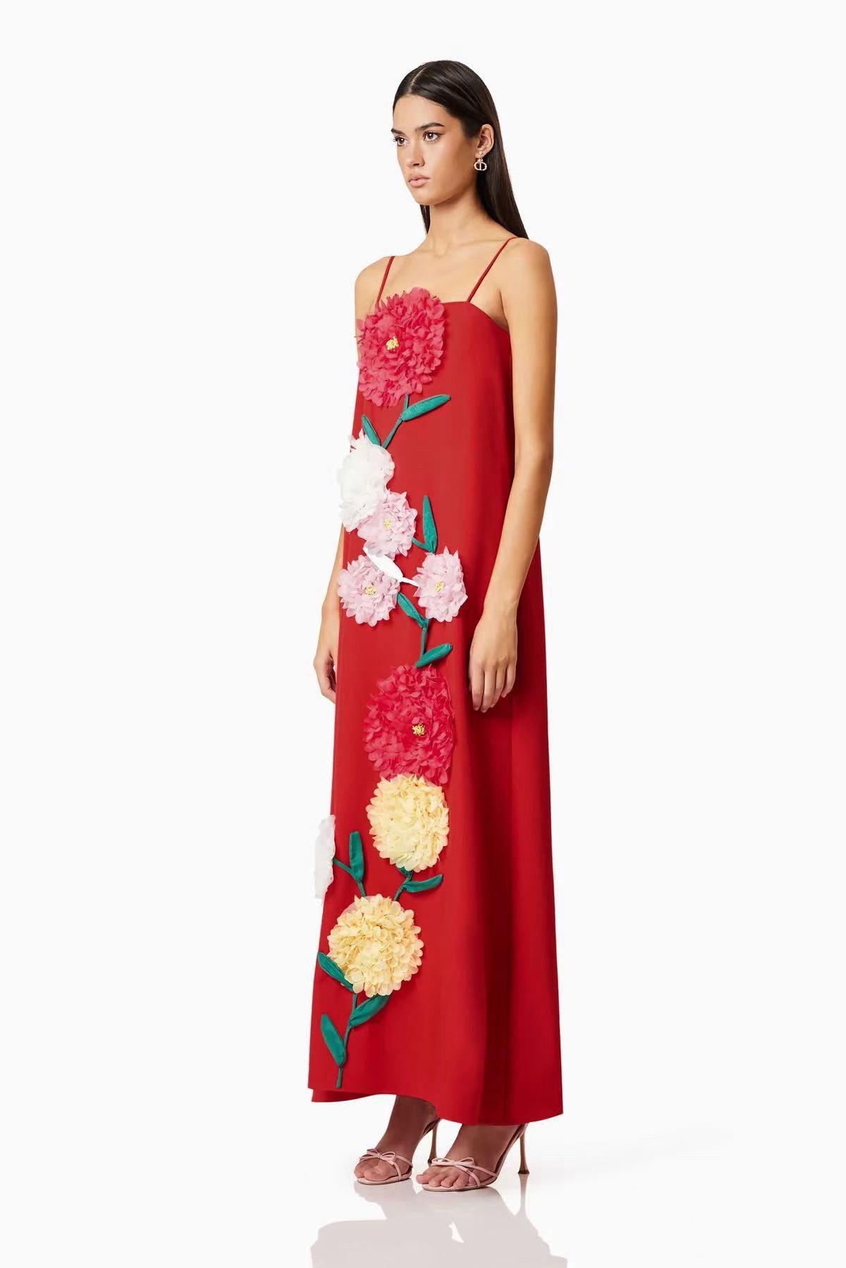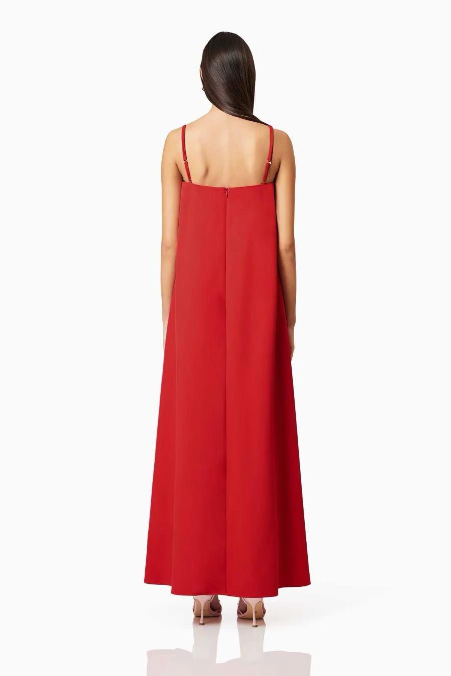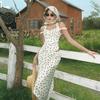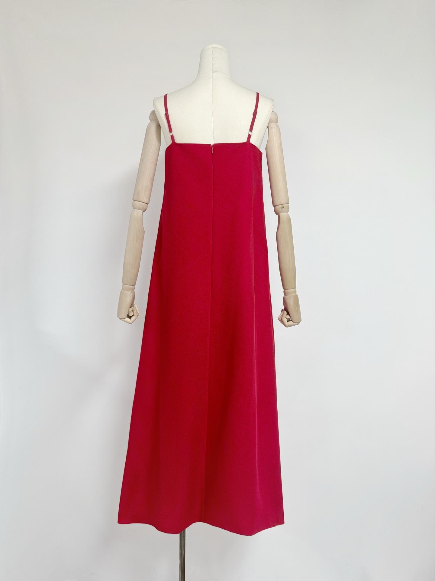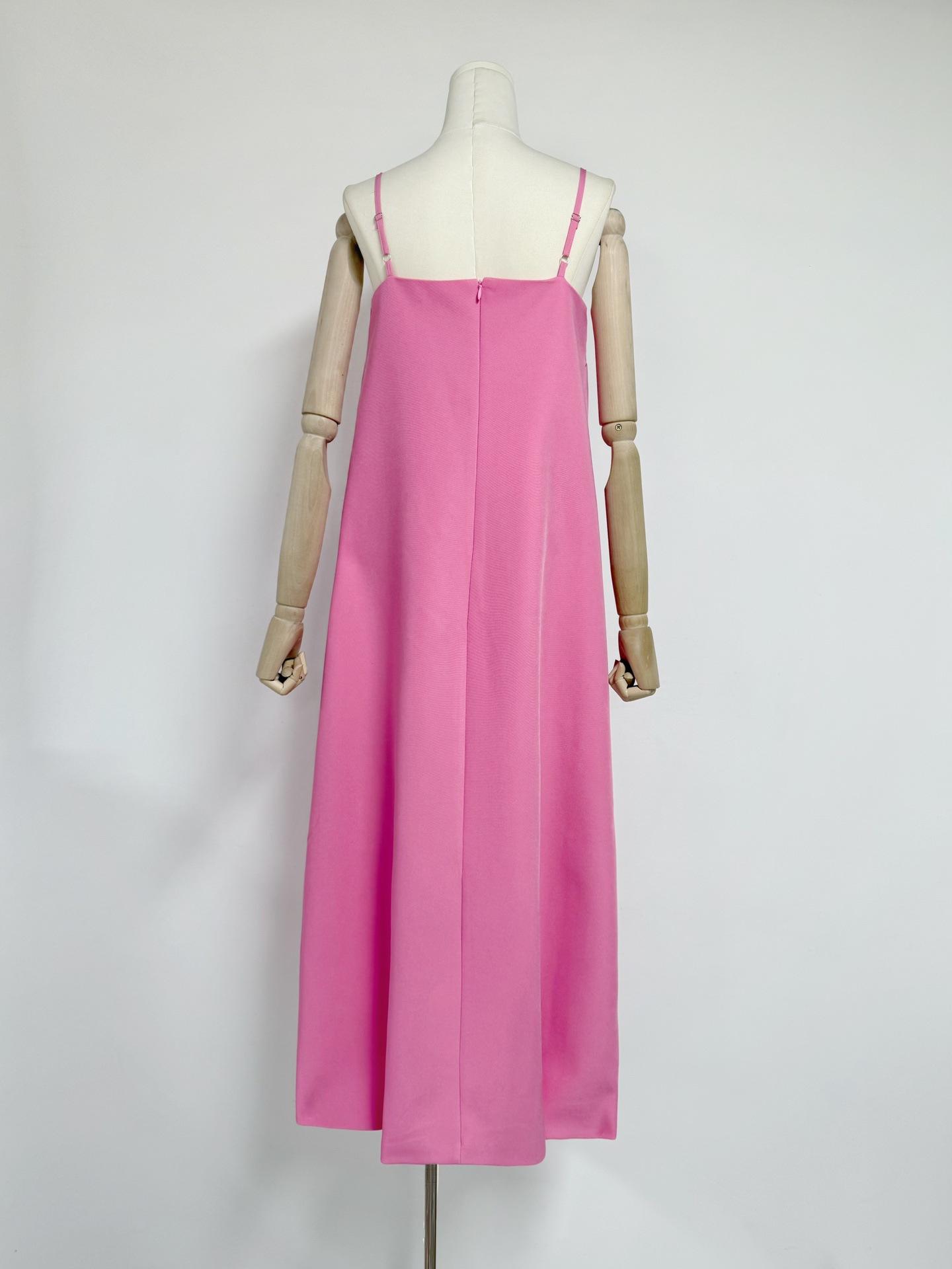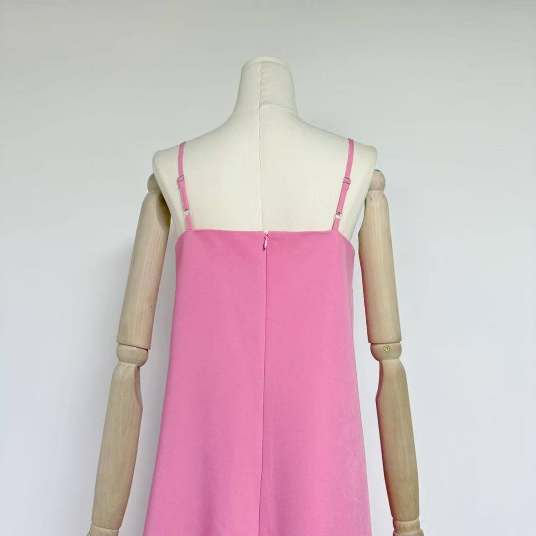 Vintage flor grande costuras decorativas tridimensionales 2025 nuevo color sólido falda de tirantes vestido suelto