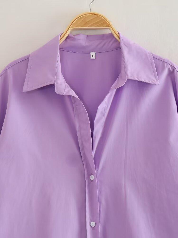 2024 Verano Nuevo Ropa de Mujer Estilo Europeo y Americano Simple Suelta Solapa Camisa Popelina Combinable Top Casual Multicolor