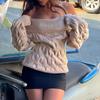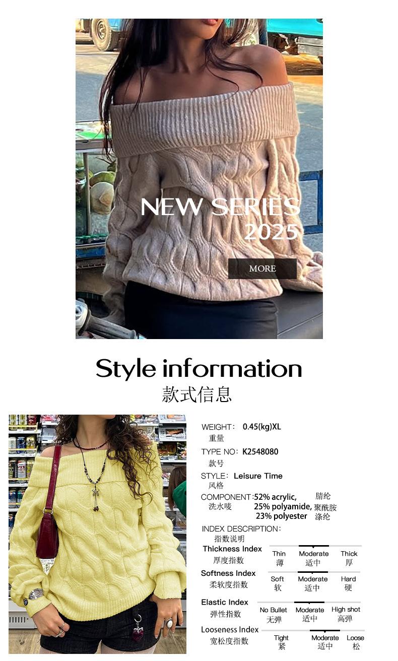 Diyun Transfronterizo Europeo y Americano Moda Simple Hombros Descubiertos Manga Larga Suéter Tejido Ropa de Mujer Otoño/Invierno 2025 Estación Independiente de Amazon