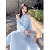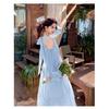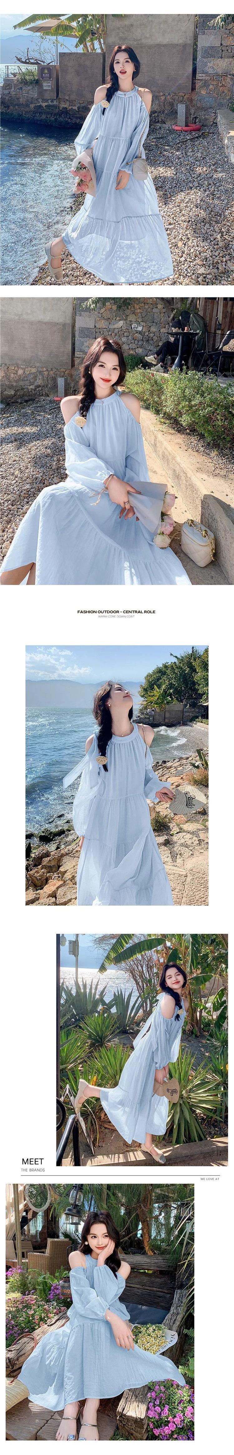 2025 nuevo estilo francés suave dulce suelto hermoso hada falda larga estilo vacaciones playeras vestido con hombros descubiertos mujer