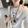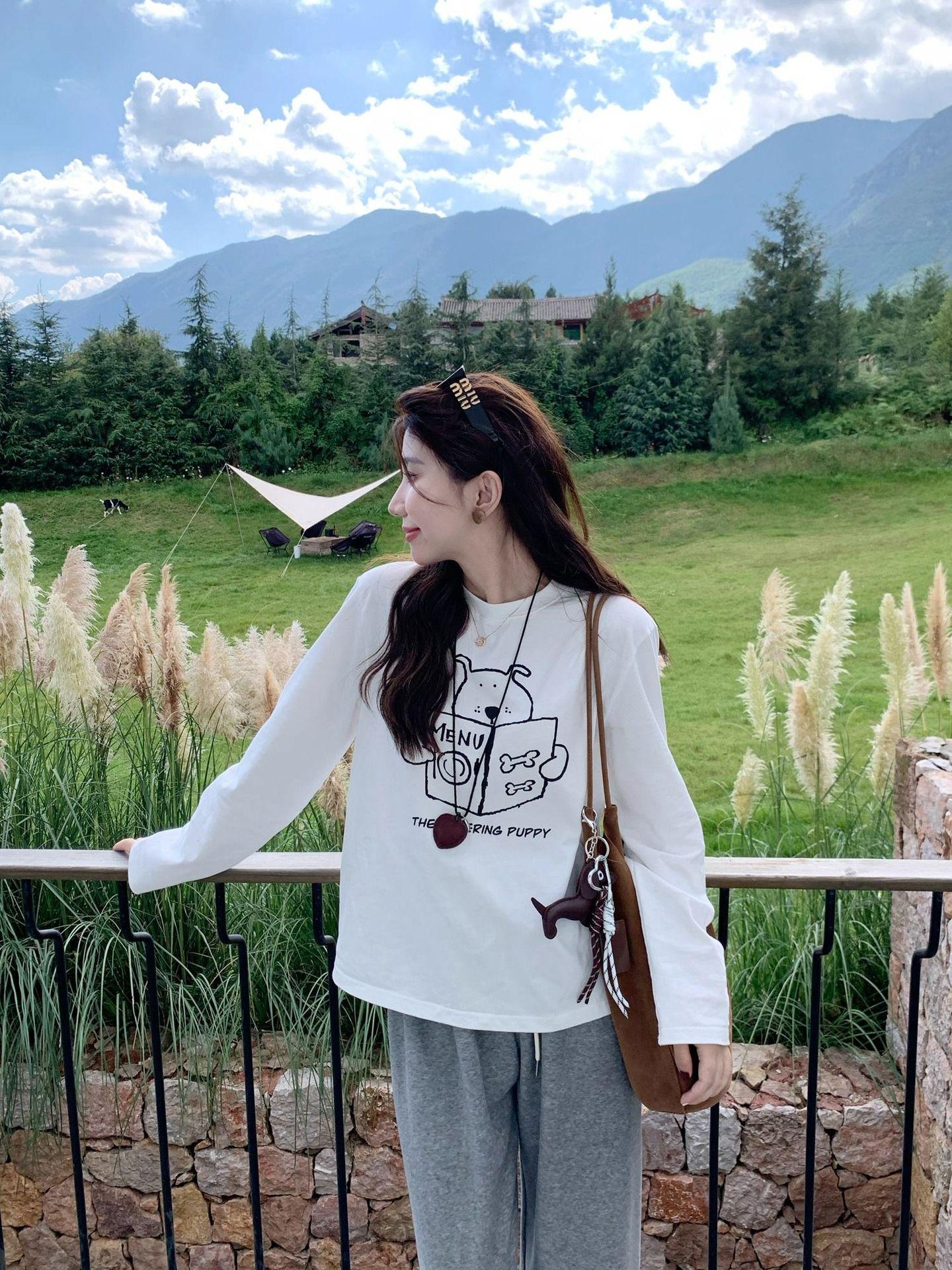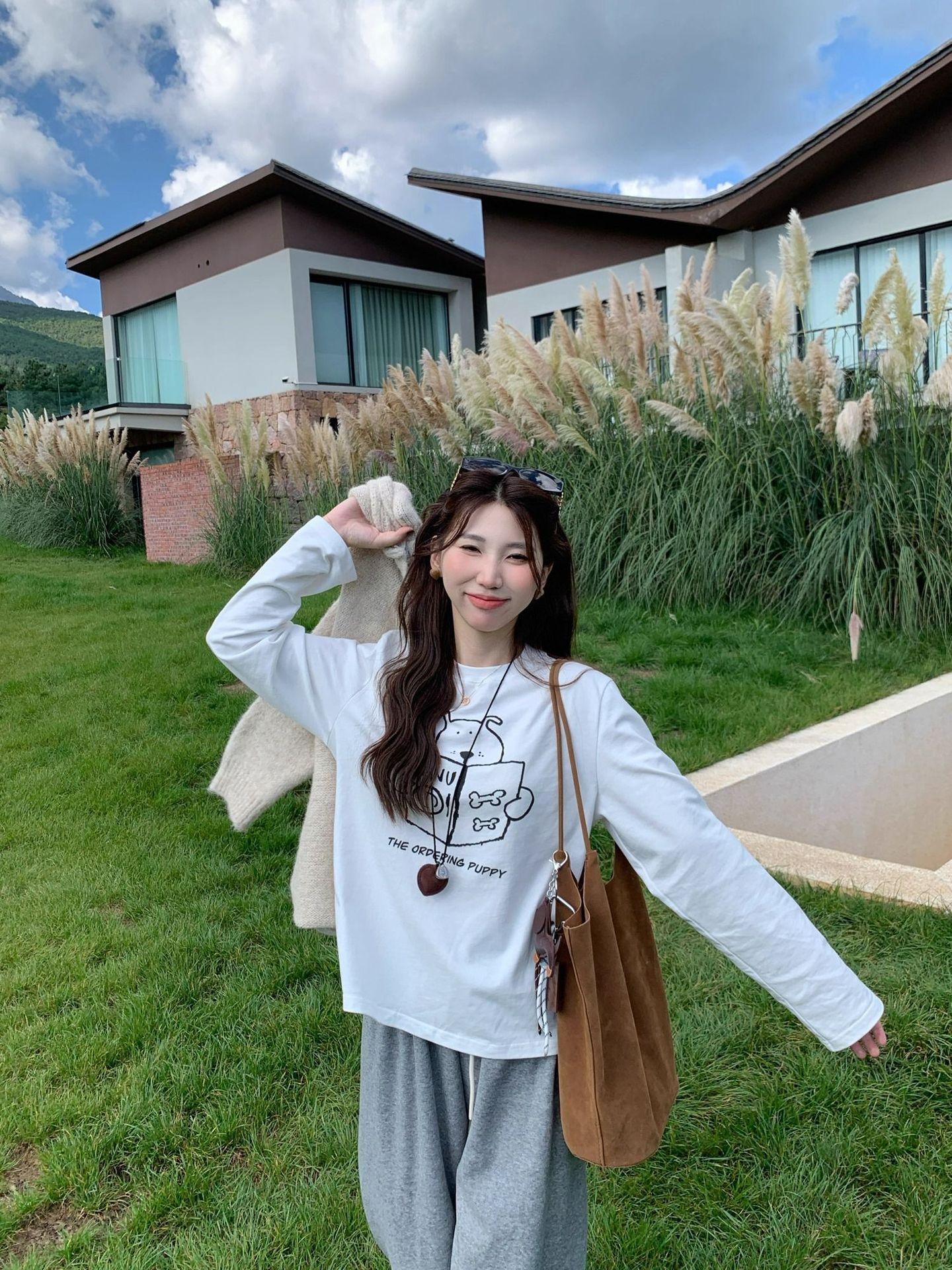 Nueva Camiseta de Primavera y Otoño para Perro con Estampado de Letras, Camiseta Base de Manga Larga, Diseño para Mujer, Estilo Nicho Chic con Sentido del Diseño, Top Coreano