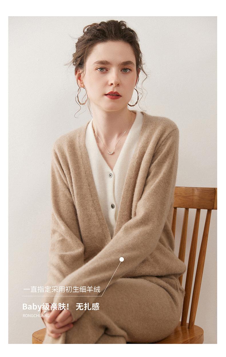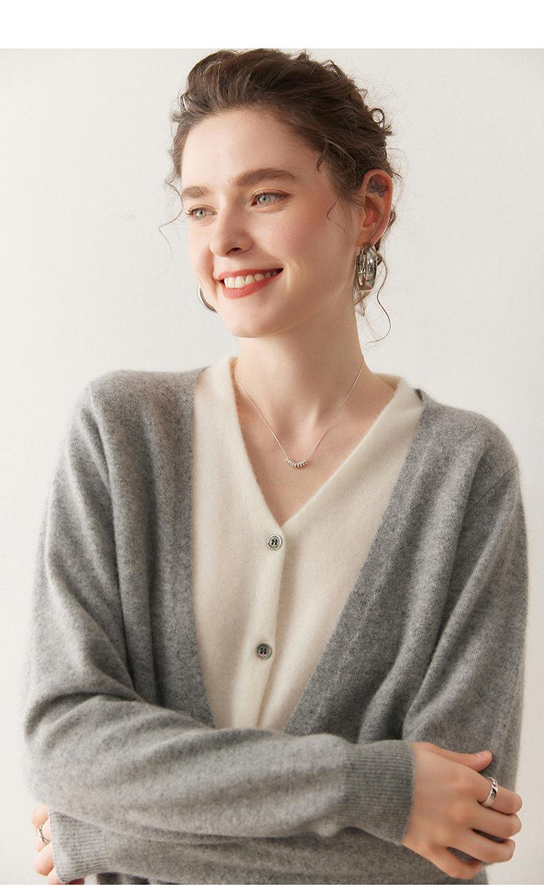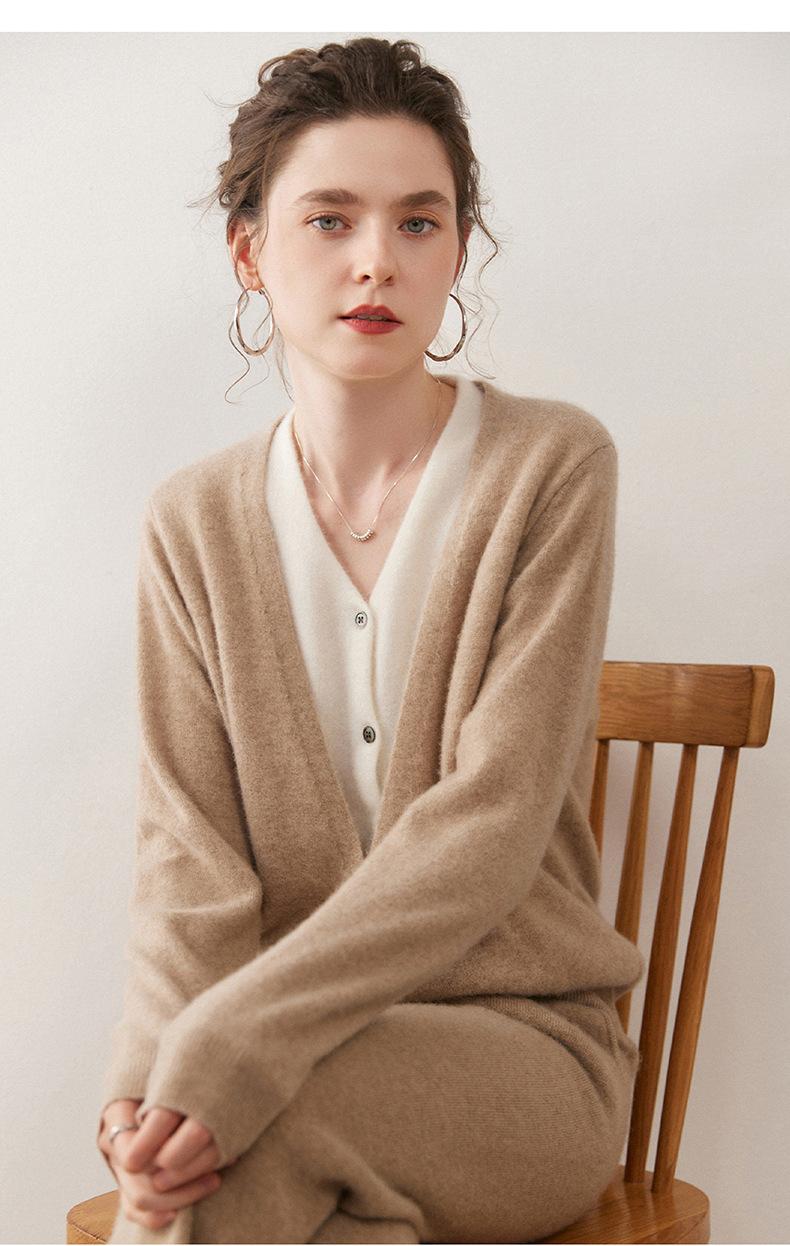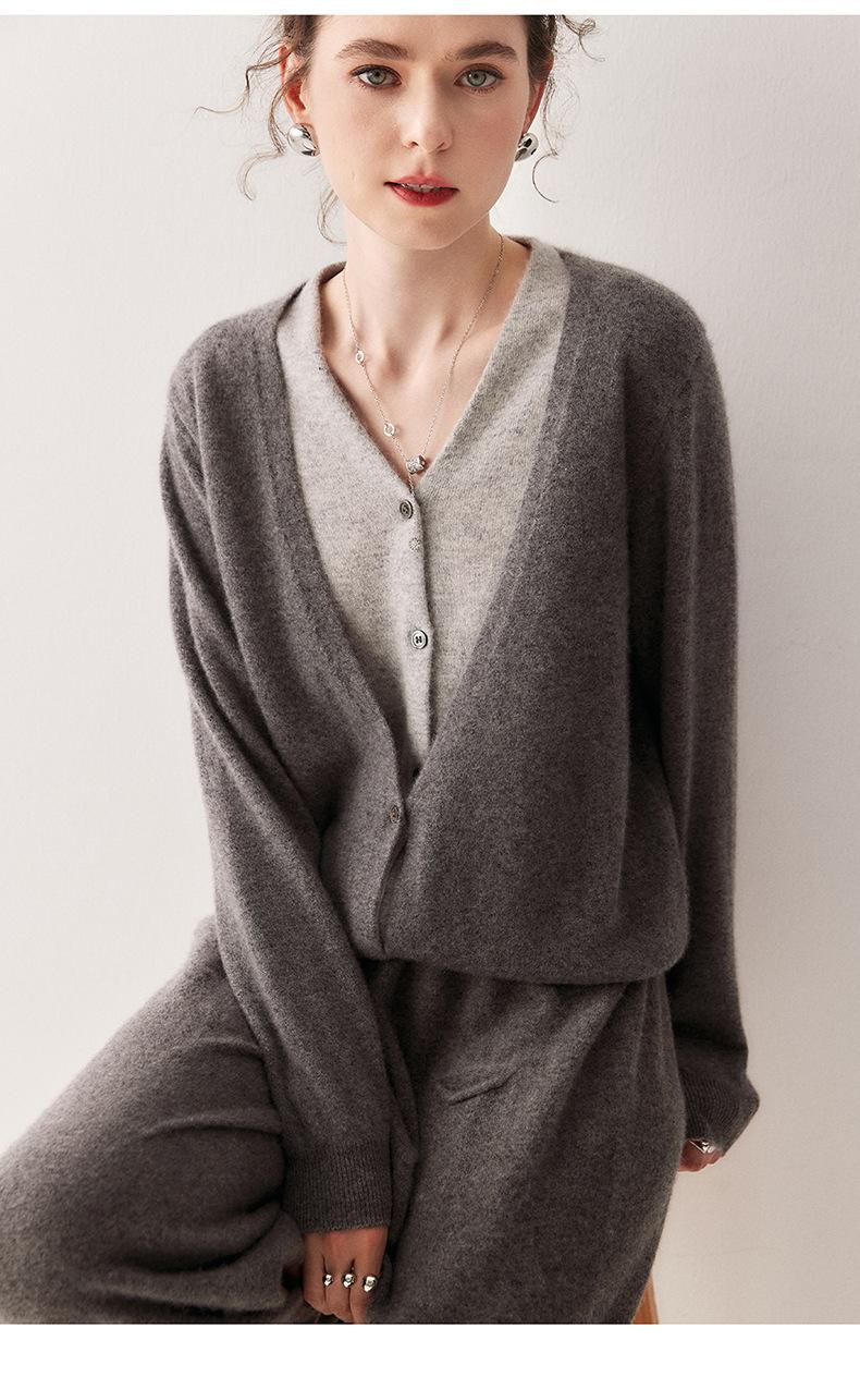 Cárdigan de Punto de Cachemira Suave y Ceroso para Otoño e Invierno para Mujer Falso de Dos Piezas Cuello en V Suéter de Cachemira Holgado