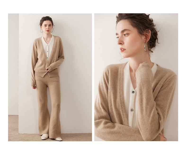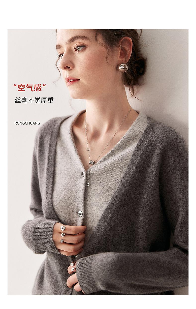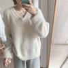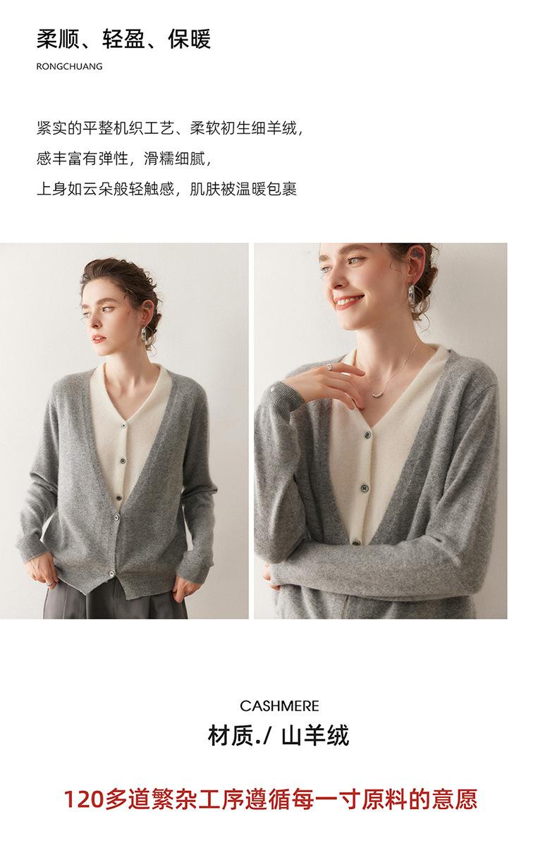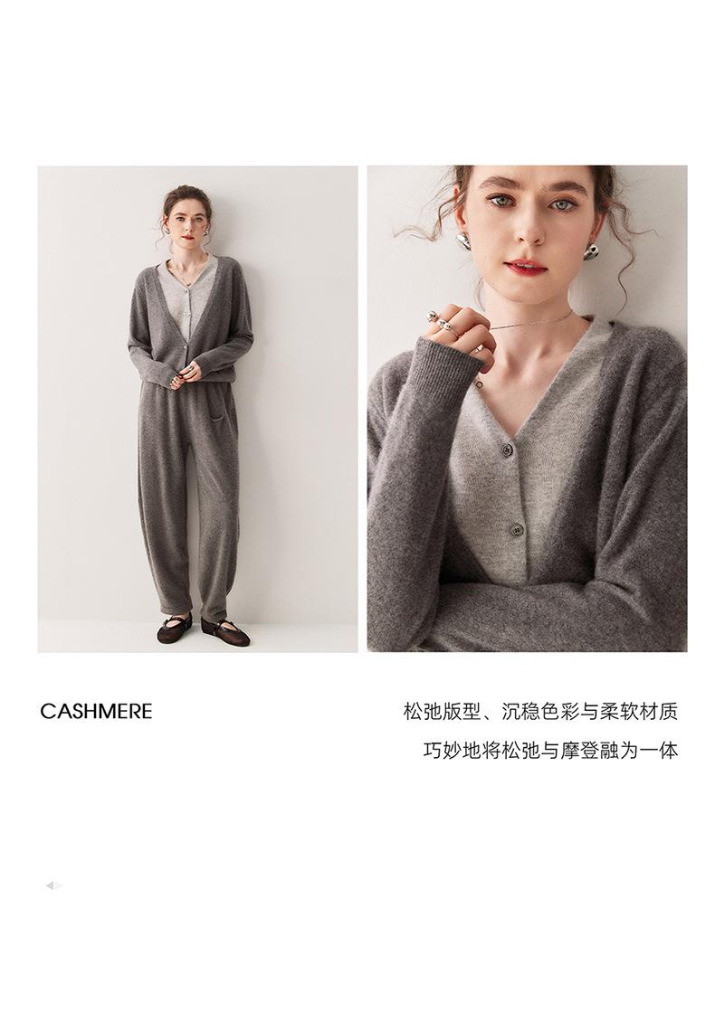 Cárdigan de Punto de Cachemira Suave y Ceroso para Otoño e Invierno para Mujer Falso de Dos Piezas Cuello en V Suéter de Cachemira Holgado