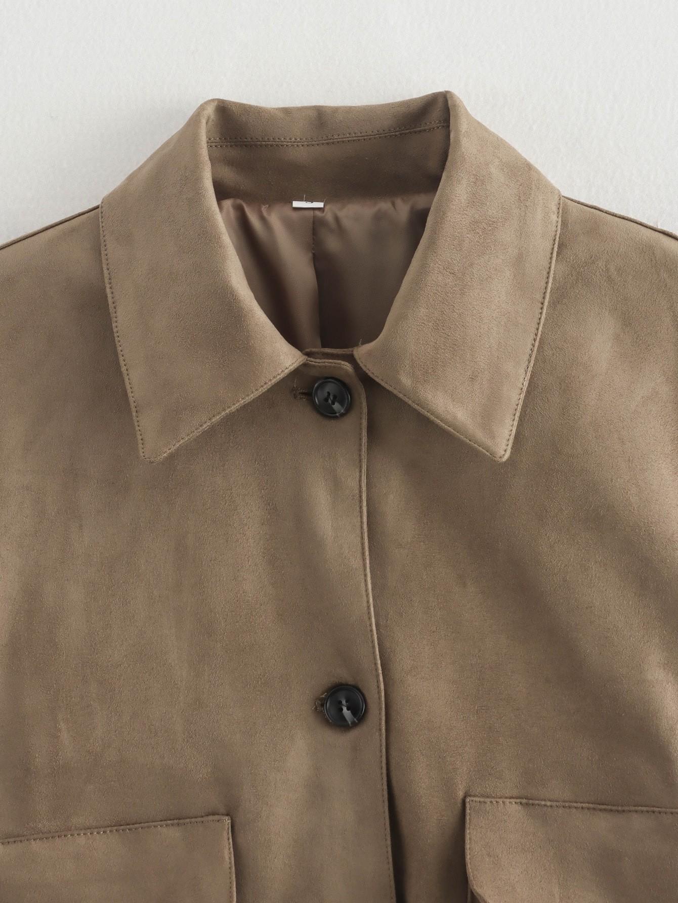 Chaqueta de Moda Popular Europea y Americana Amazon Aliexpress con Solapa y Manga Larga con Efecto Gamuza