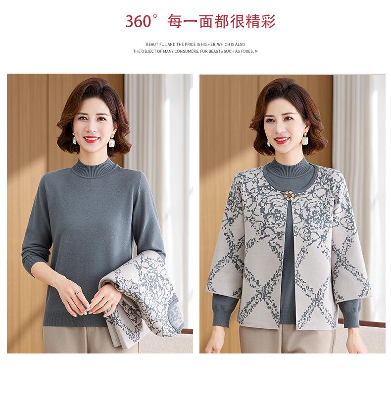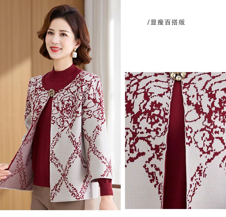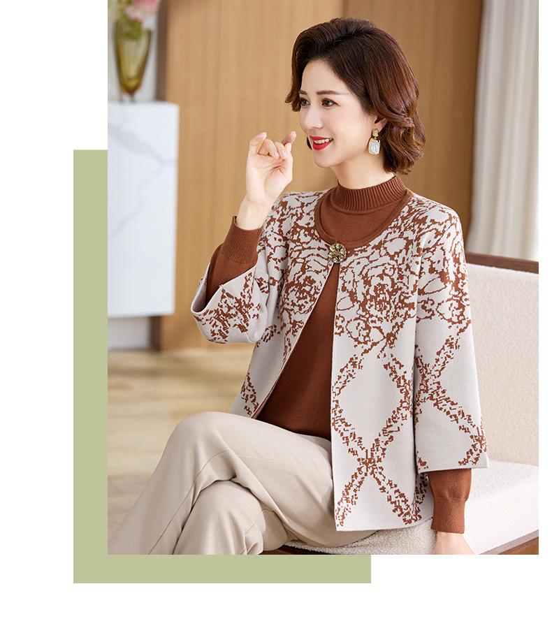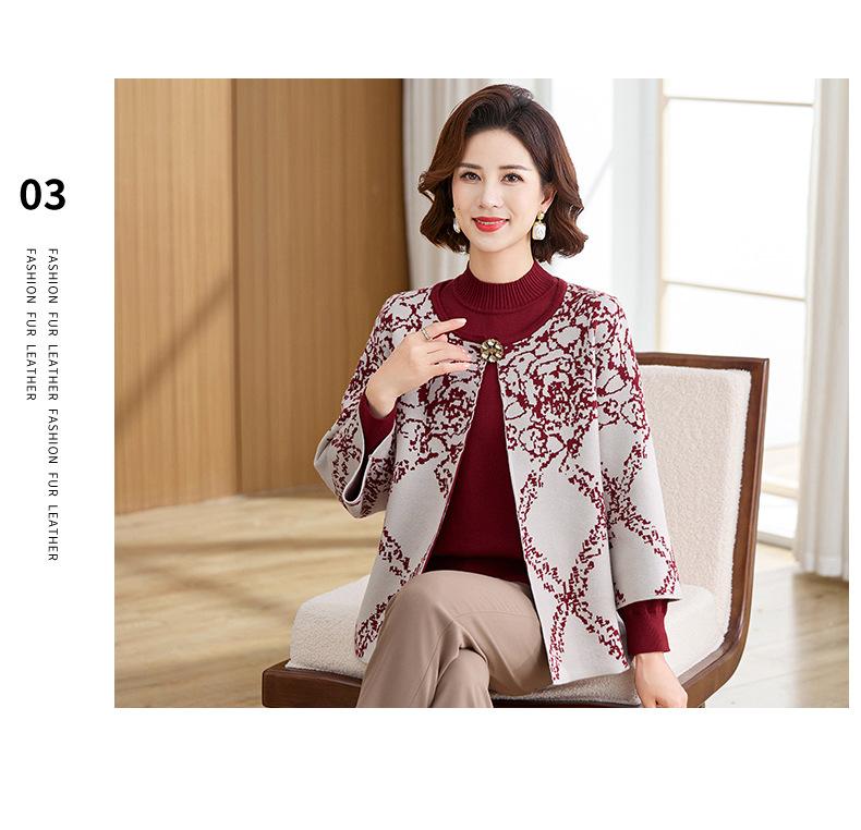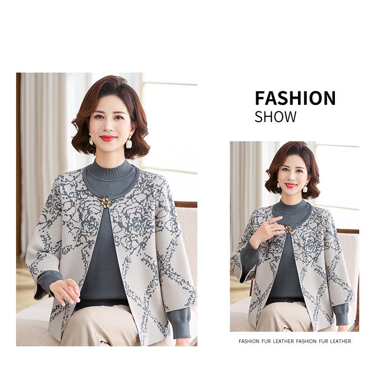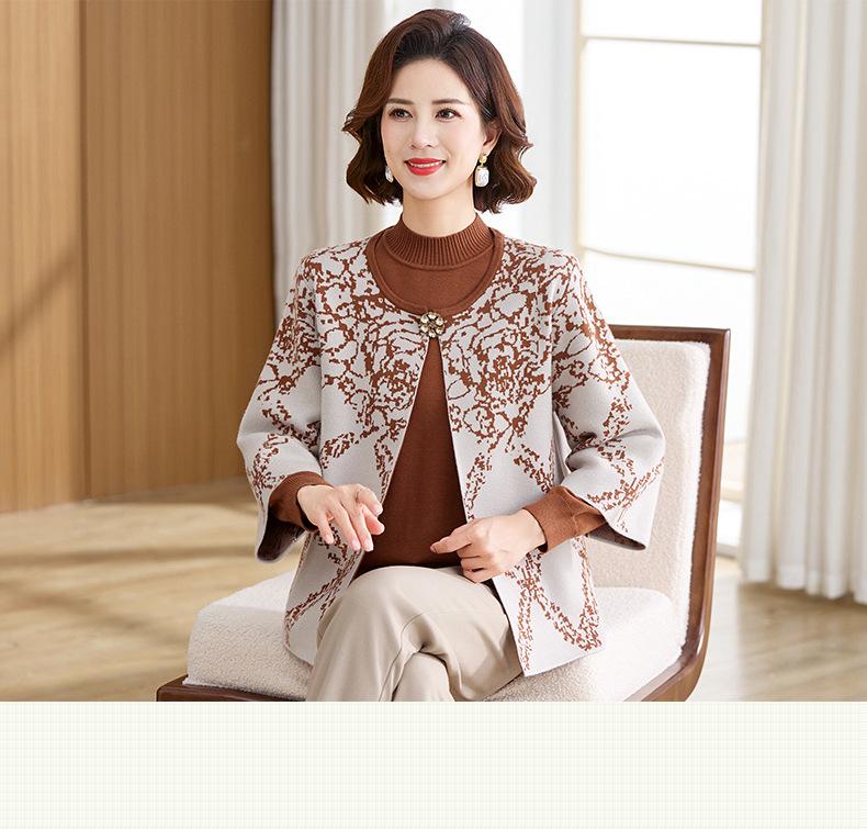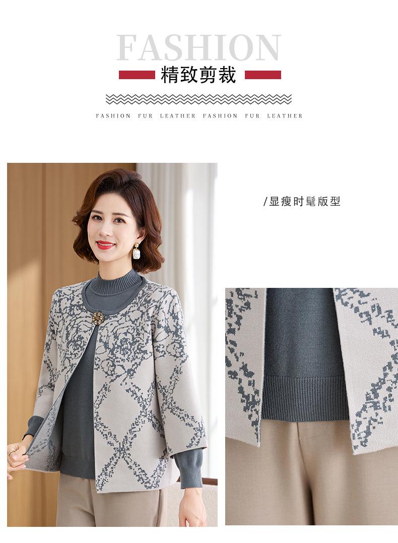 Ropa de Mamá Otoño e Invierno Nuevo Abrigo Cárdigan Tejido Suéter para Mediana Edad y Ancianos Conjunto de Dos Piezas Moderno Abrigo Moderno
