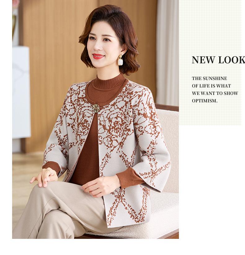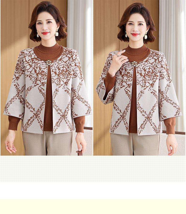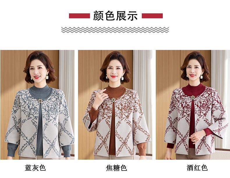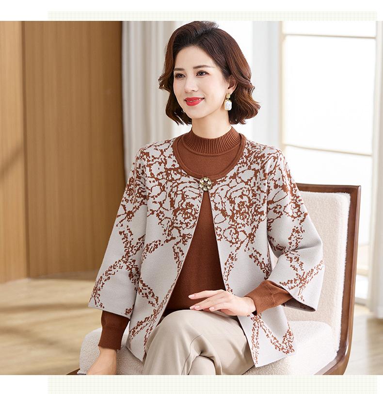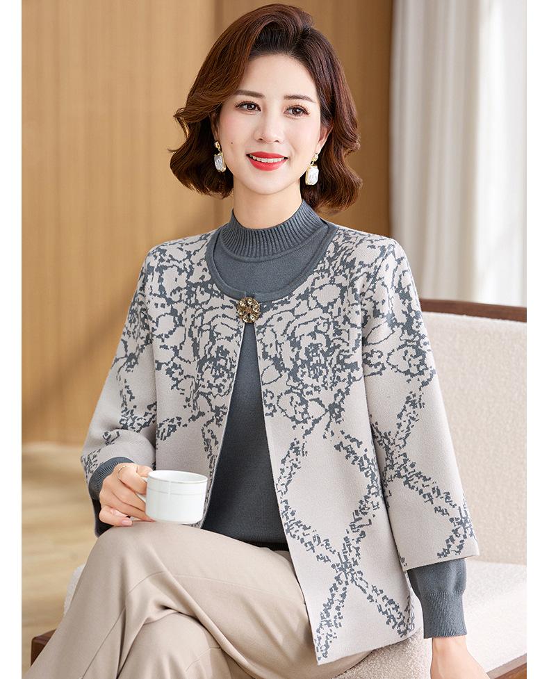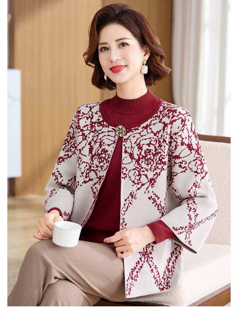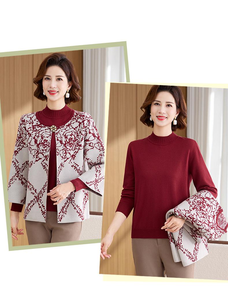 Ropa de Mamá Otoño e Invierno Nuevo Abrigo Cárdigan Tejido Suéter para Mediana Edad y Ancianos Conjunto de Dos Piezas Moderno Abrigo Moderno