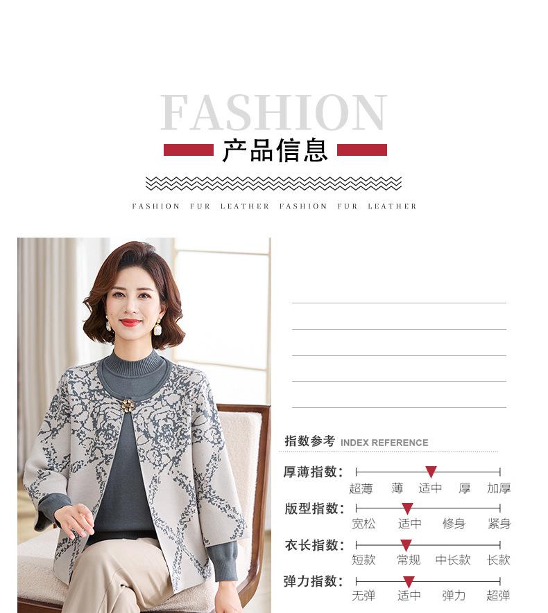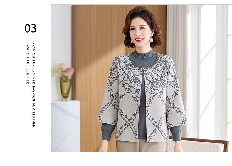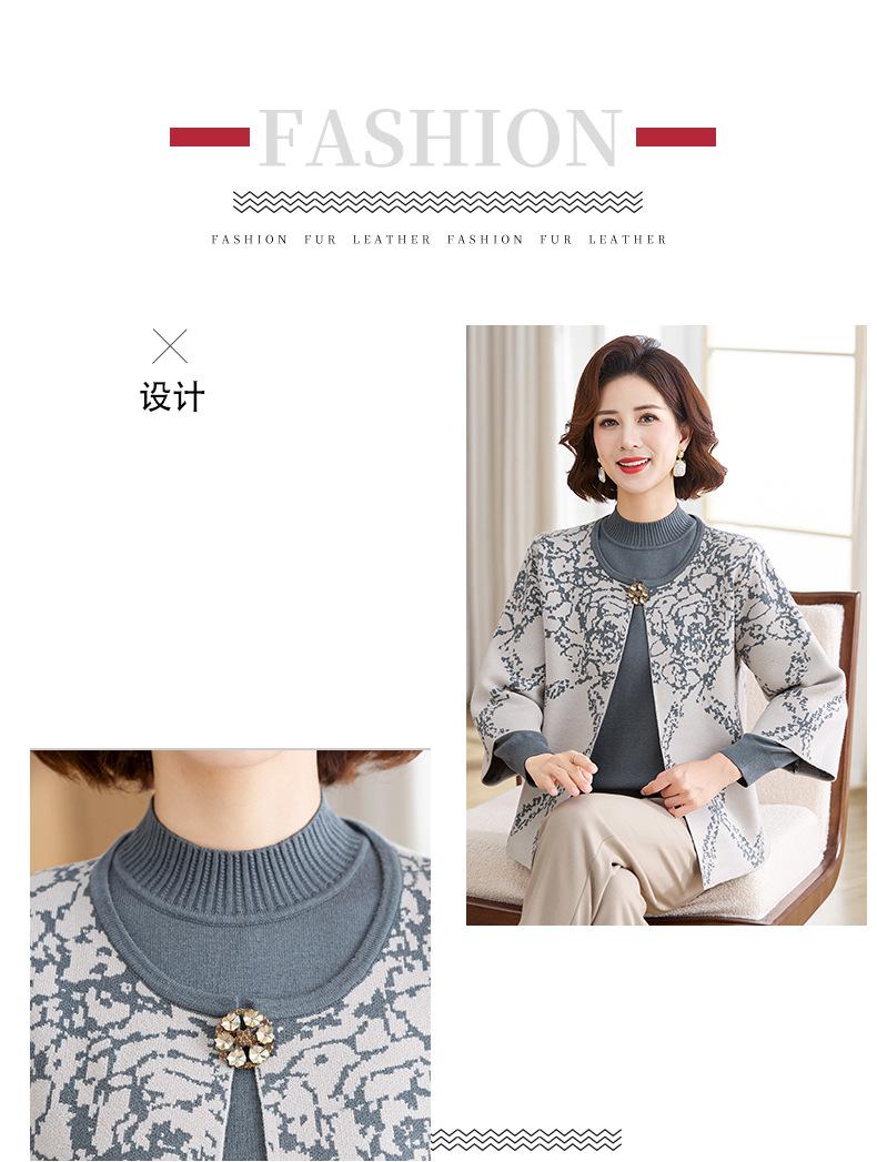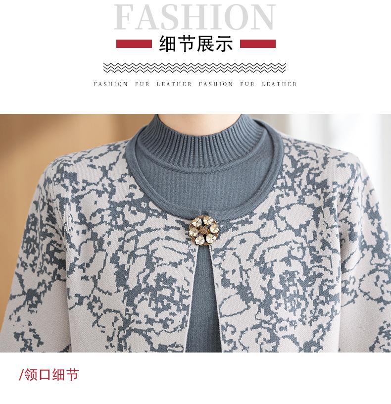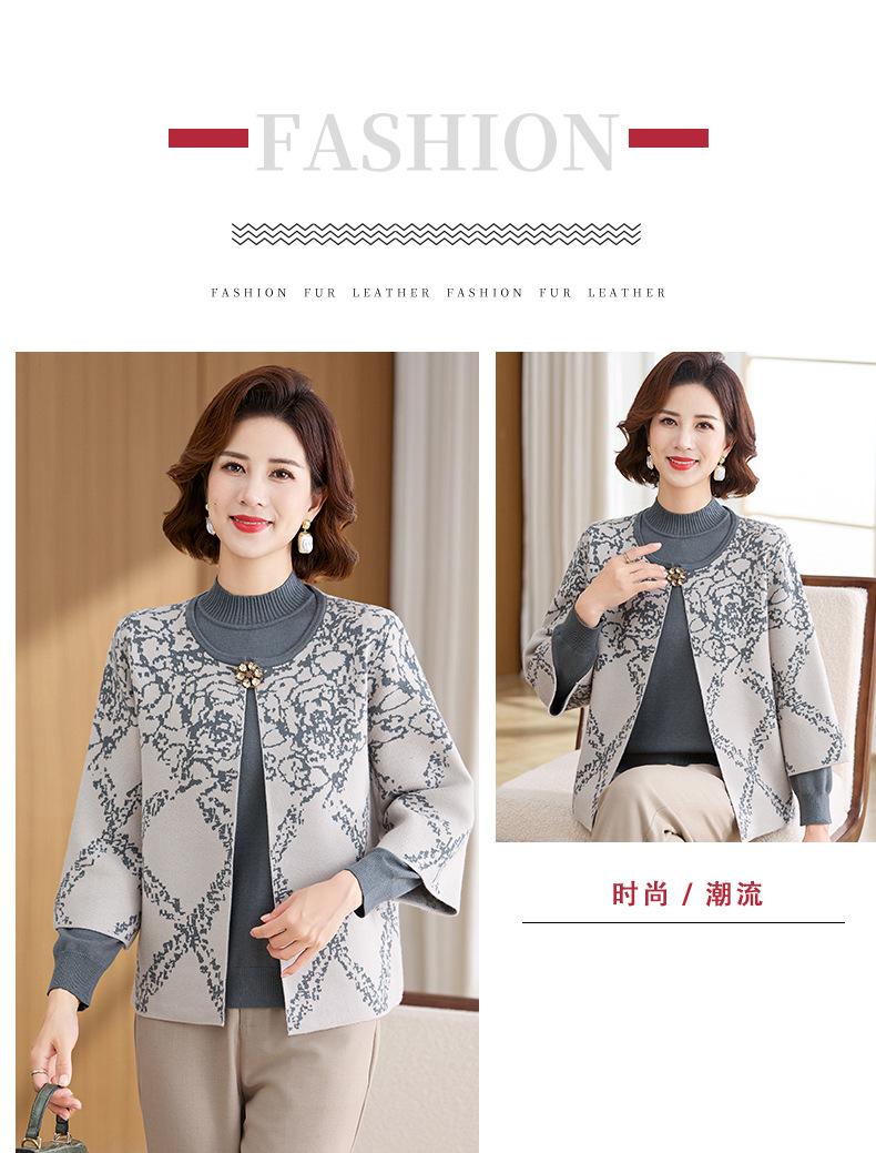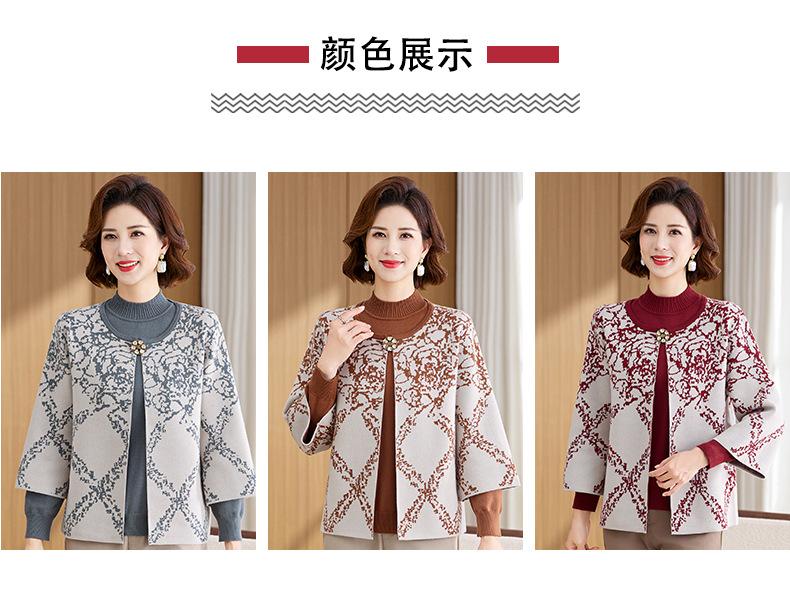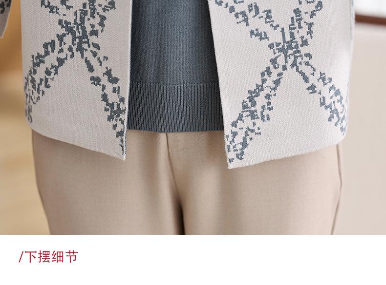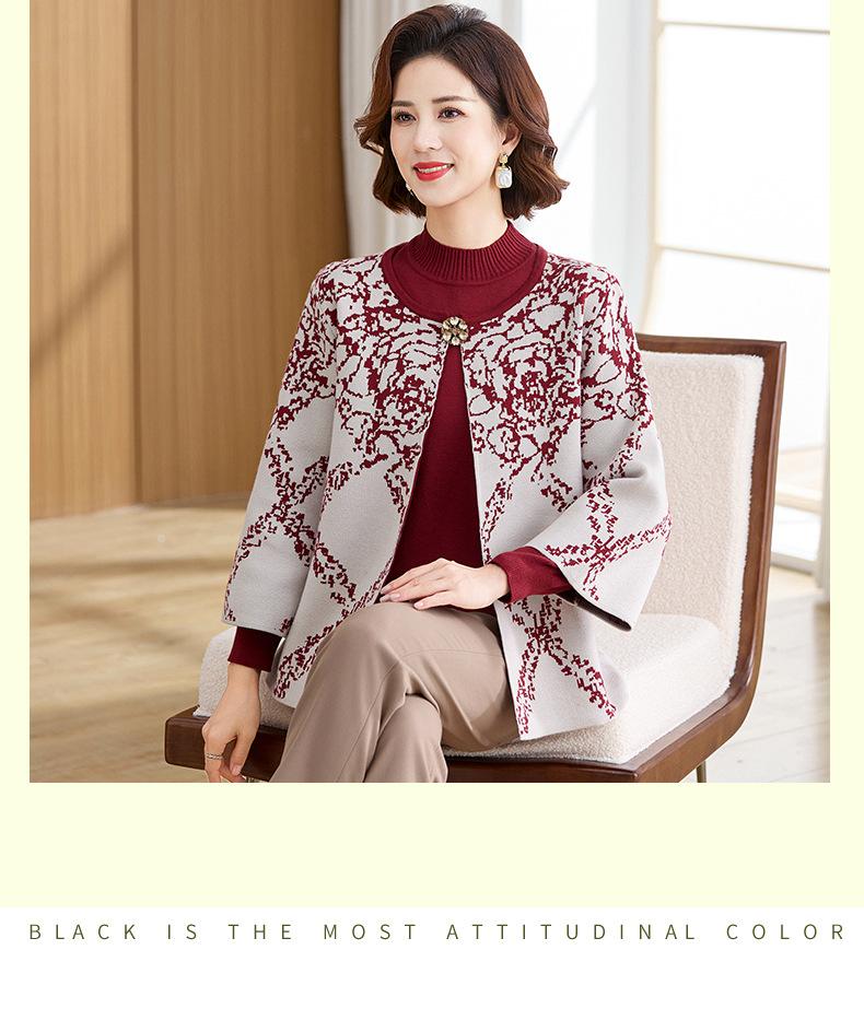 Ropa de Mamá Otoño e Invierno Nuevo Abrigo Cárdigan Tejido Suéter para Mediana Edad y Ancianos Conjunto de Dos Piezas Moderno Abrigo Moderno