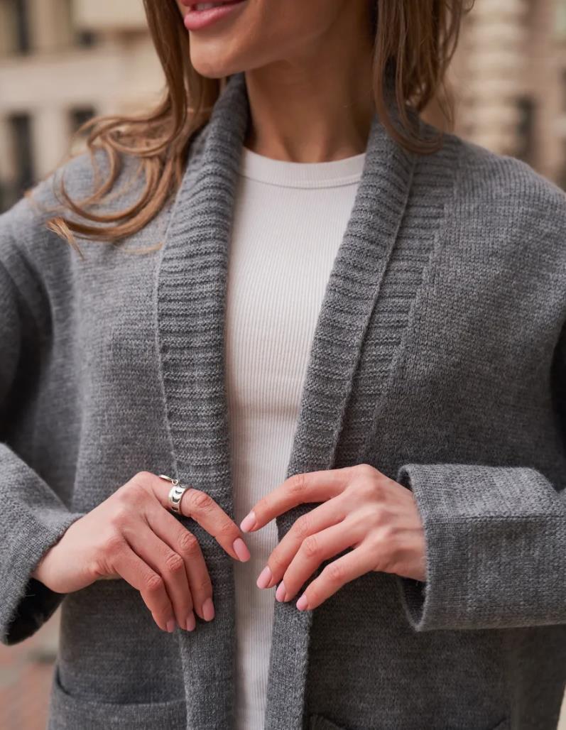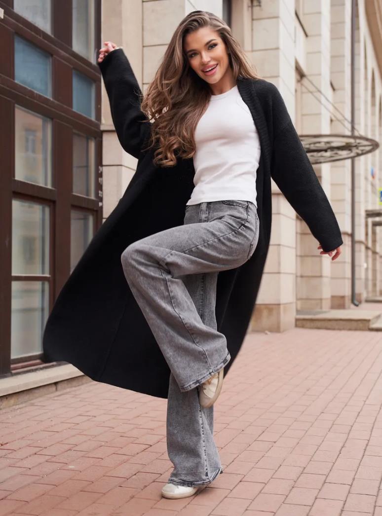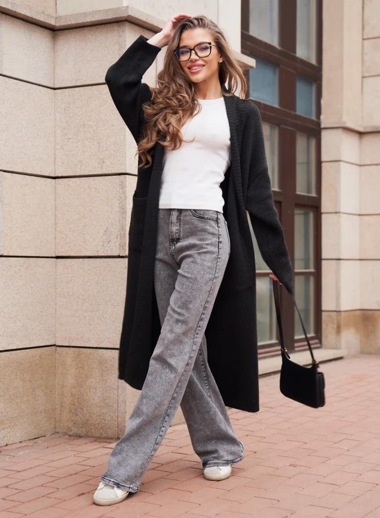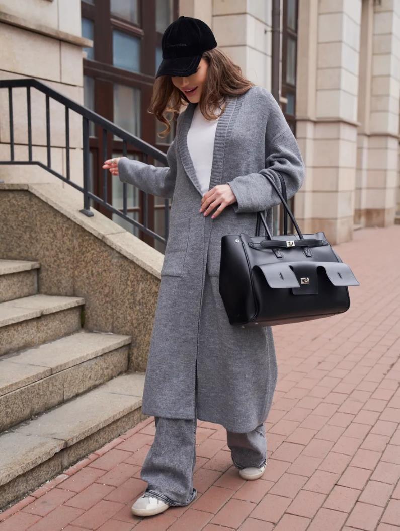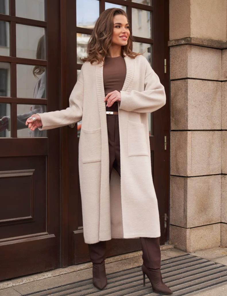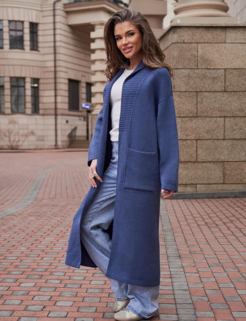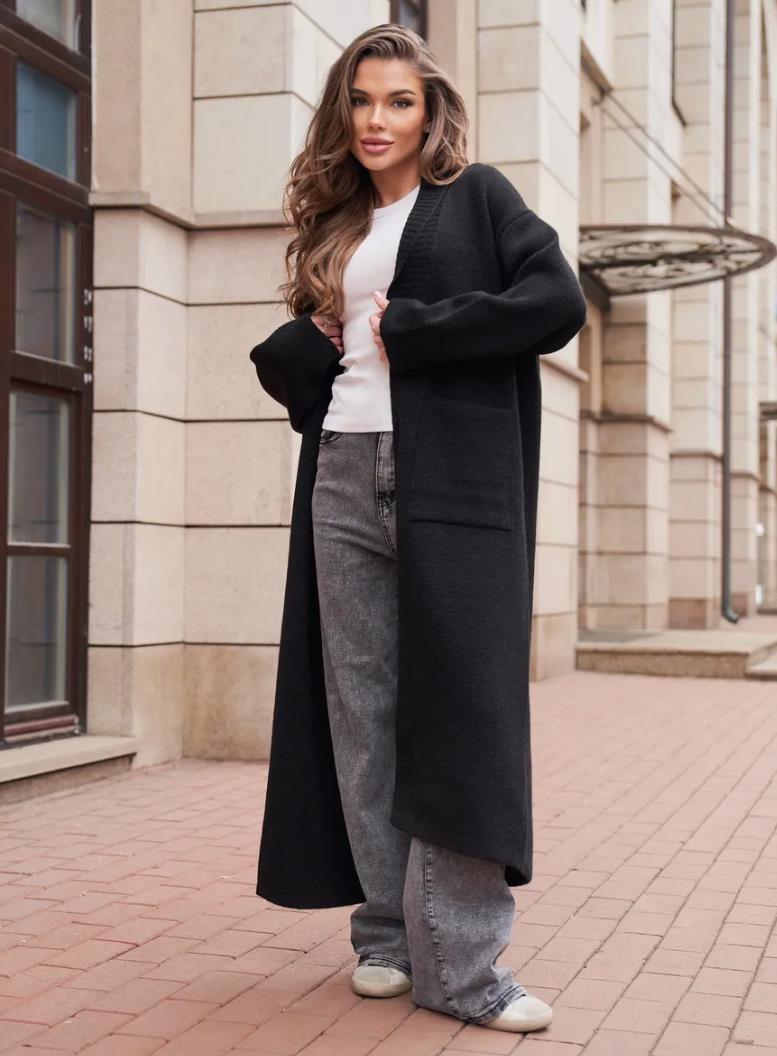 Cárdigan de Punto Nuevo de Otoño e Invierno para Mujer Estilo Europeo y Americano Relajado Largo Hasta la Rodilla Suelto Versátil Transfronterizo Cárdigan de Punto para Mujer