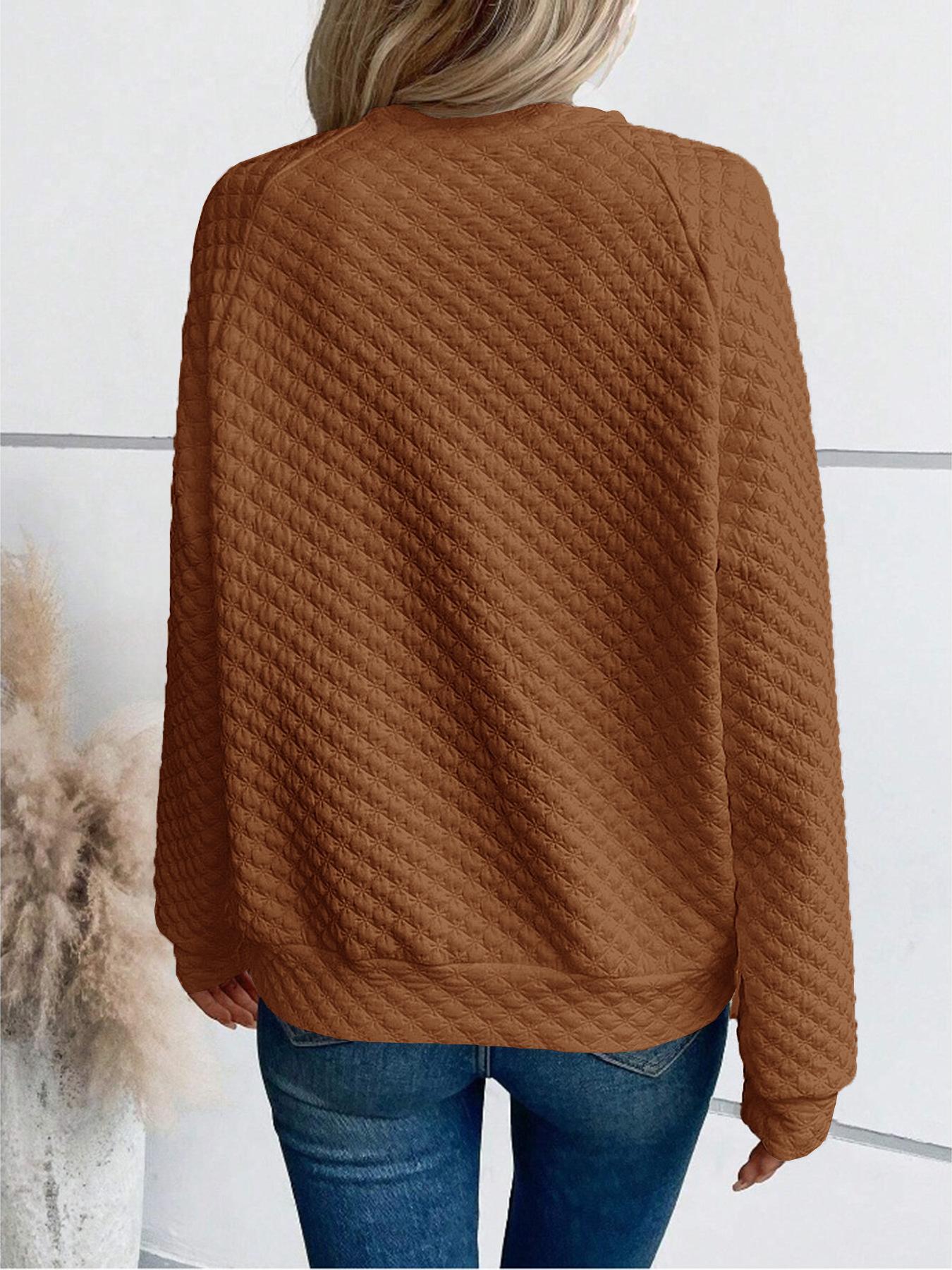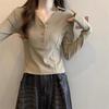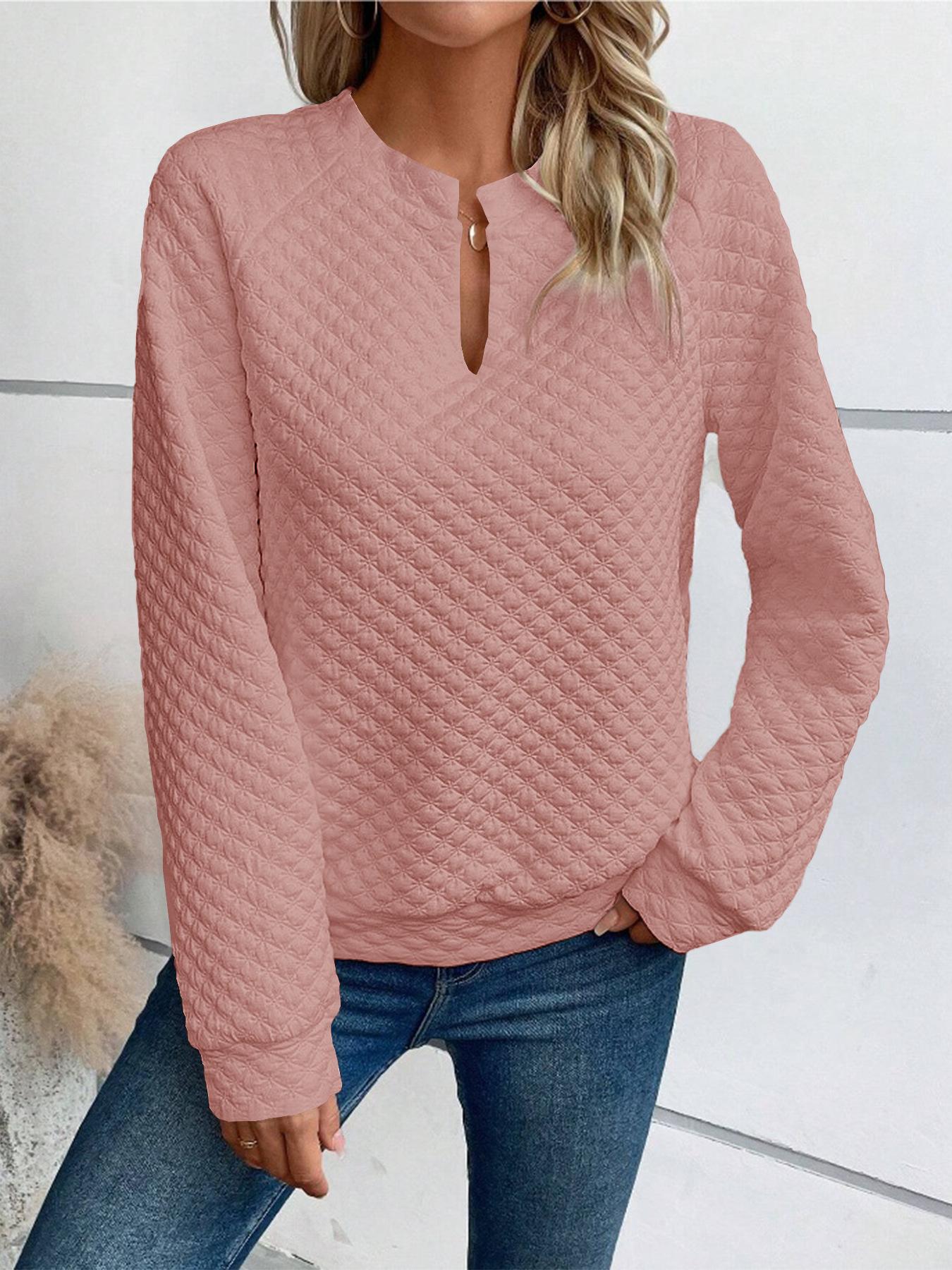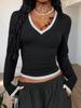 Otoño/Invierno 2025 Nuevo Sudadera Casual de Manga Larga con Parche de Color Sólido y Cuello en V Profundo para Mujer