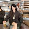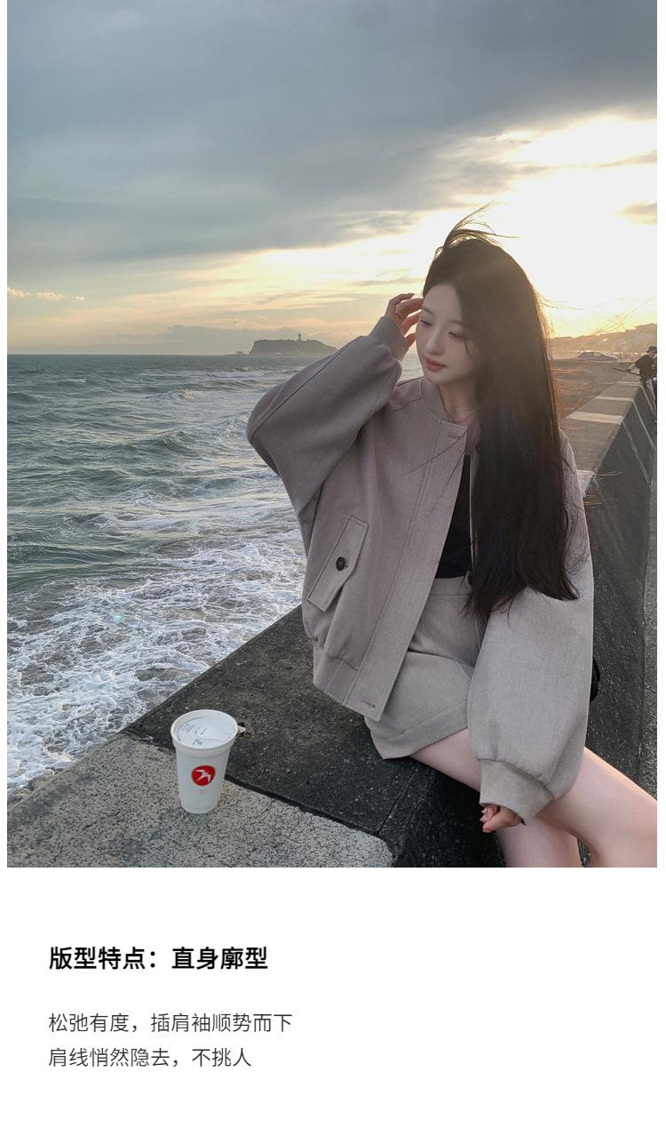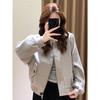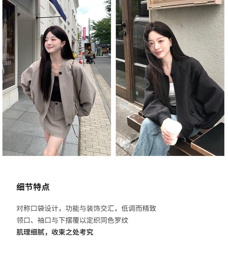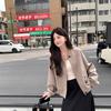 Chaqueta de Punto Twill con Cuello Acanalado Raglán Manga Larga para Mujer Otoño Silueta Casual Sencilla Versátil Corta Exterior Top Mujer
