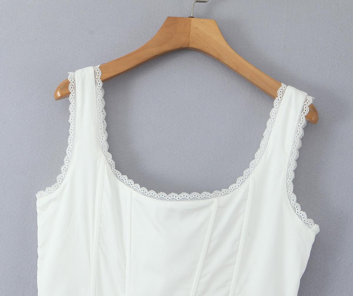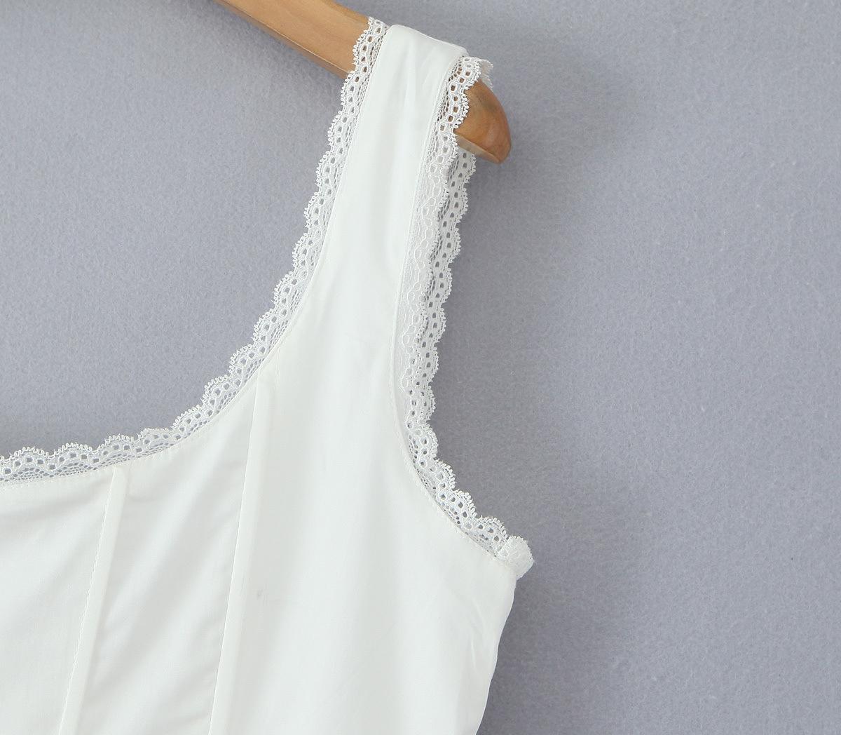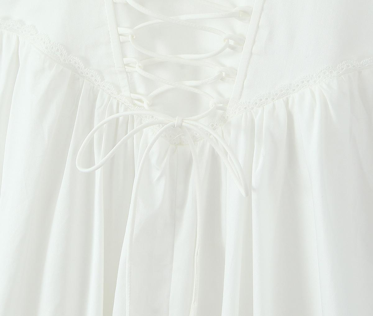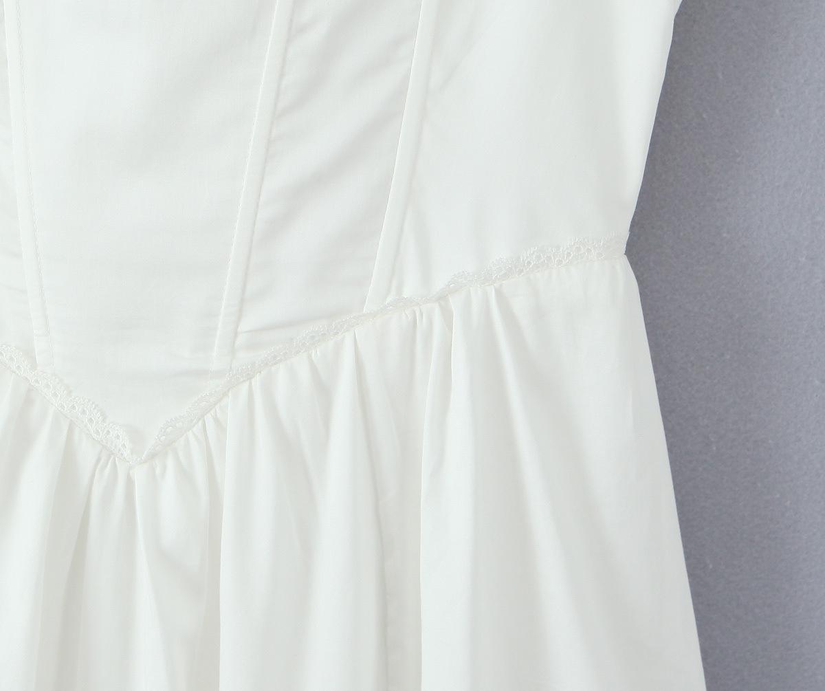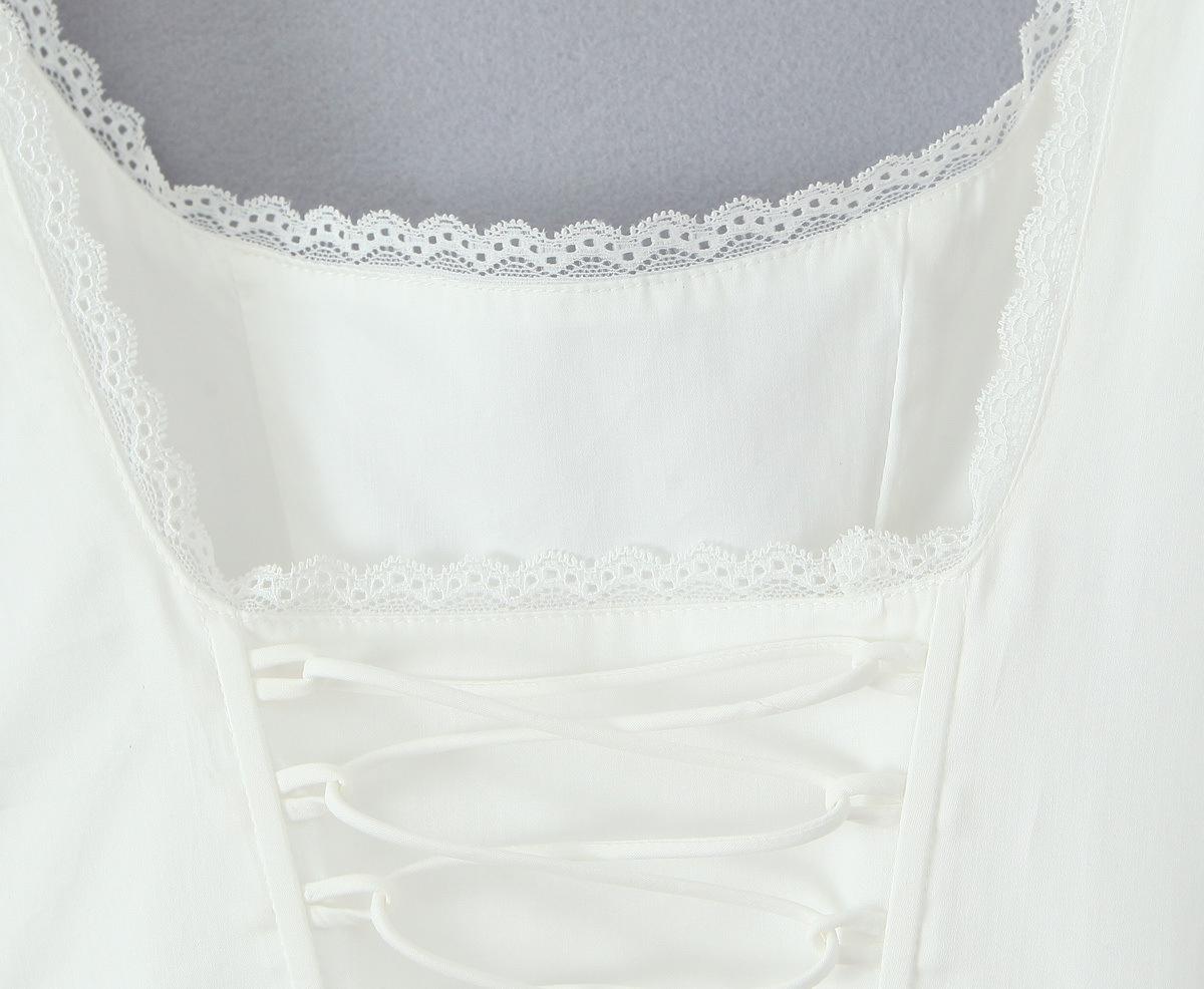 Vestido de Verano para Vacaciones con Cuello de Encaje Romántico Francés para Niña, Tirantes Cruzados en la Espalda, Cintura Adelgazante
