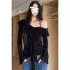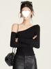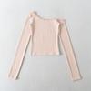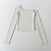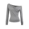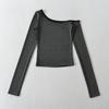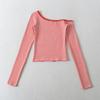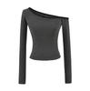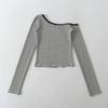 Y2035-25 Verano Nuevo Estilo Chica Caliente Europea y Americana Sexy Rayado Un Hombro Descubierto Manga Larga Casual Camiseta Básica