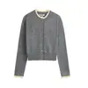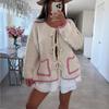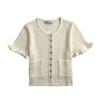 Z estilo transfronterizo europeo y americano 2025 nueva moda temperamento color sólido cárdigan patchwork encaje camisa corta 8086730