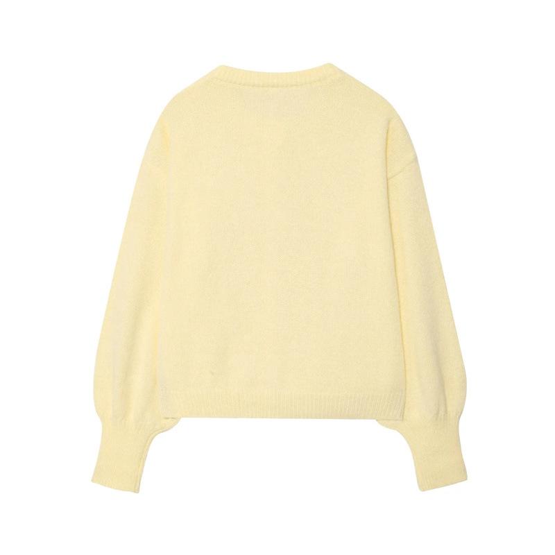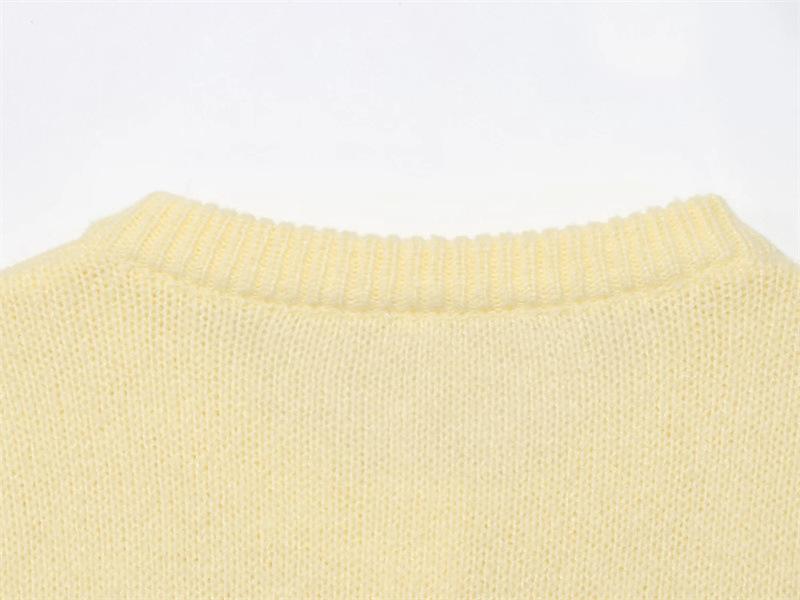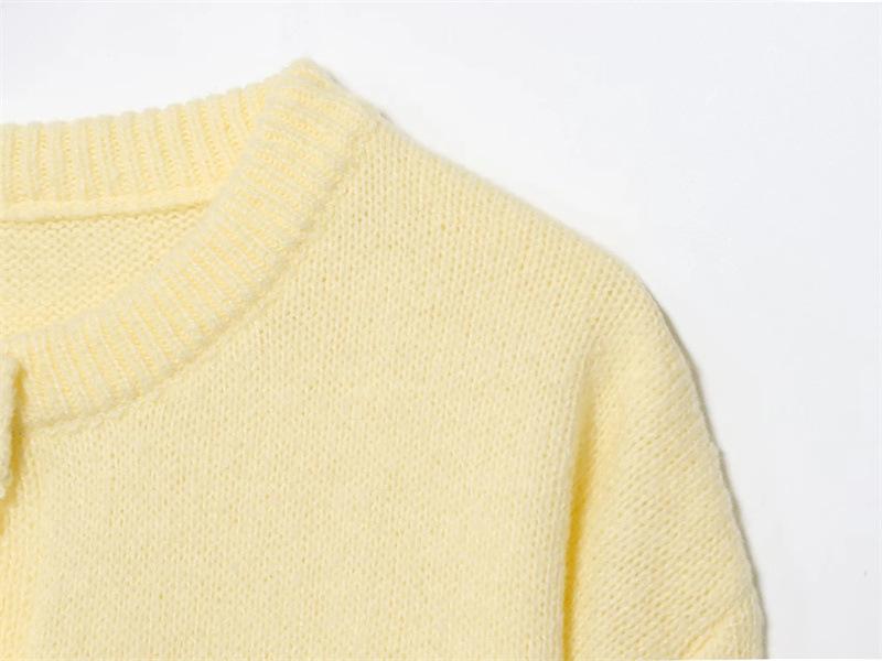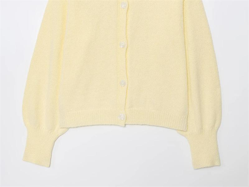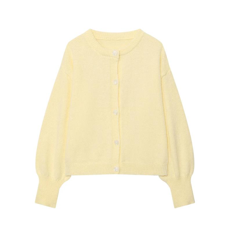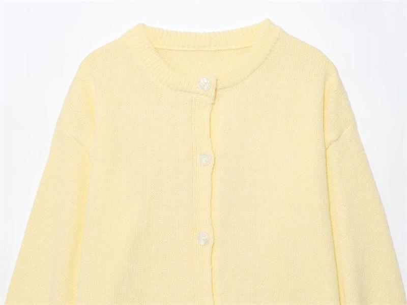 Cárdigan de punto de manga larga con cuello redondo de color sólido simple abotonado para otoño nuevo dulce que reduce la edad suéter suelto abrigo mujer