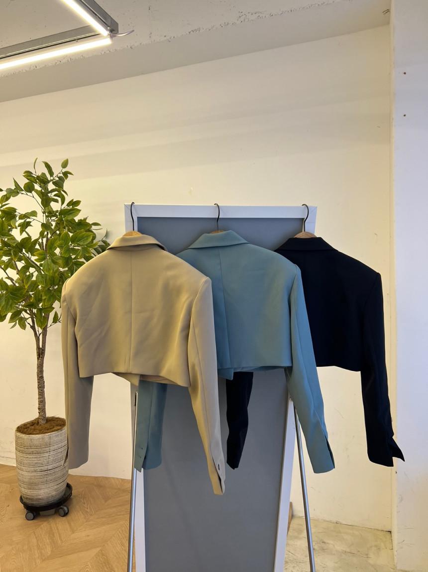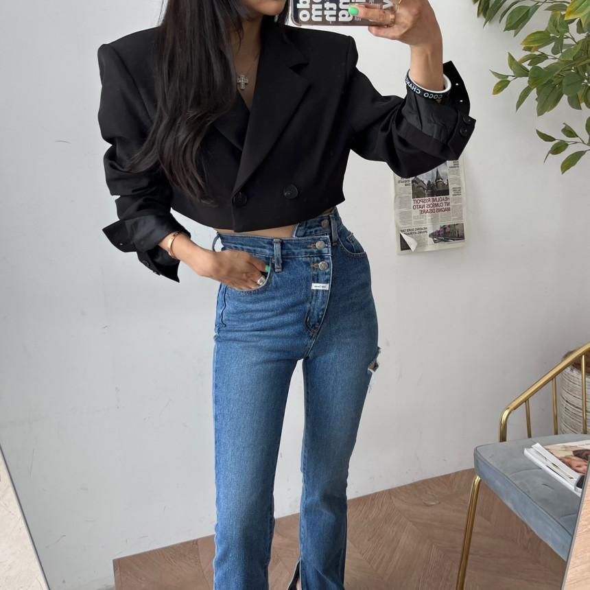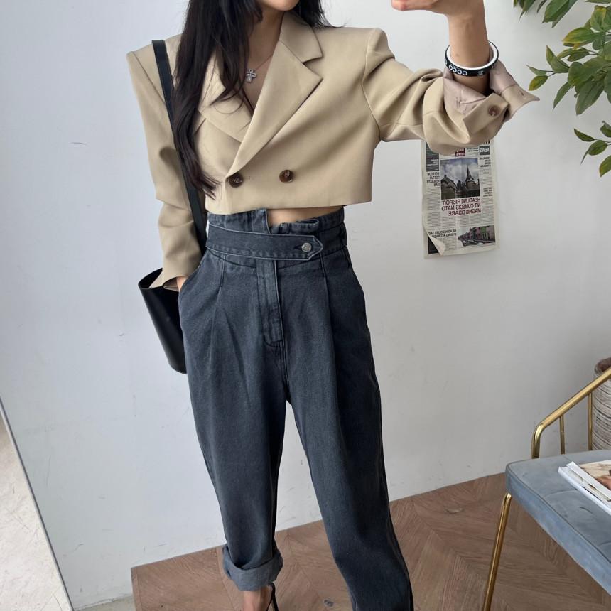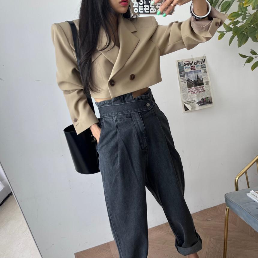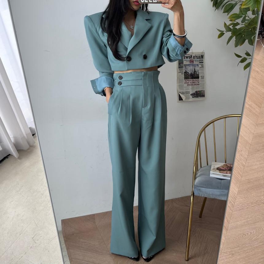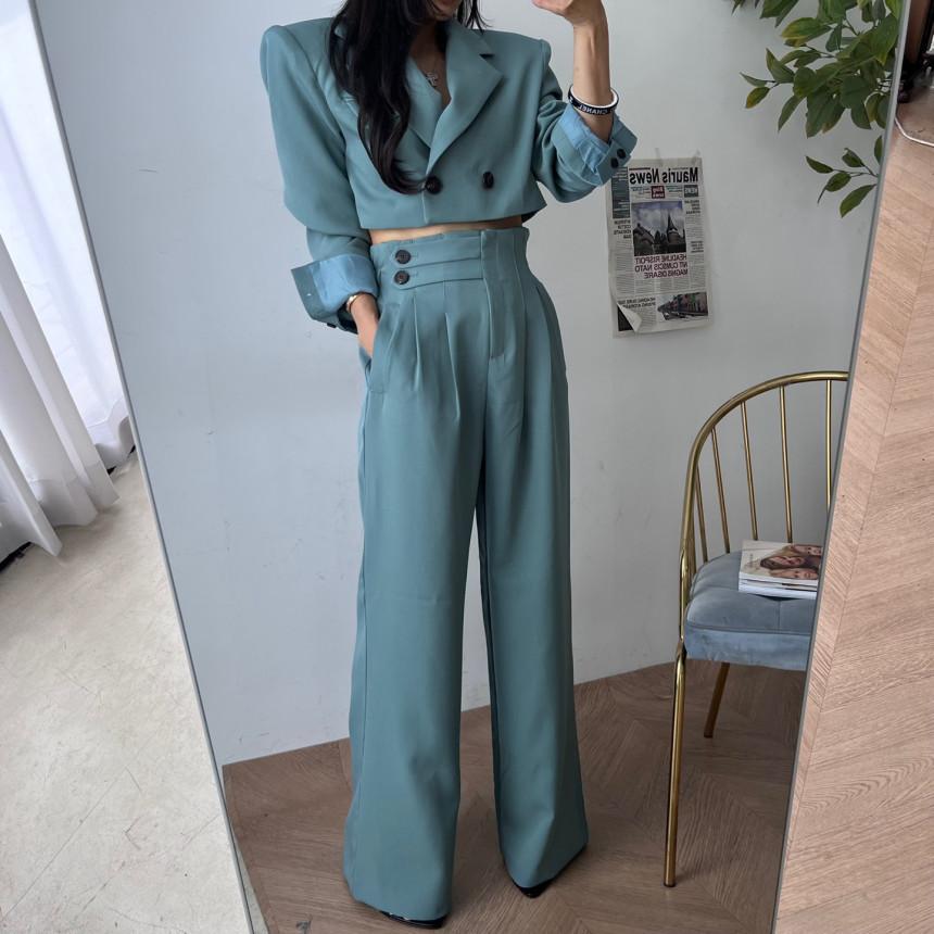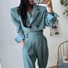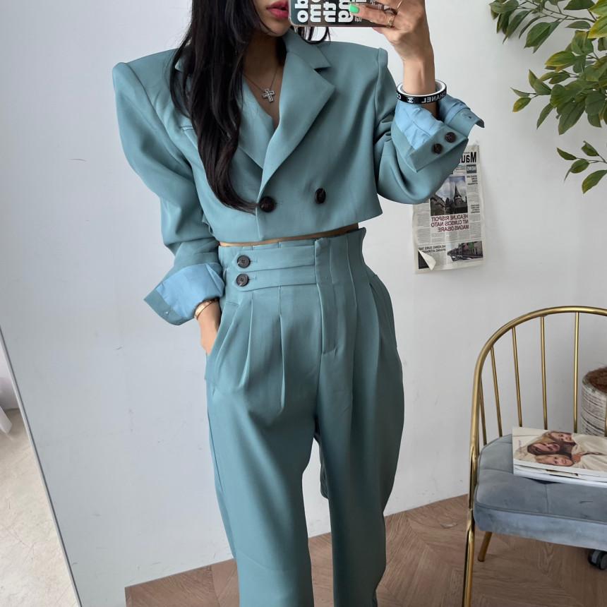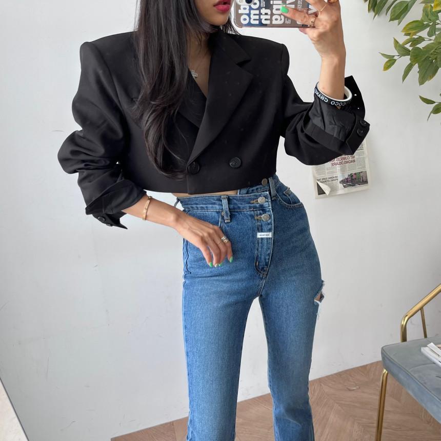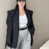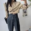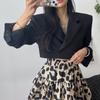 En stock Chaqueta de traje pequeña de manga corta y larga con dos botones para mujer