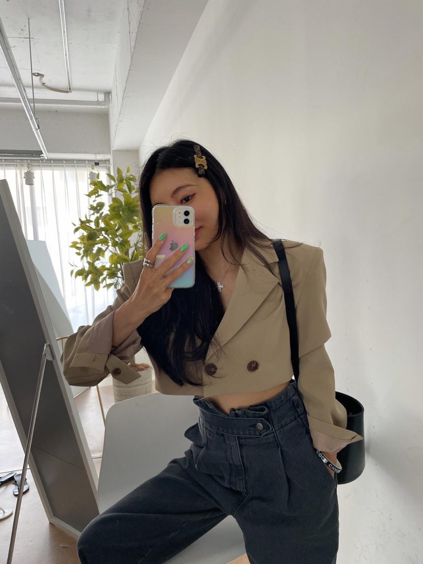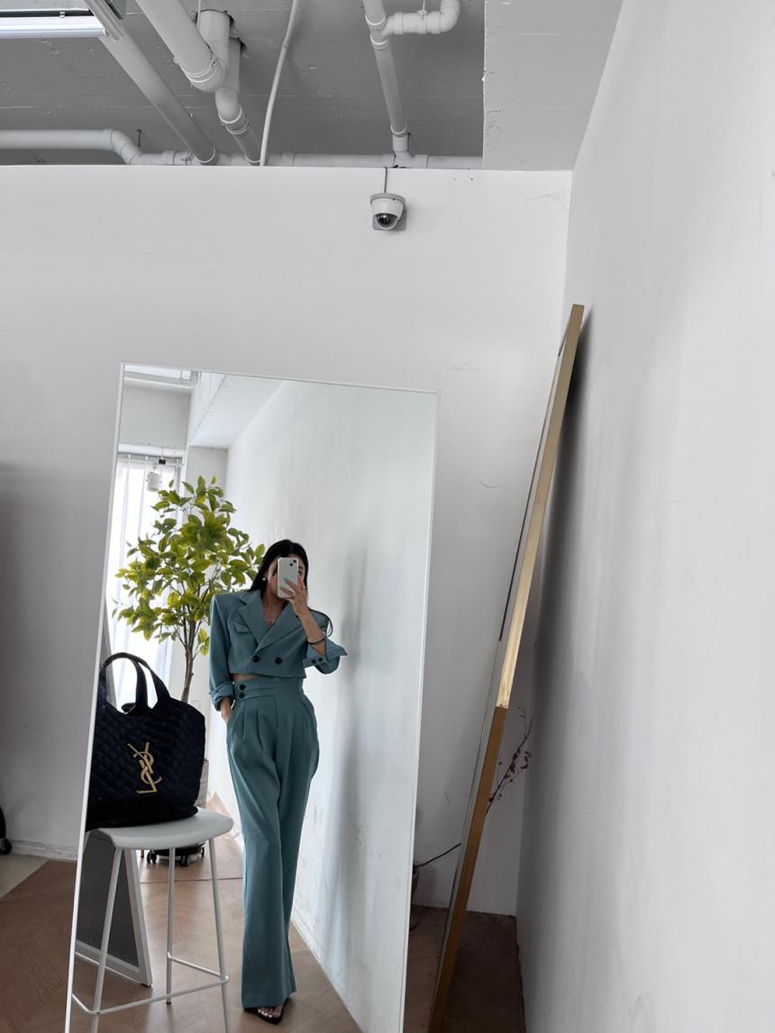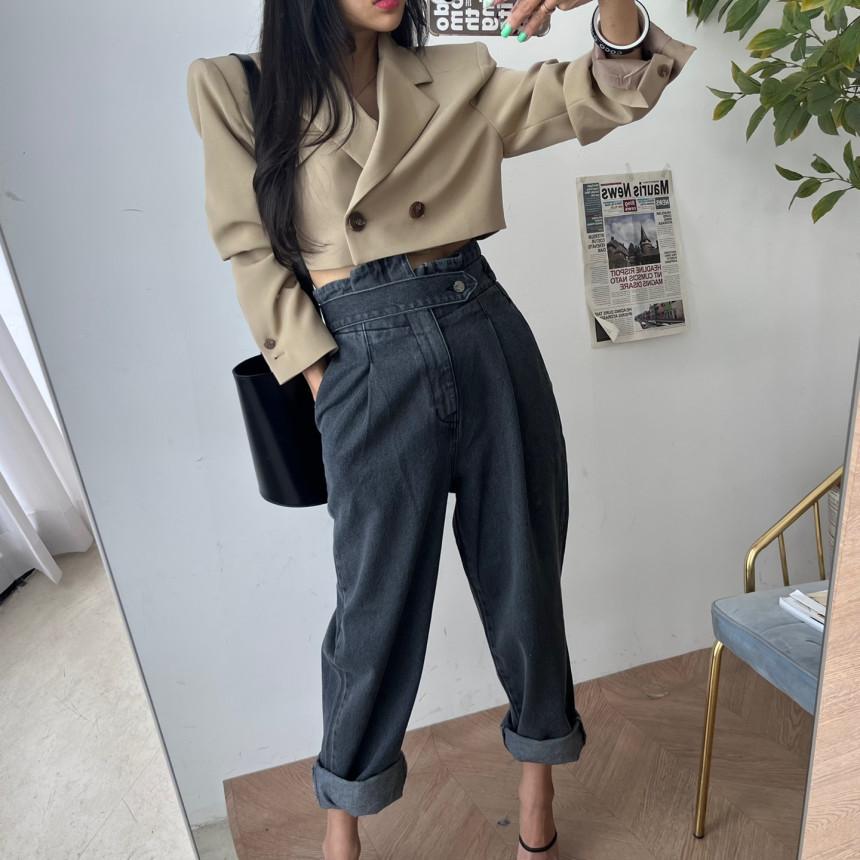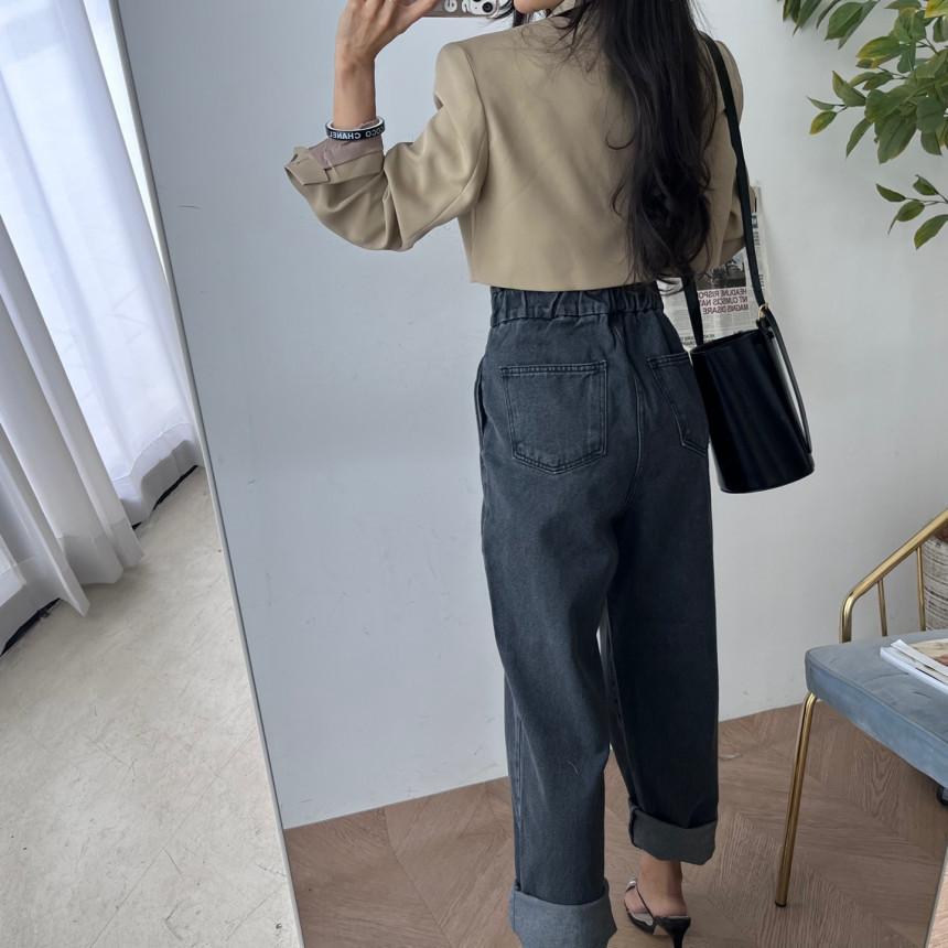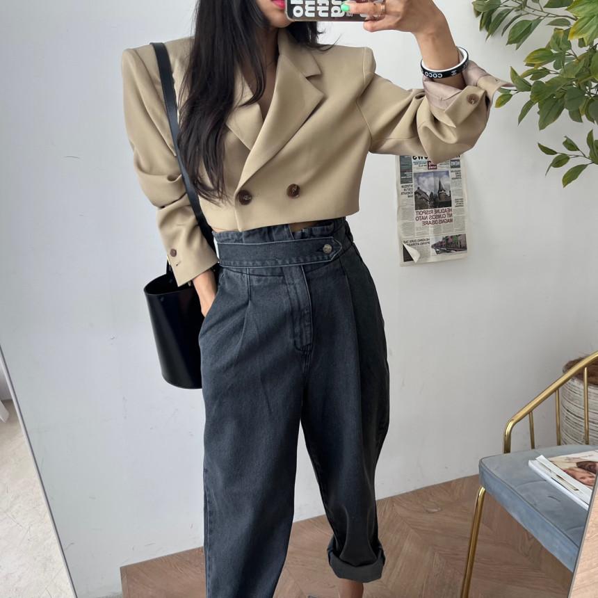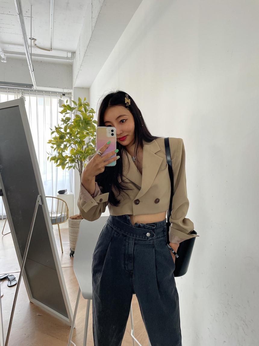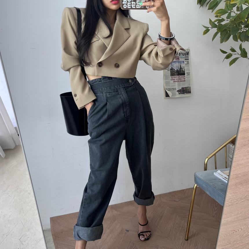 En stock Chaqueta de traje pequeña de manga corta y larga con dos botones para mujer