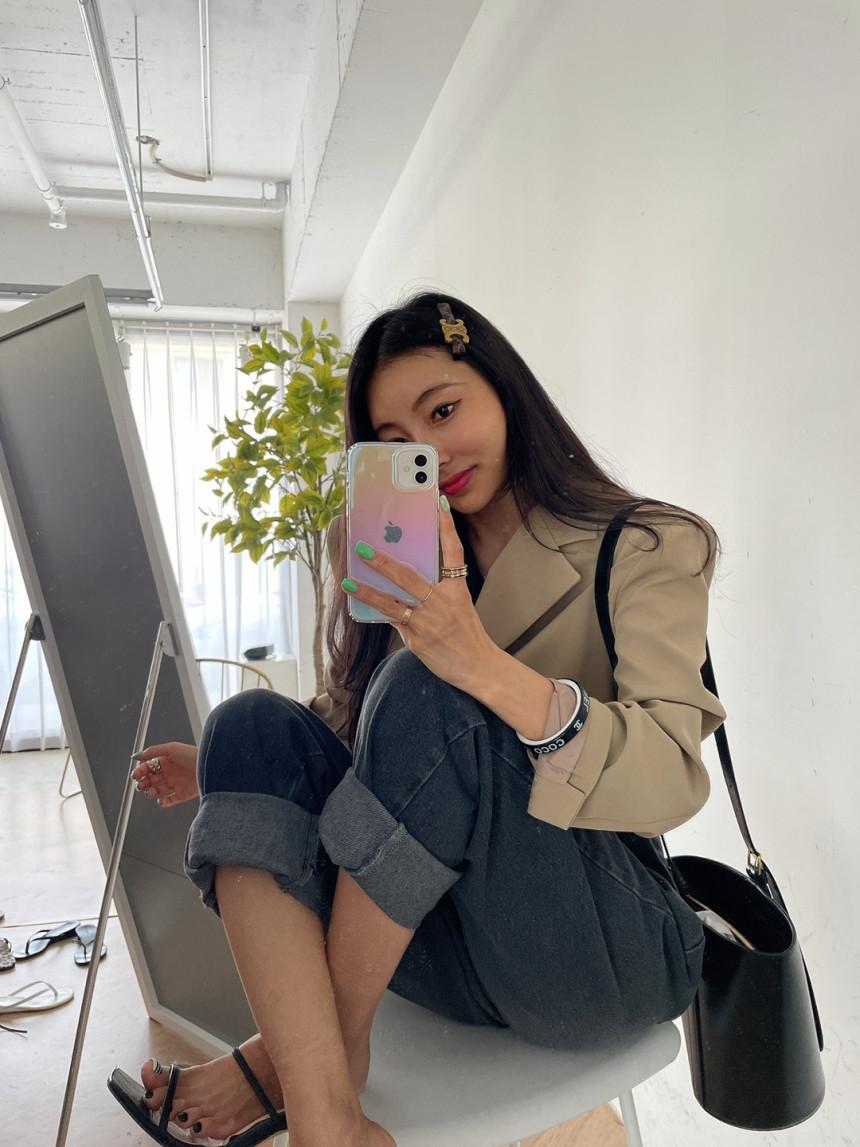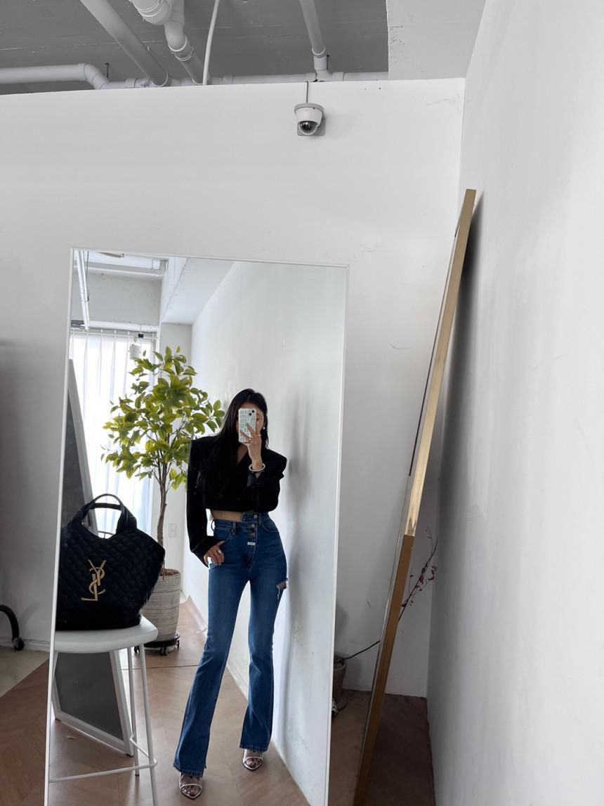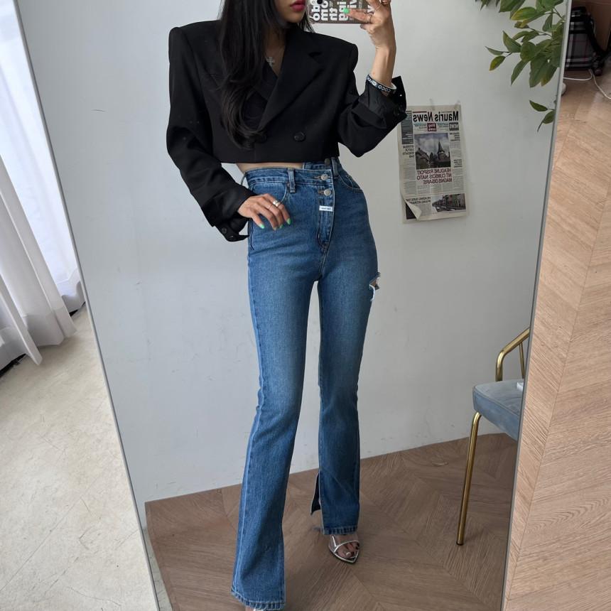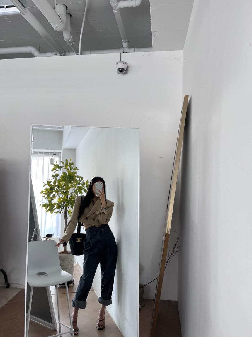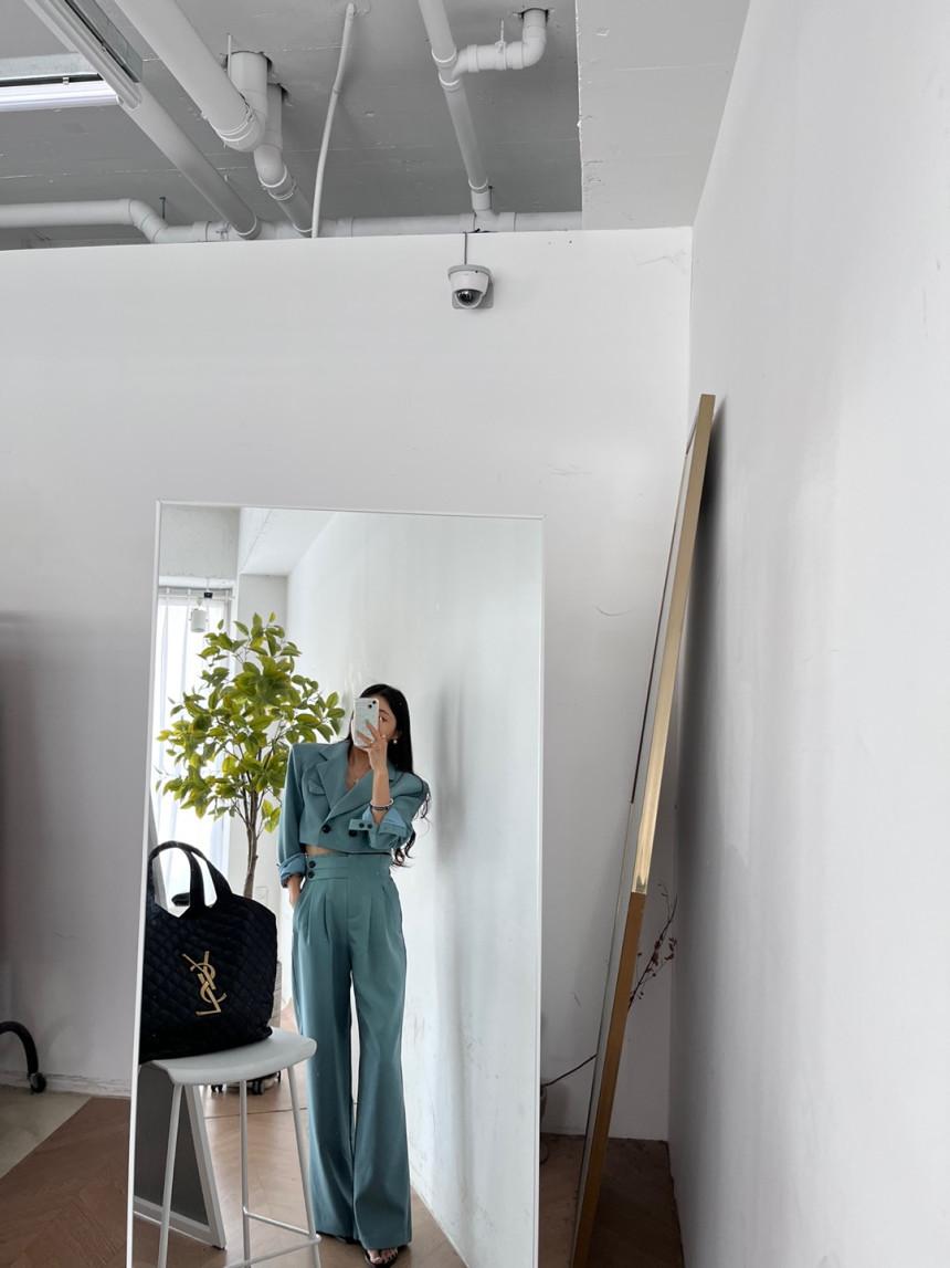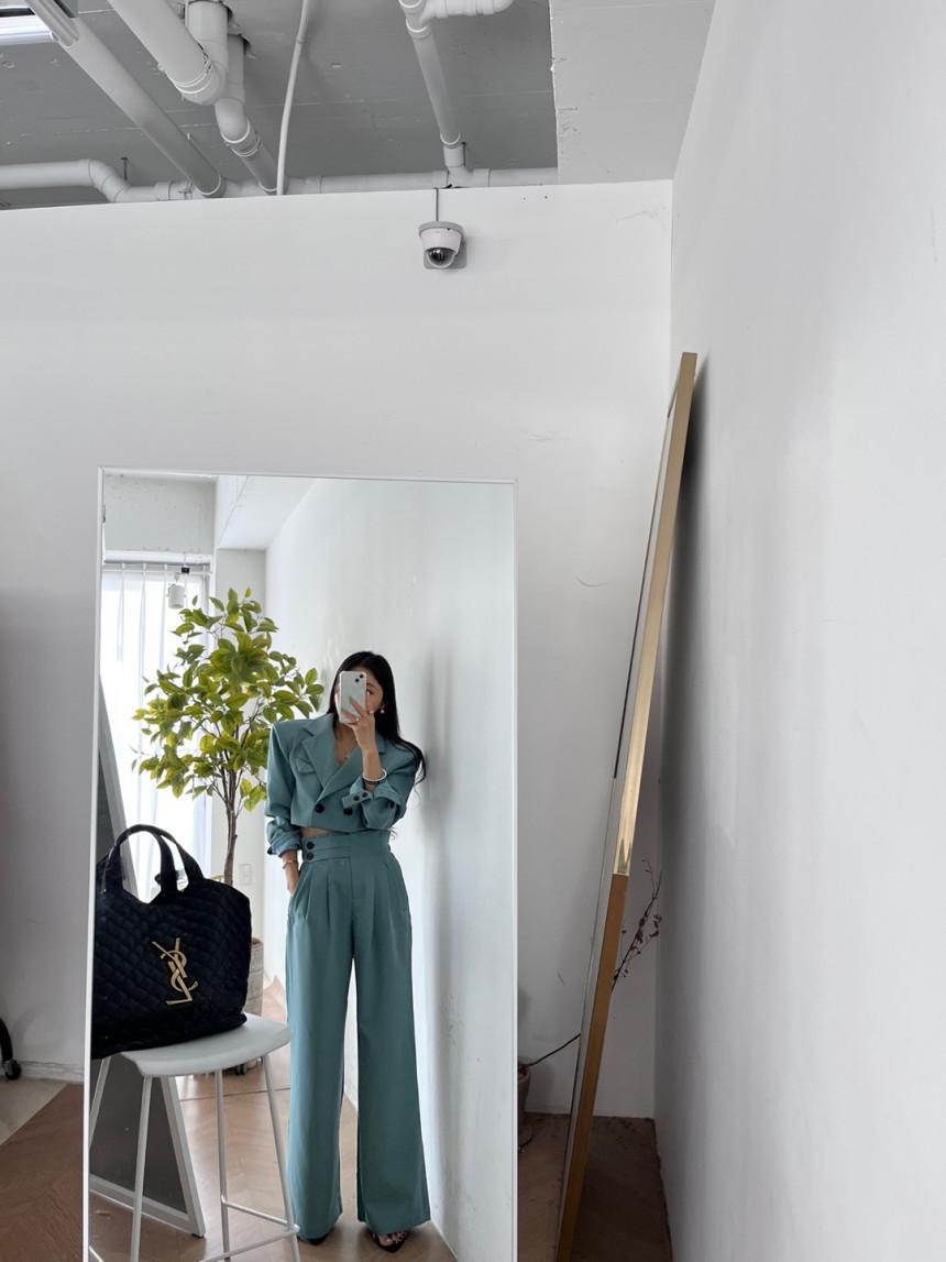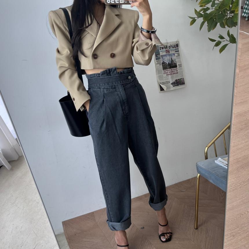 En stock Chaqueta de traje pequeña de manga corta y larga con dos botones para mujer
