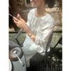 Primavera 2025 Nuevo Coreano Dongdaemun Simple Diario Retro Desplazamiento Lazy Versátil Camiseta de Cuello Redondo a Rayas para Mujer