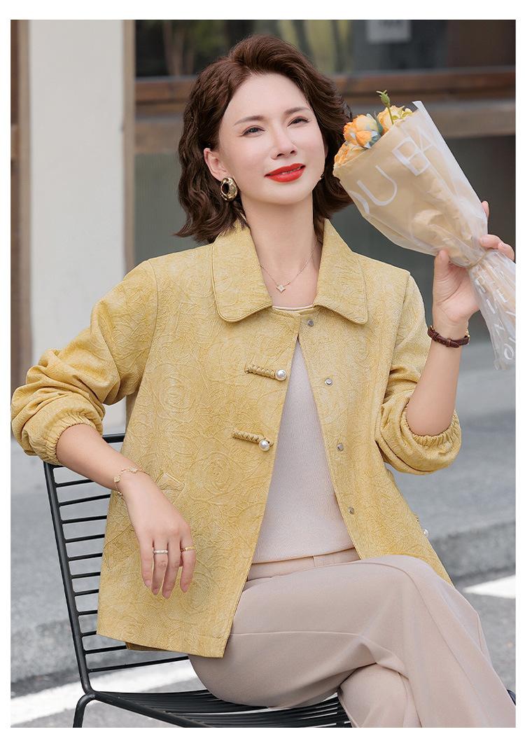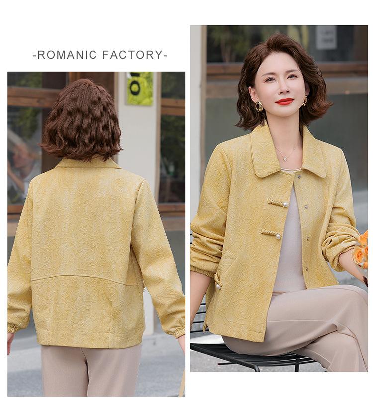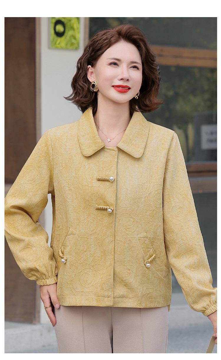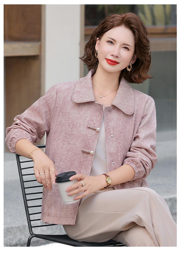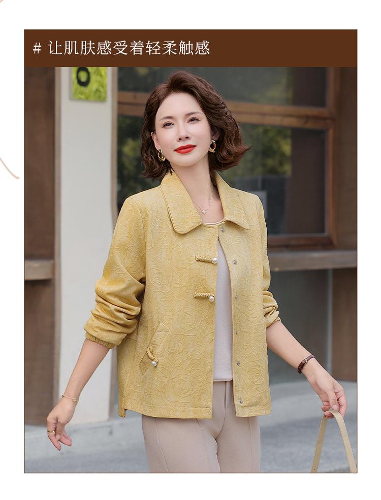 Nuevo Estilo Chino Viento Nacional Mamá Primavera Otoño Cuello Vuelto Ropa Exterior 2025 Nuevo Ropa de Otoño para Mujeres de Mediana Edad y Mayores Chaqueta Corta Moderna